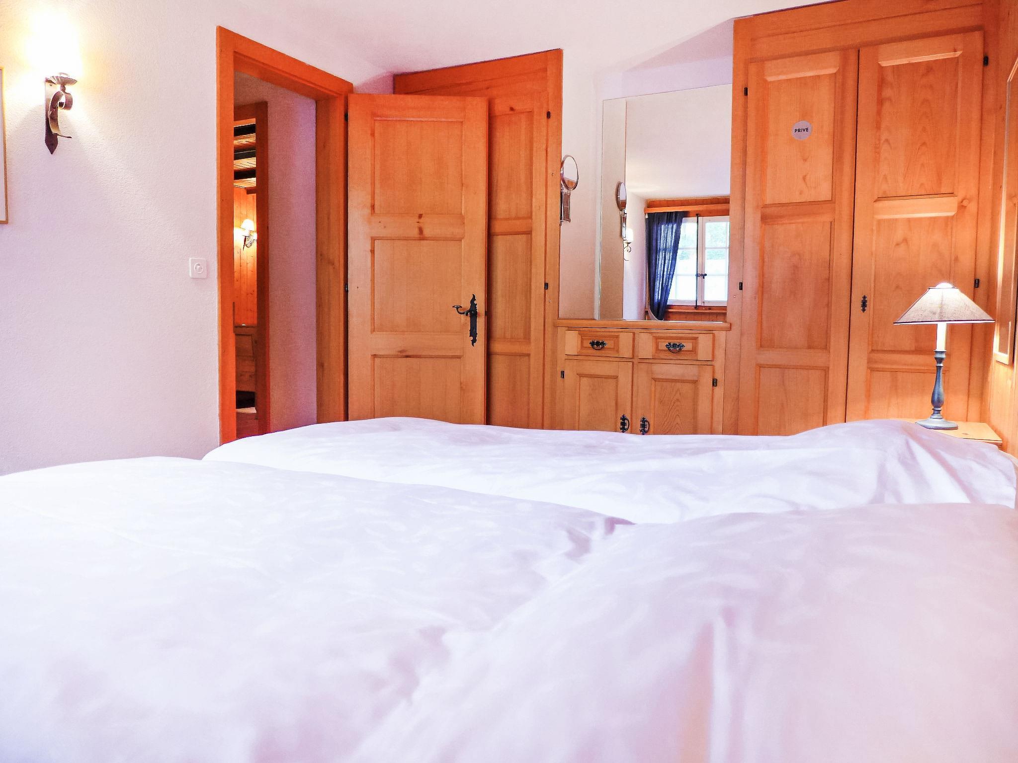 "Le Mont Blanc 2", 4-room apartment 95 m2, on the ground floor, south facing position. Practical and comfortable furnishings: living/dining room with TV and DVD. Exit to the garden. 1 room with 2 beds. 1 room with 2 beds. Small kitchen (4 hot plates, oven, dishwasher, toaster, kettle, raclette grill, fondue Set (cheese)). Bath/WC, shower/WC. On the lower ground floor: (steep stair), 1 room with 2 beds and DVD. Terrace 10 m2, south facing position, lawn 10 m2. Terrace furniture. Beautiful view of the countryside. Please note: non-smokers only.
