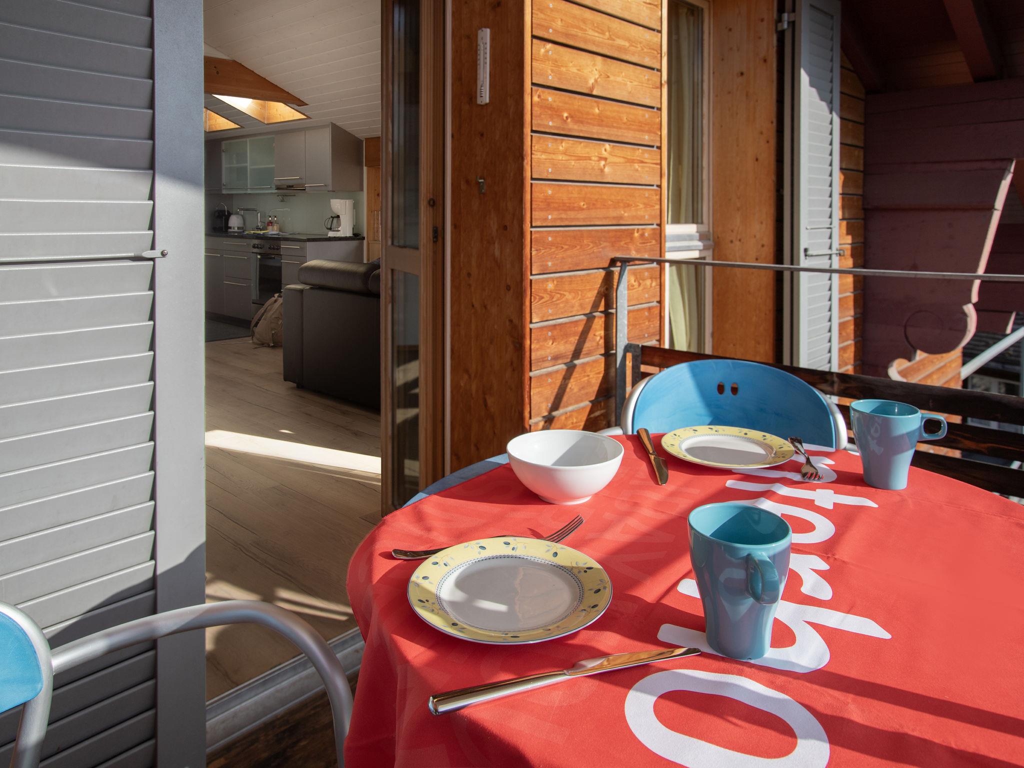 "Breithorn Residence Apt.09", 3-room apartment 40 m2, on the top floor. Object suitable for 2 adults + 1 child. Partly with sloping ceilings, tasteful and cosy furnishings: living/dining room with dining nook, cable TV, radio, CD-player and DVD. 1 room with 1 double bed (1 x 140 cm, length 200 cm). 1 small children's room with sloping ceilings with 1 bed (90 cm, length 200 cm). Open kitchen (oven, dishwasher, 4 ceramic glass hob hotplates, toaster, kettle, electric coffee machine, Capsules for coffee machine (Nespresso) extra). Bath/shower/WC. Boiler. Small balcony. Balcony furniture. Very beautiful view of the mountains. Facilities: washing machine, dryer, iron, hair dryer. Internet (WiFi, free). Please note: non-smokers only.