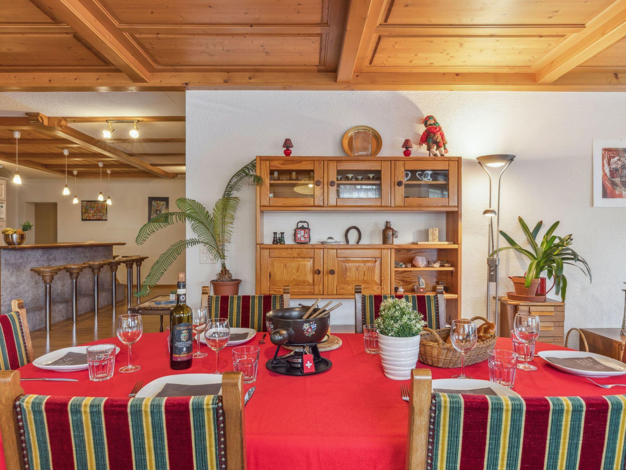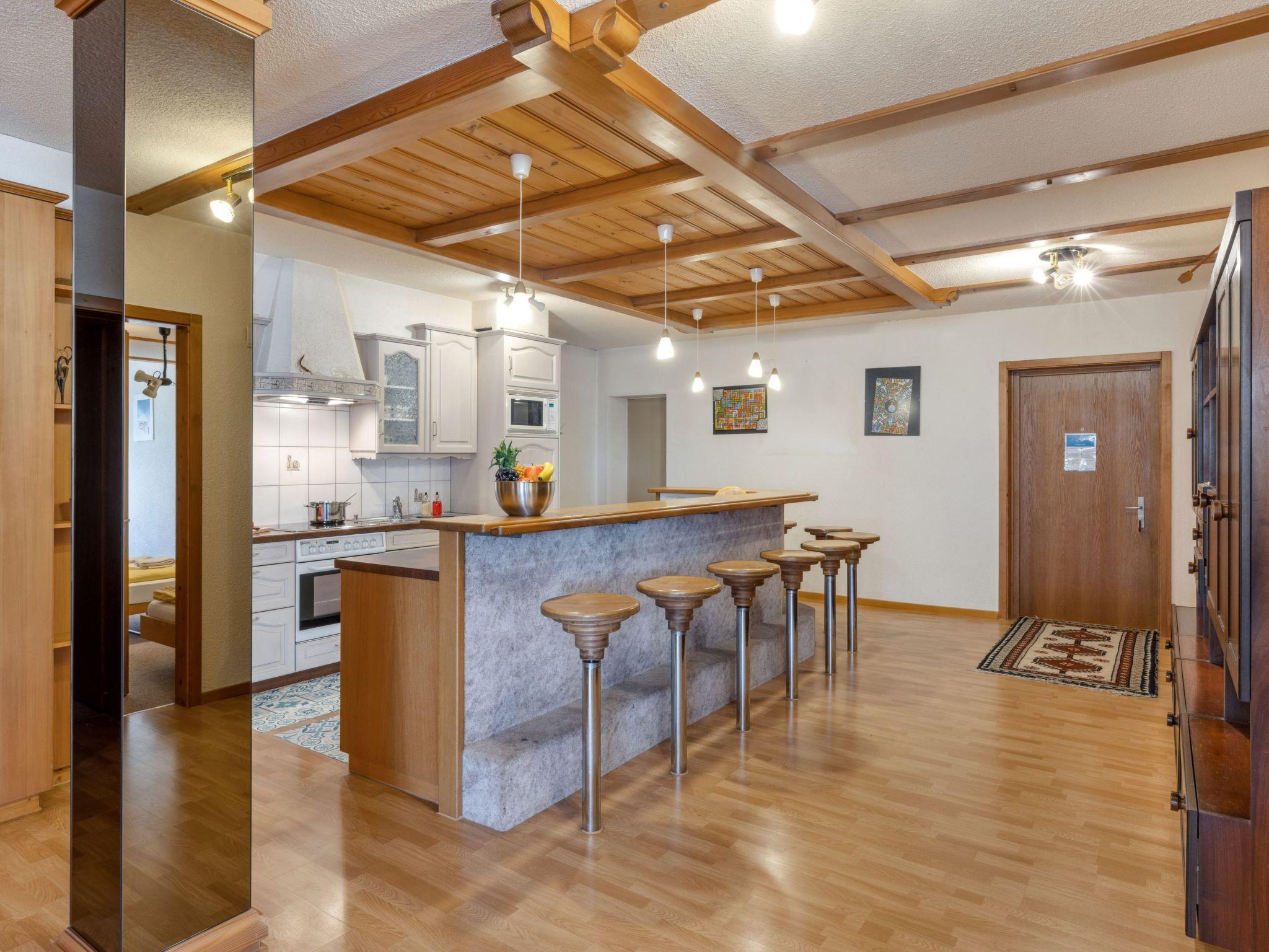 "Bristol Apt.A", 4-room apartment 160 m2, on the upper ground floor. Spacious and bright, comfortable and cosy furnishings: large living/dining room with cable TV and flat screen. Exit to the balcony. 1 room with 1 double bed (2 x 90 cm, length 190 cm). 1 large room with 2 beds (90 cm, length 190 cm), 1 double bed (120 cm, length 200 cm). 1 large room with 4 beds (90 cm, length 200 cm). Large, open kitchen (4 ceramic glass hob hotplates, toaster, kettle, microwave, electric coffee machine, Capsules for coffee machine (Nespresso) extra, raclette grill, fondue Set (cheese)) with bar. Bath/WC, shower/WC. Carpet. Small balcony. Balcony furniture. Marvellous panoramic view of the mountains. Facilities: washing machine, dryer, iron, children's high chair, baby cot for up to 2 year olds (extra), hair dryer. Internet (WiFi, free). Please note: suitable for families. Non-smokers only.