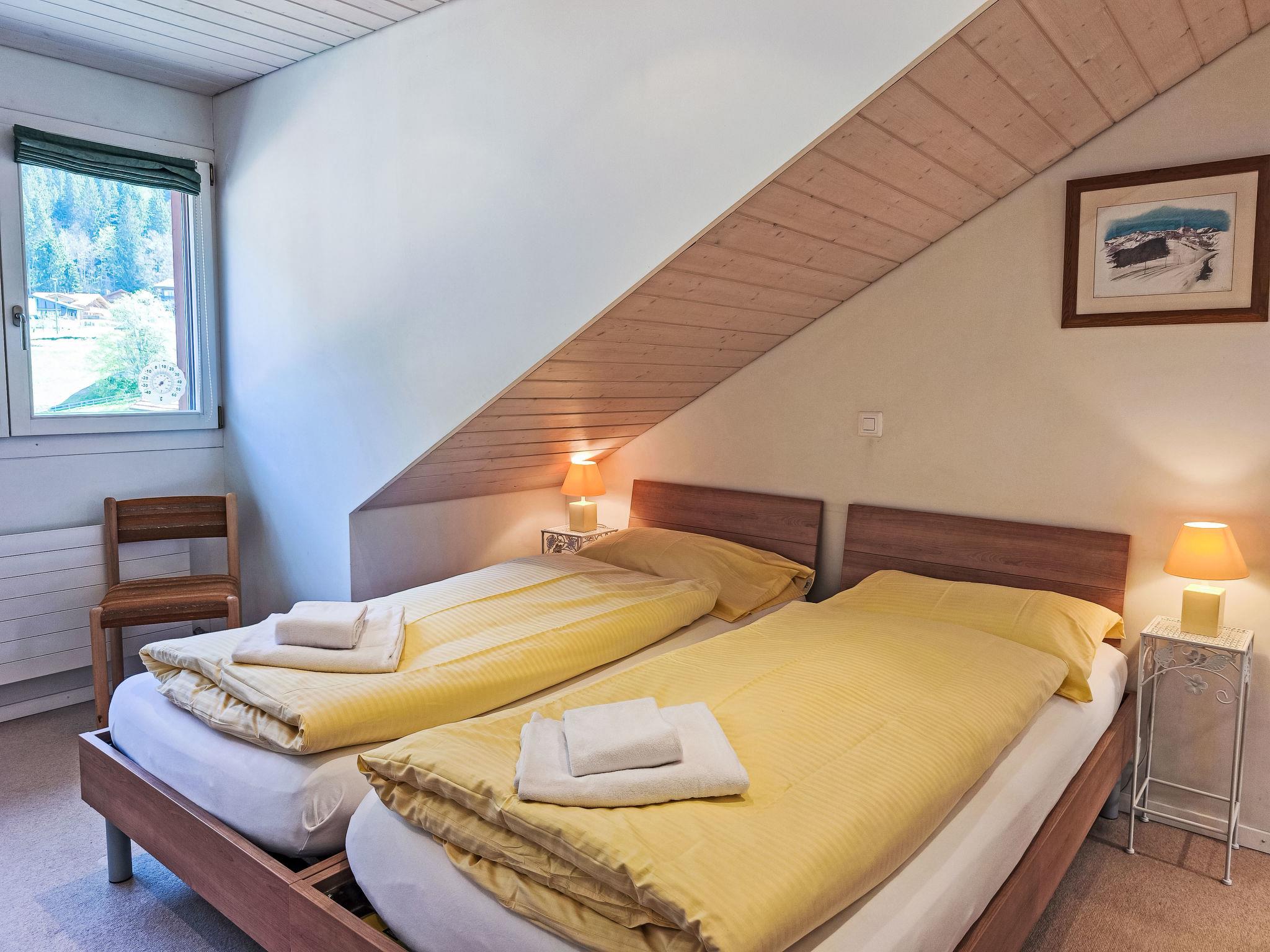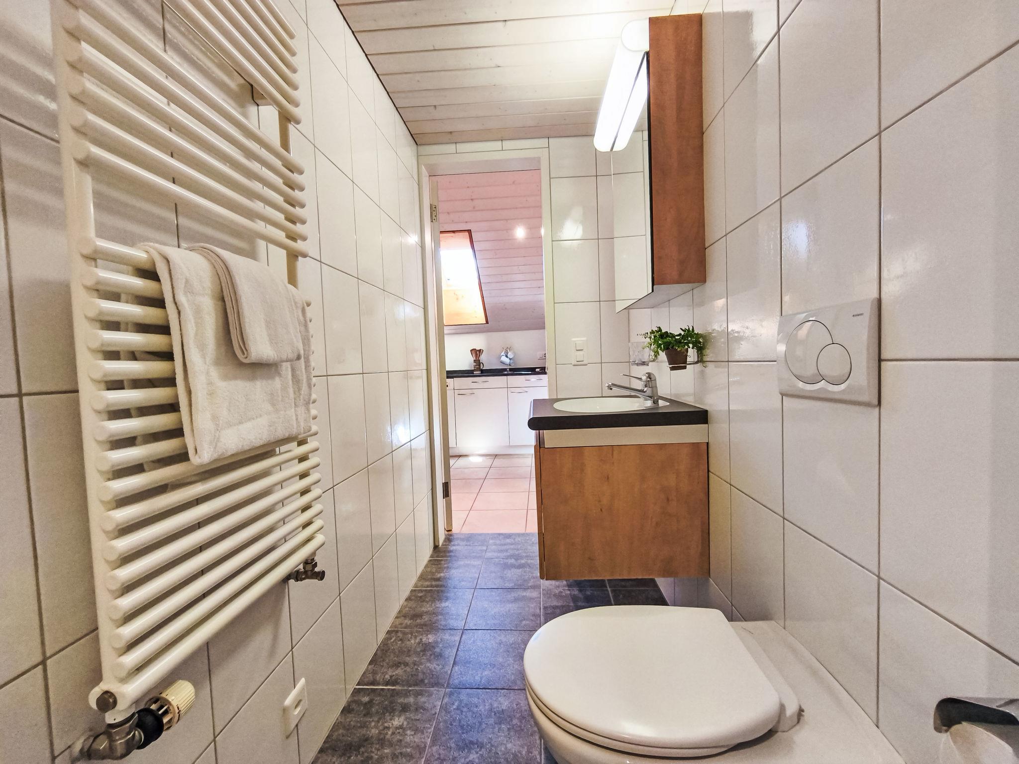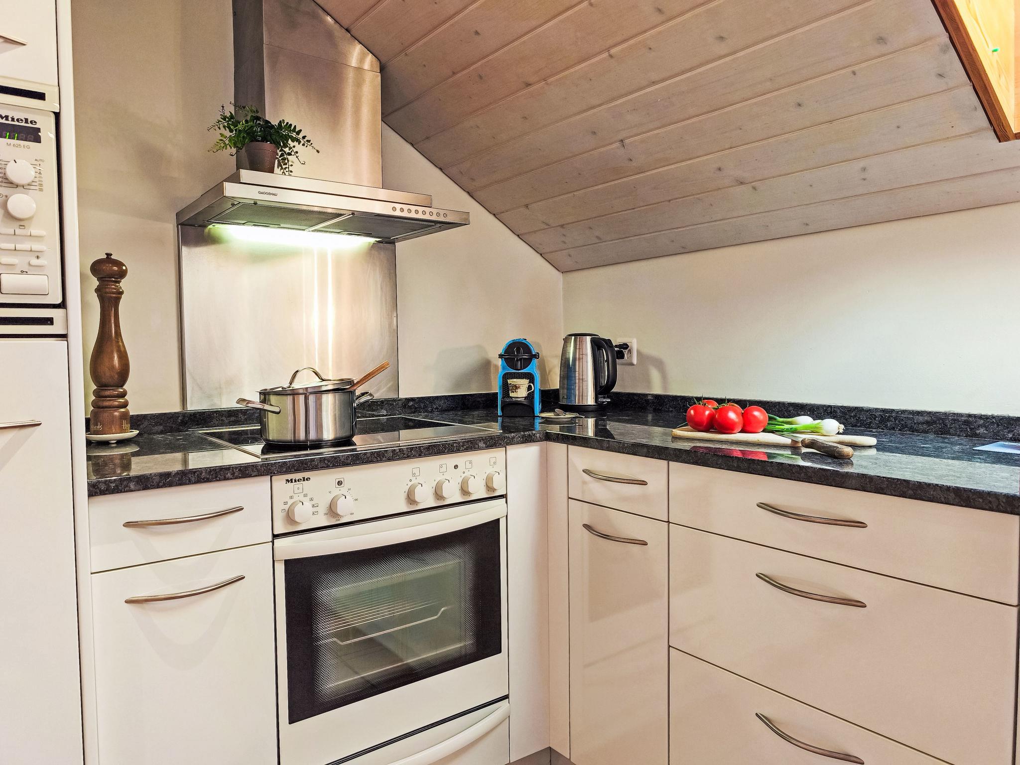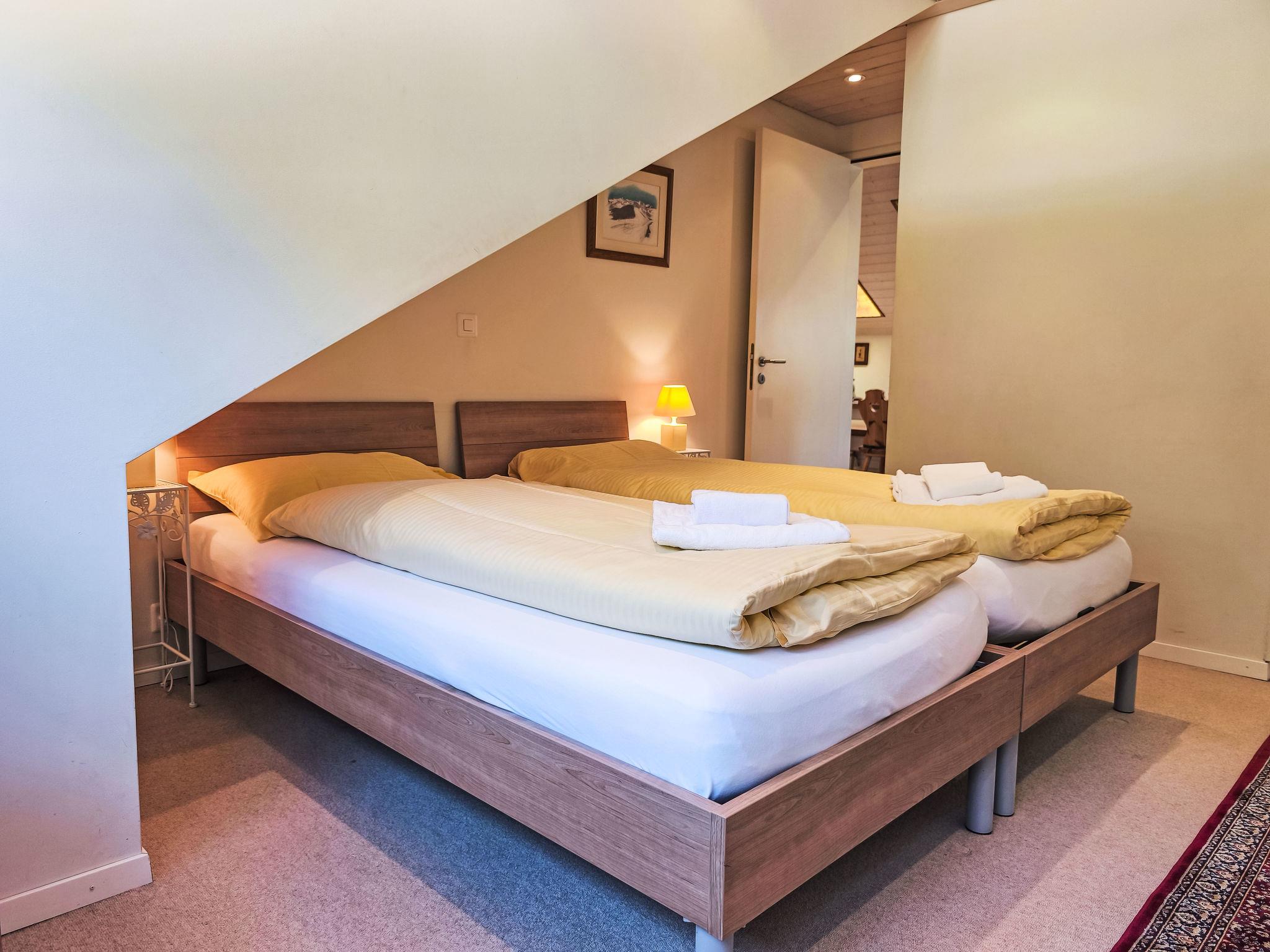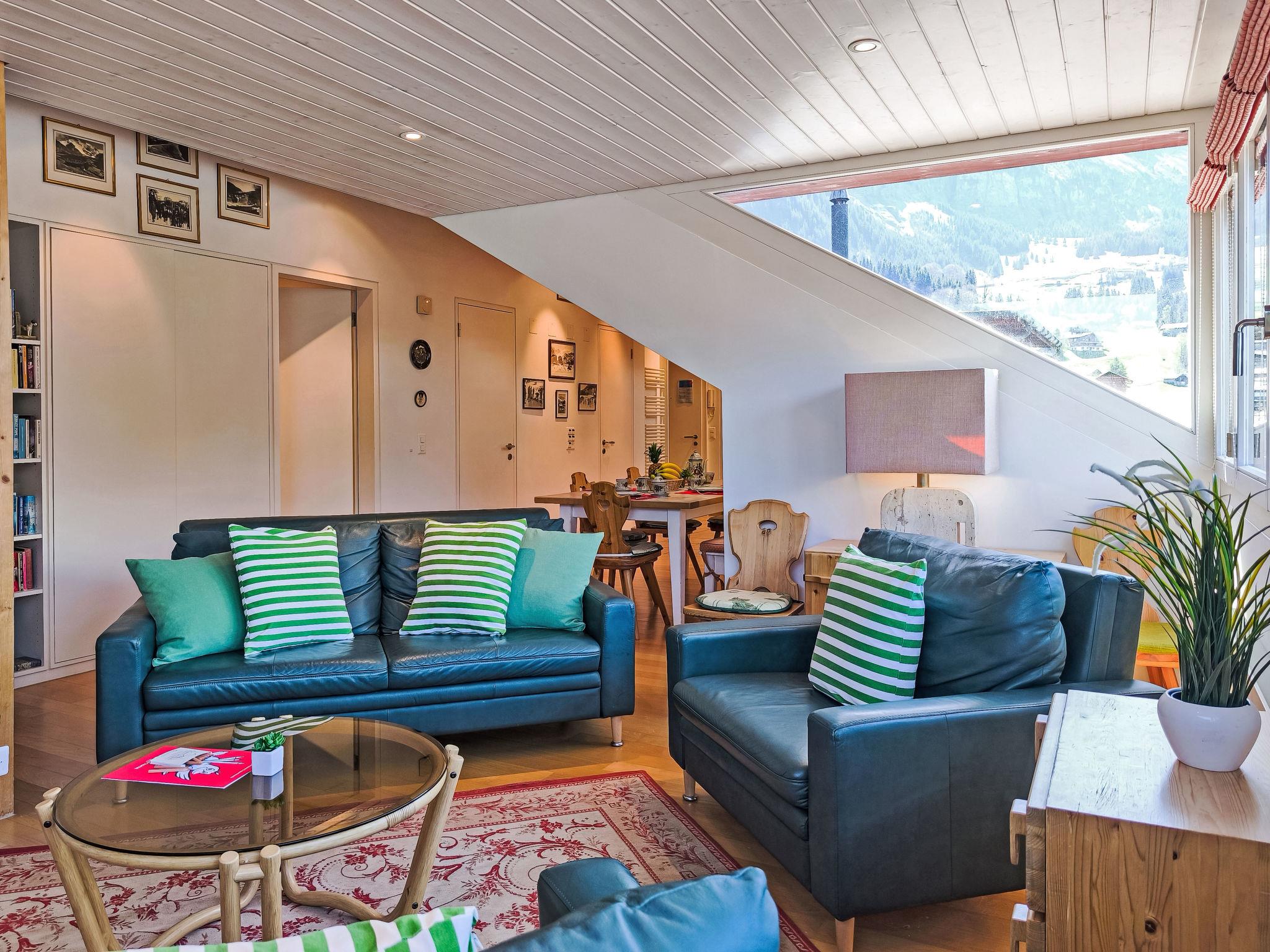 "Eiger Residence Top Floor Apt P", 3-room apartment 95 m2, on the top floor. Spacious and bright, partly with sloping ceilings, comfortable and modern furnishings: open living/dining room with panoramic window with cable TV. 1 room with 3 beds (90 cm, length 200 cm). 1 room with 2 beds (90 cm, length 200 cm). Large, open kitchen (oven, dishwasher, 4 ceramic glass hob hotplates, kettle, microwave, freezer, electric coffee machine, Capsules for coffee machine (Nespresso) extra, raclette grill, fondue Set (chinoise)). Bath/WC, shower/WC. Marvellous panoramic view of the mountains, the valley and Jungfrau. Facilities: washing machine, dryer, iron, hair dryer. Internet (WiFi, free). Please note: suitable for families. Non-smokers only.