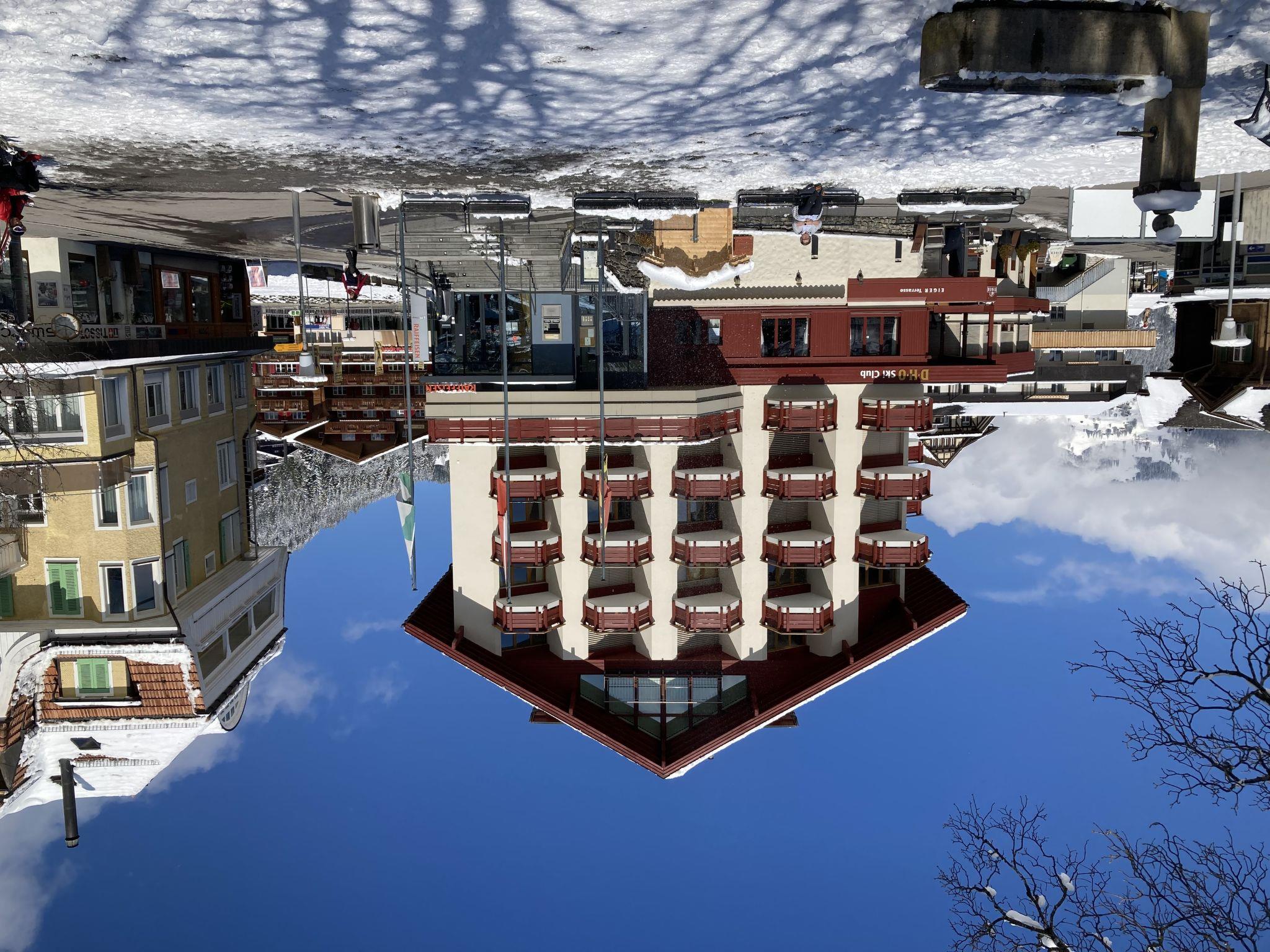 Apartment block "Eiger". In the centre of Wengen, in a central position. In the house: restaurant, lift, central heating system. Pre-arrival grocery service. Stepped path (10 steps) to the house. Shop, supermarket 50 m, restaurant, bakery 10 m, 1 minute walk to the centre, bus stop "Lauterbrunnen (by train)" 3.0 km, railway station "Wengen" 20 m, outdoor swimming pool 500 m. Cable car, skisport facilities 50 m, children's playground 100 m. Well-known lakes can easily be reached: Thunersee 13 km, Brienzersee 13 km. Please note: car-free holiday complex. Arrival via mountain railway. Additional accommodations can be booked. Arrival is only possible by train from Lauterbrunnen – 14 minutes driving time.