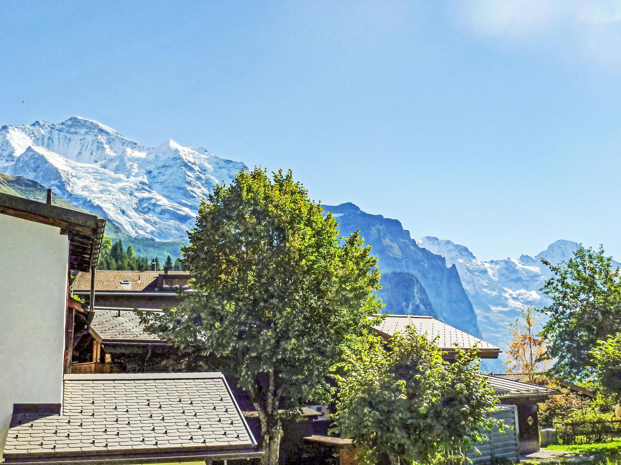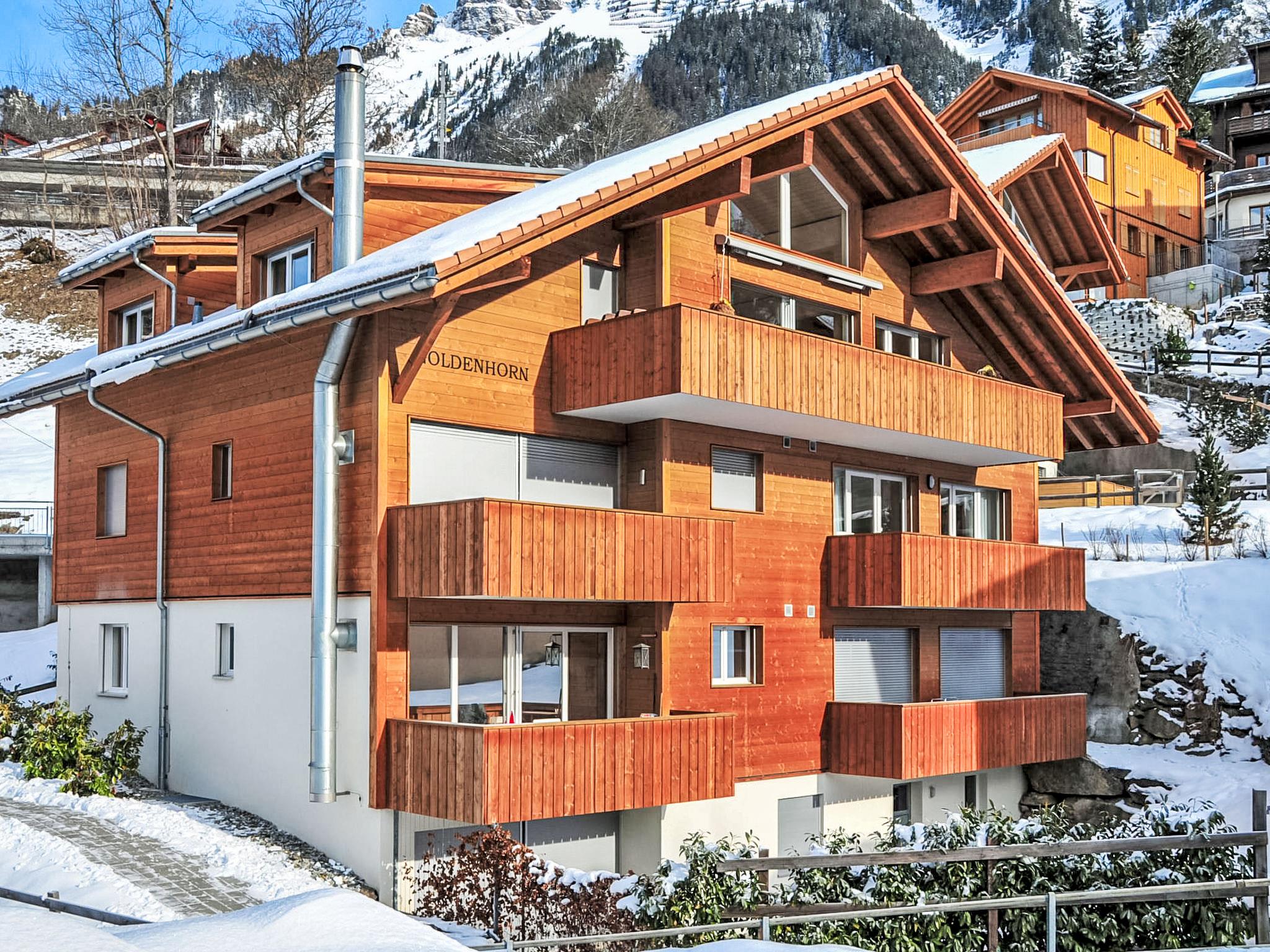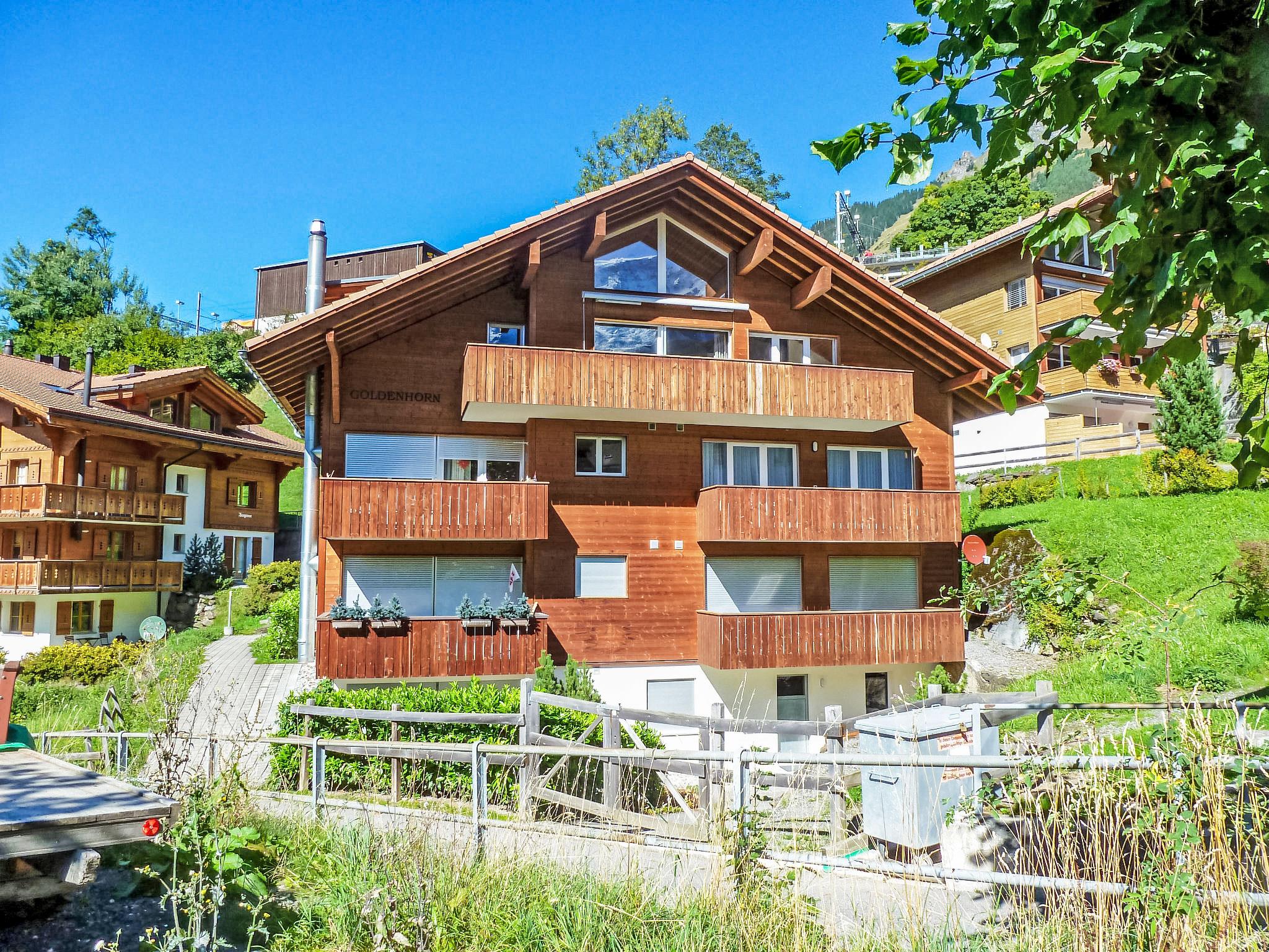 Modern apartment block "Goldenhorn", built in 2003. Below Zentrum Wengen, in the district of Am Acher, in a quiet position on a slope. In the house: central heating system. Pre-arrival grocery service. Shop 300 m, supermarket 250 m, restaurant 60 m, bar, bakery 300 m, 5 minute walk to the centre, bus stop "Lauterbrunnen (by train)" 3.3 km, railway station "Wengen" 300 m, outdoor swimming pool 600 m. Cable car, mountain railway, skisport facilities 300 m. Well-known lakes can easily be reached: Thunersee 13 km, Brienzersee 13 km. Please note: car-free holiday complex. Arrival via mountain railway. Arrival is only possible by train from Lauterbrunnen - 14 minutes travel time.
