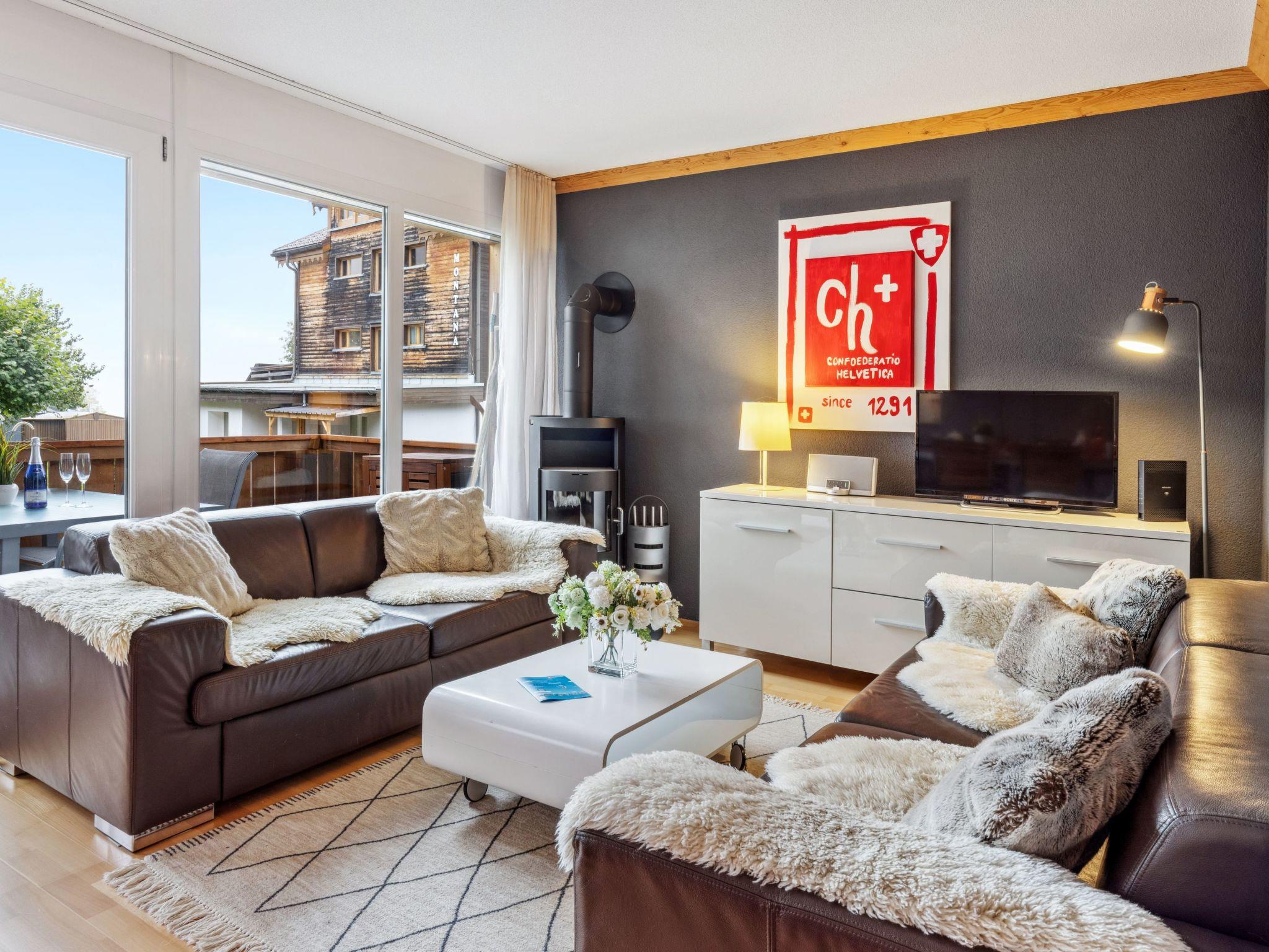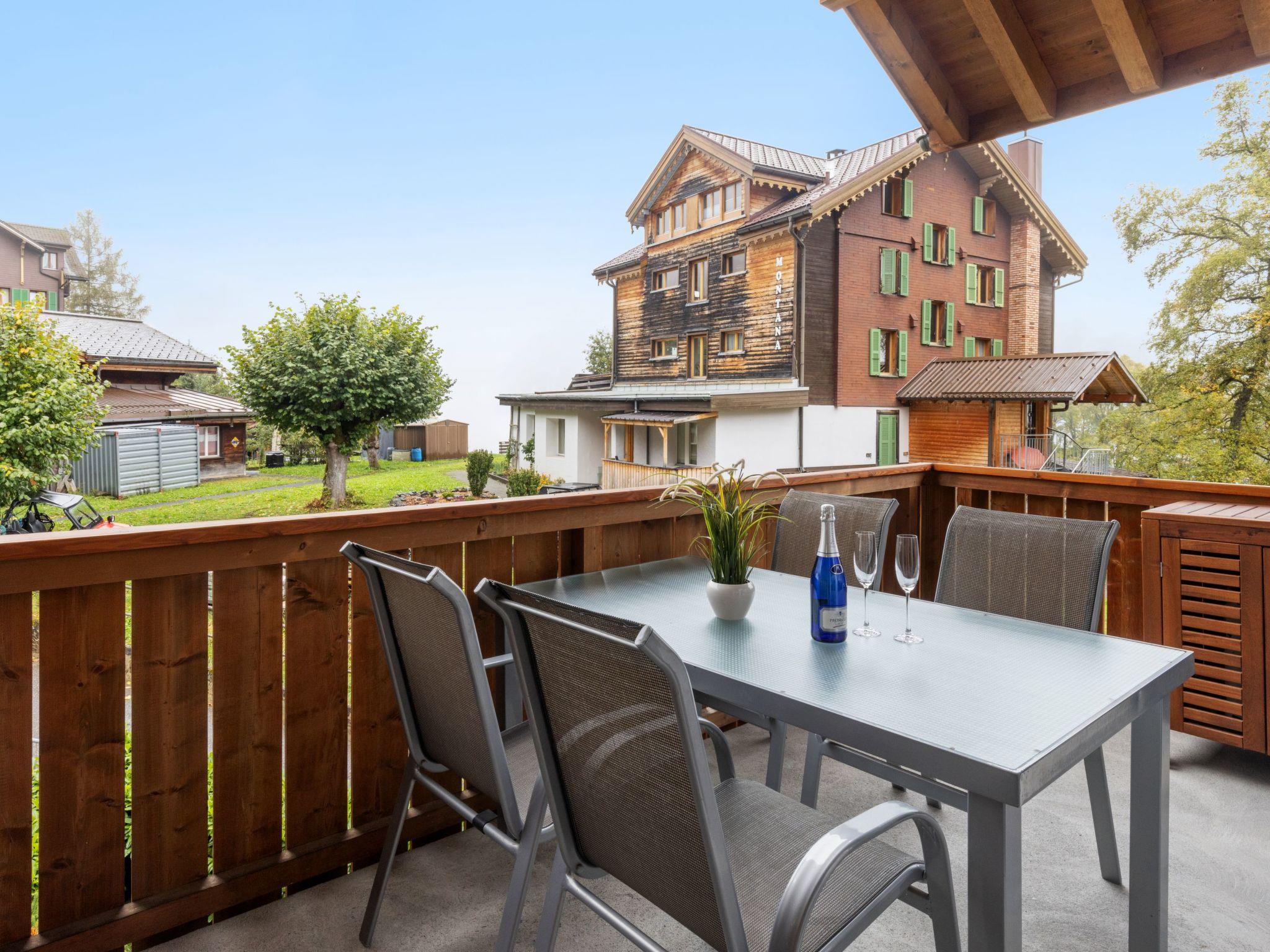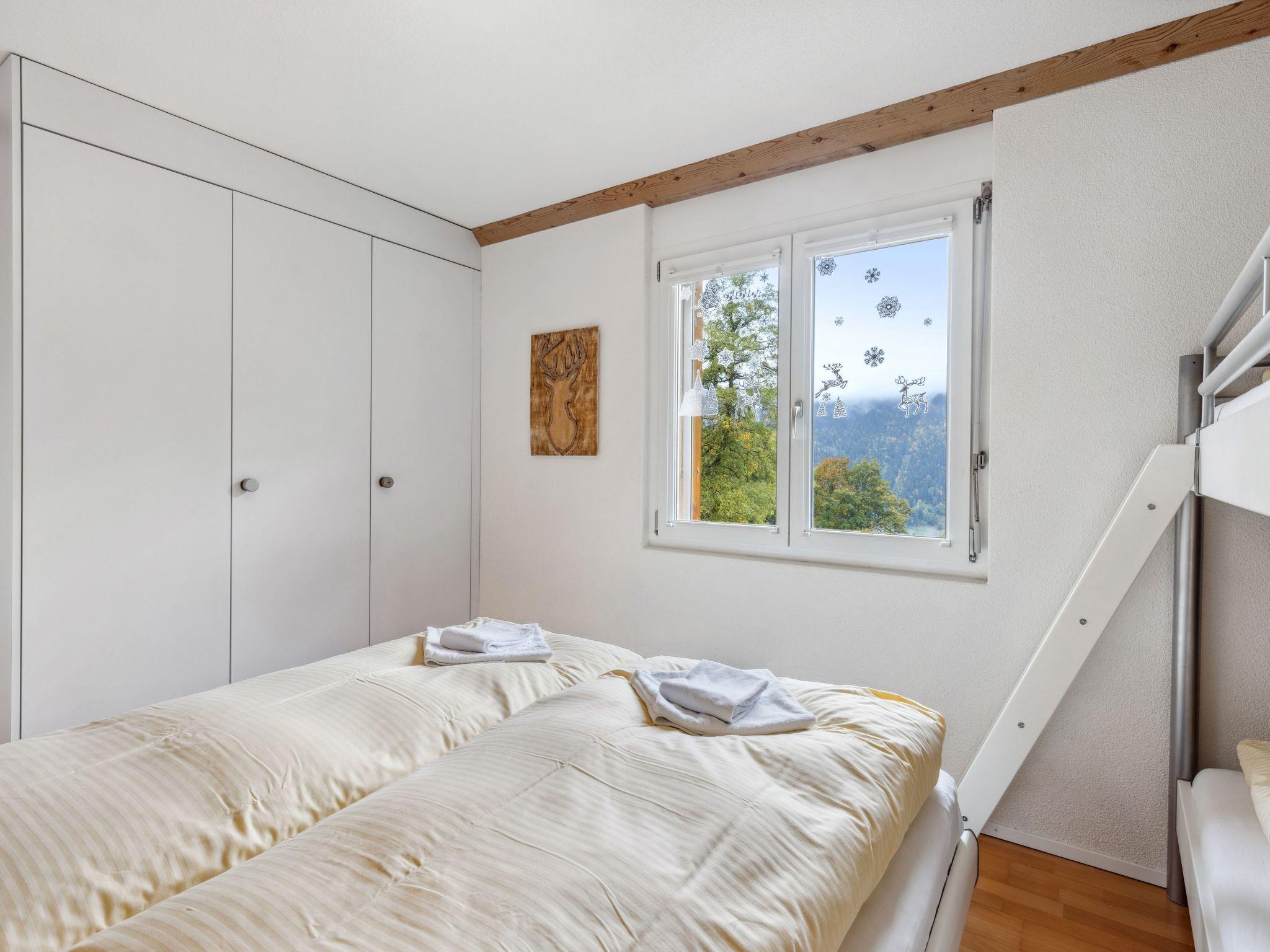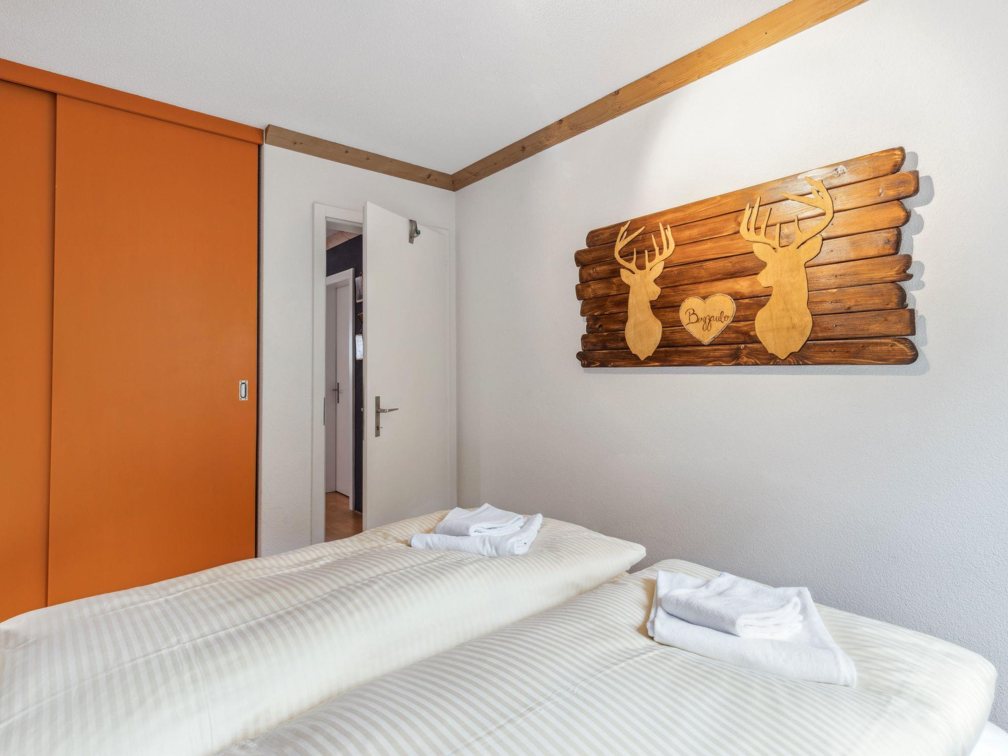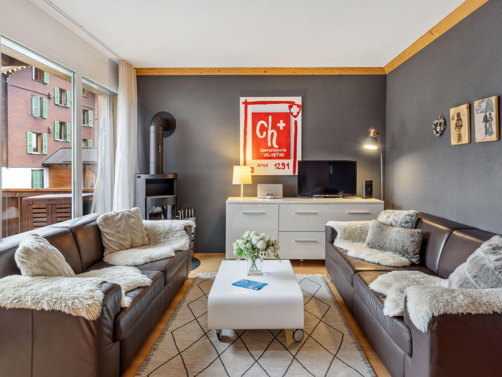 "Goldenhorn Apt.S", 3-room apartment 70 m2 on 2nd floor. Spacious and bright, comfortable and tasteful furnishings: living/dining room with Scandinavian wood stove and cable TV. Exit to the balcony. 1 room with 1 double bed (160 cm, length 200 cm). 1 room with 1 x 2 bunk beds (90 cm, length 190 cm), 1 double bed (160 cm, length 200 cm). Large, open kitchen (oven, dishwasher, 4 ceramic glass hob hotplates, toaster, kettle, electric coffee machine, Capsules for coffee machine (Nespresso) extra, fondue Set (cheese)). Shower/WC. Balcony, south facing position. Balcony furniture. Marvellous view of the mountains and Jungfrau. Facilities: hair dryer, logs (extra). Internet (WiFi, free). Please note: suitable for families. Non-smokers only.