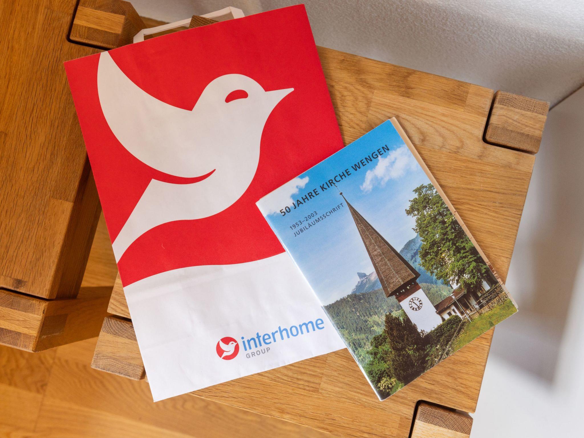 Apartment block "Schweizerhof". 400 m from the centre of Wengen, in a quiet, sunny position on a slope. In the house: central heating system, washing machine, tumble dryer (for shared use). Pre-arrival grocery service. Shop, supermarket 400 m, restaurant 100 m, bar, bakery 400 m, 5 minute walk to the centre, bus stop "Lauterbrunnen (by train)" 3.4 km, railway station "Wengen" 400 m, outdoor swimming pool 600 m. Cable car, skisport facilities 400 m, children's playground 150 m. Well-known lakes can easily be reached: Thunersee 13 km, Brienzersee 13 km. Please note: car-free holiday complex. Arrival via mountain railway. Additional accommodations can be booked. Arrival is only possible by train from Lauterbrunnen – 14 minutes driving time.