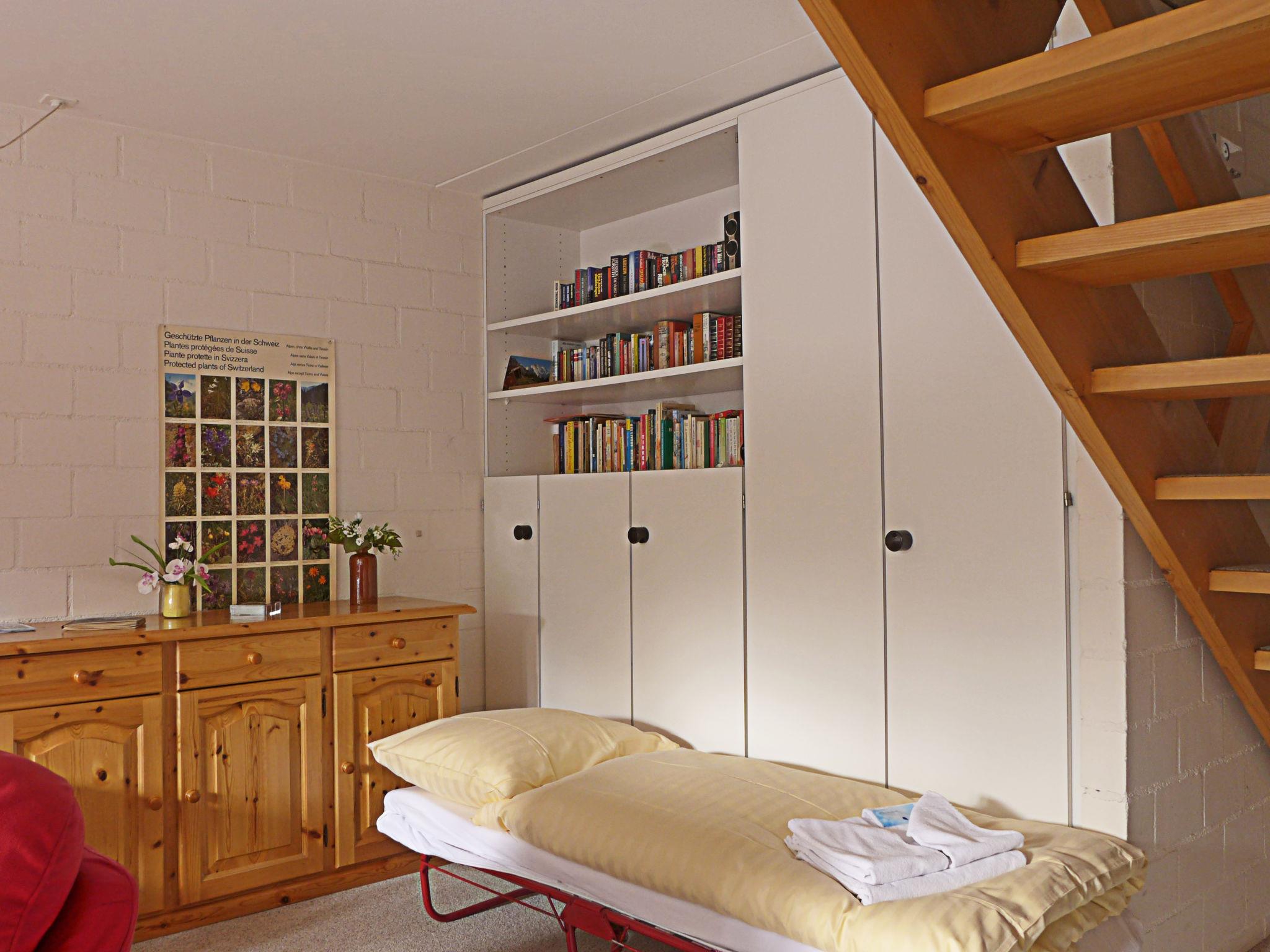 "Im Gruebi Apt. 10", 3-room apartment 96 m2 on 2 levels on 2nd floor. Spacious and bright, partly with sloping ceilings, comfortable and cosy furnishings: living room with cable TV, flat screen and radio. Exit to the balcony. Kitchen-/living room (oven, dishwasher, 4 induction hot plates, toaster, kettle, electric coffee machine, Capsules for coffee machine (Nespresso) extra, fondue Set (cheese)). Upper floor: 1 room with 1 double bed (180 cm, length 200 cm). 1 room with 3 beds (90 cm, length 200 cm). Bathroom, sep. WC. Balcony, south facing position. Balcony furniture. Beautiful view of the mountains. Facilities: hair dryer. Internet (WiFi, free). Please note: suitable for families. Non-smokers only. Private entrance.