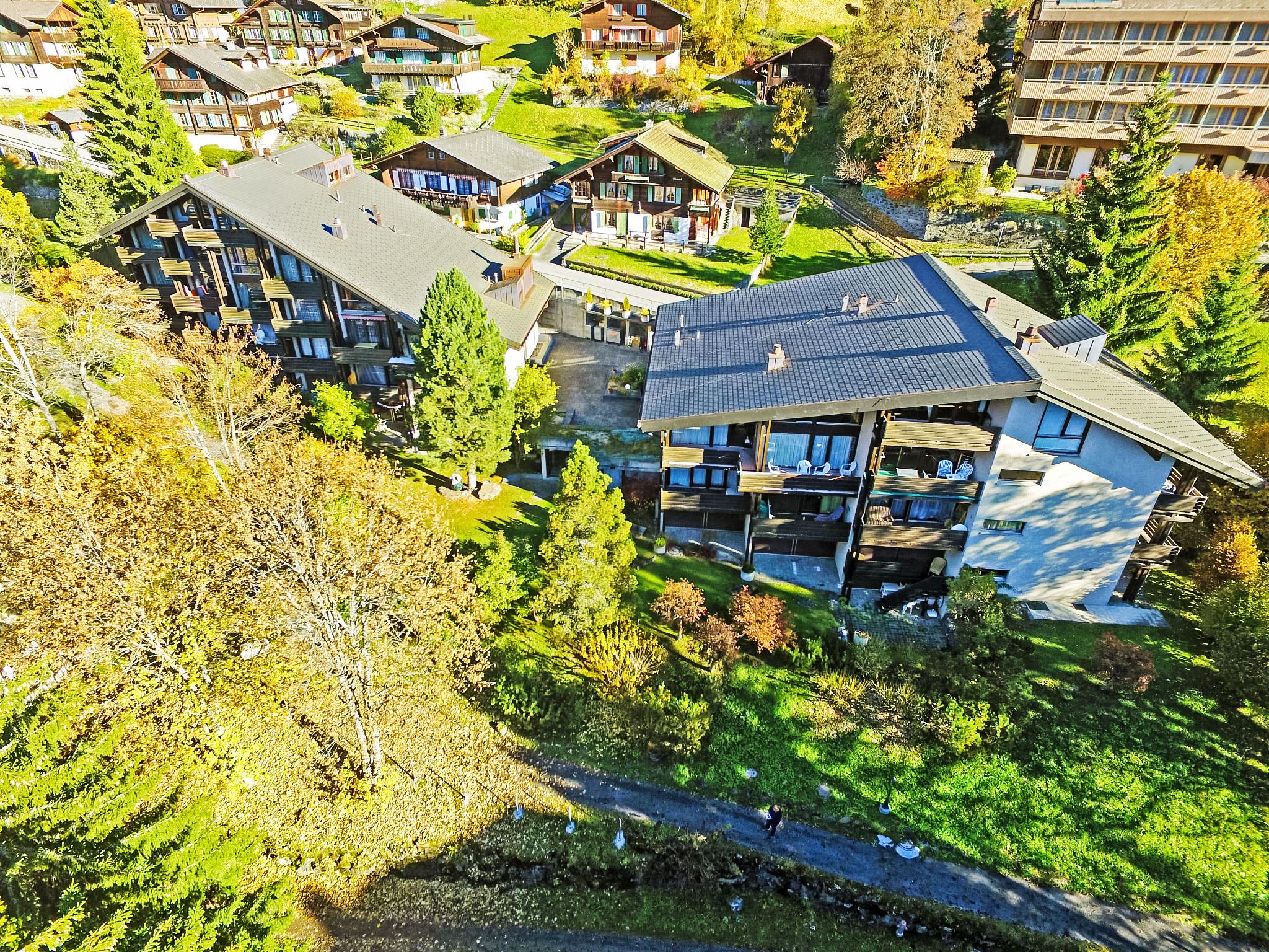 Apartment block "Im Gruebi". In the resort 300 m from the centre of Wengen, in a central, quiet position. In the house: sauna (extra). Central heating system, washing machine, tumble dryer (for shared use, extra). Pre-arrival grocery service. Shop, grocery, supermarket 300 m, restaurant 100 m, bakery 300 m, 4 minute walk to the centre, bus stop "Lauterbrunnen (by train)" 3.4 km, railway station "Wengen" 350 m, outdoor swimming pool 600 m. Cable car, skisport facilities 300 m. Well-known lakes can easily be reached: Thunersee 13 km, Brienzersee 13 km. Please note: car-free holiday complex. Suitable for families. Arrival via mountain railway. Arrival is only possible by train from Lauterbrunnen - 14min. path.