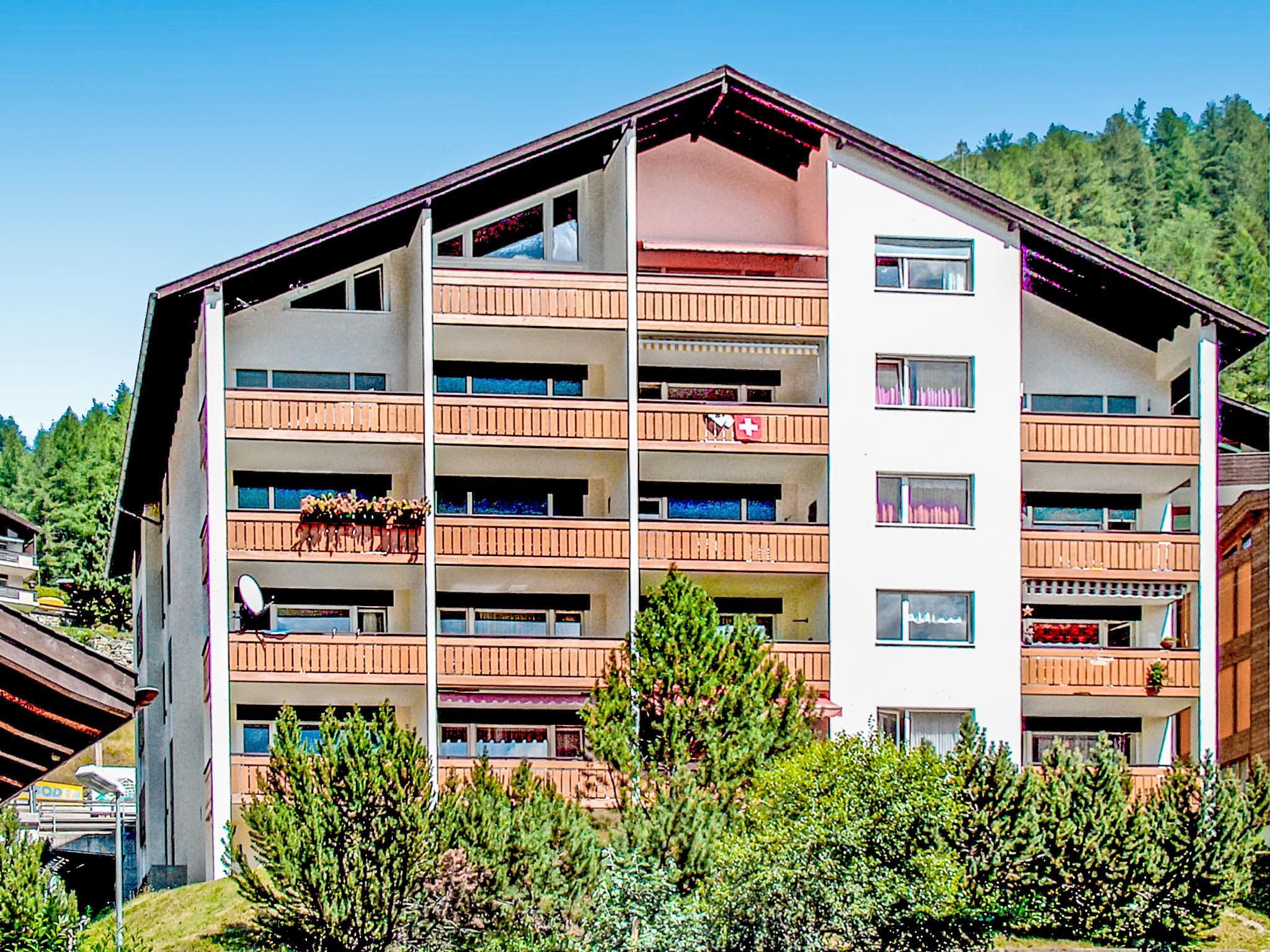 Large apartment house "Beaulieu", 5 storeys. In the district of Wiesti, 750 m from the centre, in a quiet, sunny position in the residential district, south facing position. In the house: lift, storage room for skis, central heating system. Supermarket 550 m, restaurant 200 m, bakery 750 m, bus stop "Wiestibrücke" 300 m, railway station "Bahnhof Zermatt" 750 m. Mountain railway 400 m, ski rental 400 m, ski bus stop 300 m, ski school 950 m, children's ski school. The keys‘ handover takes place by the agency Interhome in Zermatt.