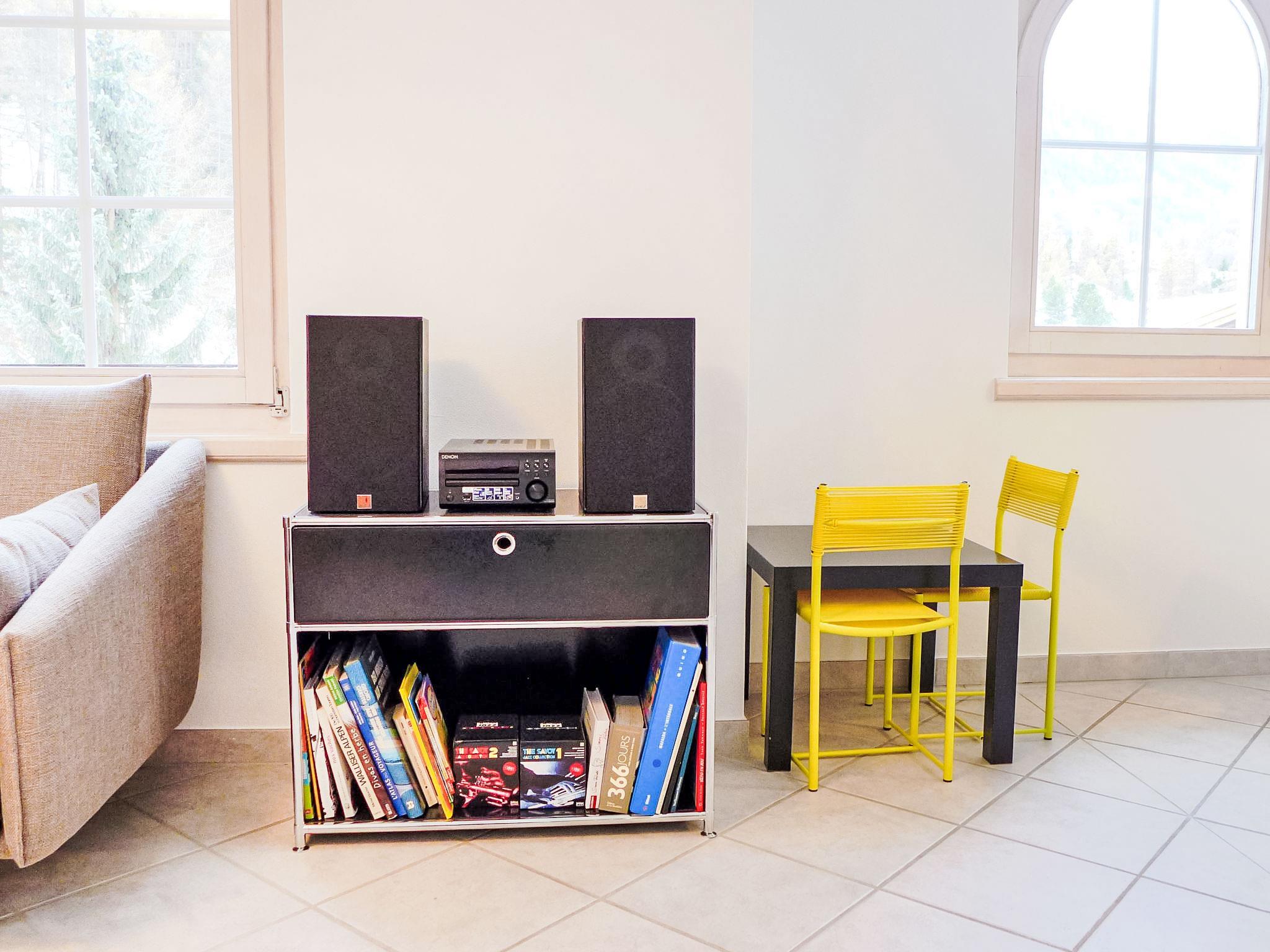 3-room apartment 88 m2 on 3rd floor, south facing position. Very comfortable and stylish furnishings: living/dining room with dining table and cable TV. Exit to the balcony. 1 double bedroom with 1 double bed and bath/WC. 1 double bedroom with 2 beds. Open kitchen (4 hot plates, oven, dishwasher, toaster, kettle, microwave, freezer, electric coffee machine, raclette grill, fondue Set (cheese)). Shower/WC. Balcony, south facing position. Balcony furniture. Very beautiful panoramic view of the mountains. Facilities: hair dryer. Internet (WiFi, free). Please note: non-smokers only.