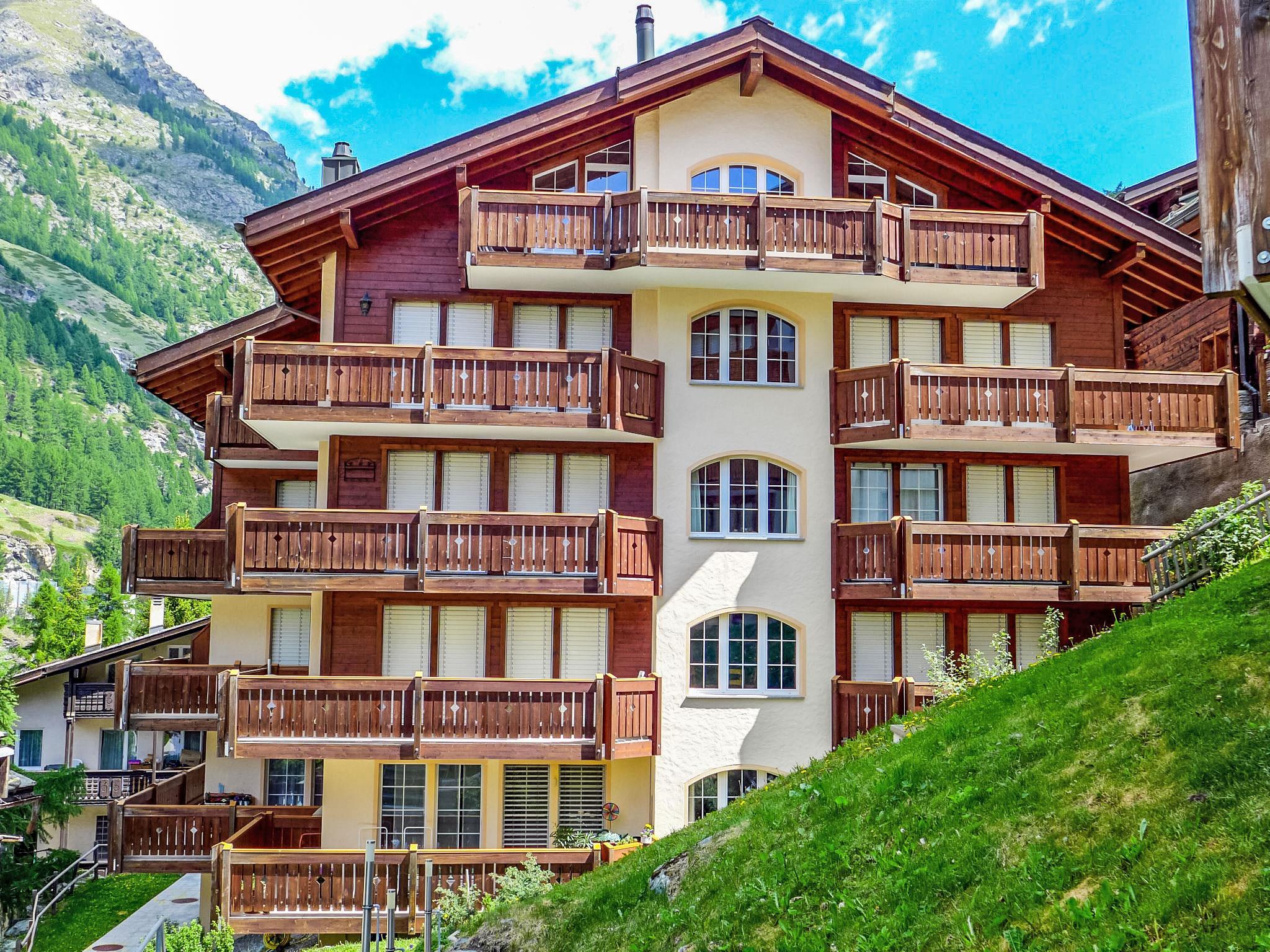Beautiful, luxurious apartment house "Aquila", 5 storeys, built in 2004. In the district of Zer Bännu, 850 m from the centre, in a quiet, sunny position, south facing position. In the house: lift, storage room for skis, central heating system, washing machine (extra), tumble dryer (extra). Supermarket 750 m, restaurant 350 m, bakery 850 m, bicycle rental 850 m, 15 minute walk to the centre, bus stop "Wiestibrücke" 500 m, railway station "Bahnhof Zermatt" 850 m. Mountain railway, ski rental 700 m, ski bus stop 500 m, ski school 1.1 km, children's ski school 1.1 km. Cabs cannot stop right in front of the house. The keys‘ handover takes place by the agency Interhome in Zermatt. Taxis can drive to within 50 steps of the house. After this point, you can use the elevator after the first staircase next to the house Capriolo, to avoid the extra stairs.