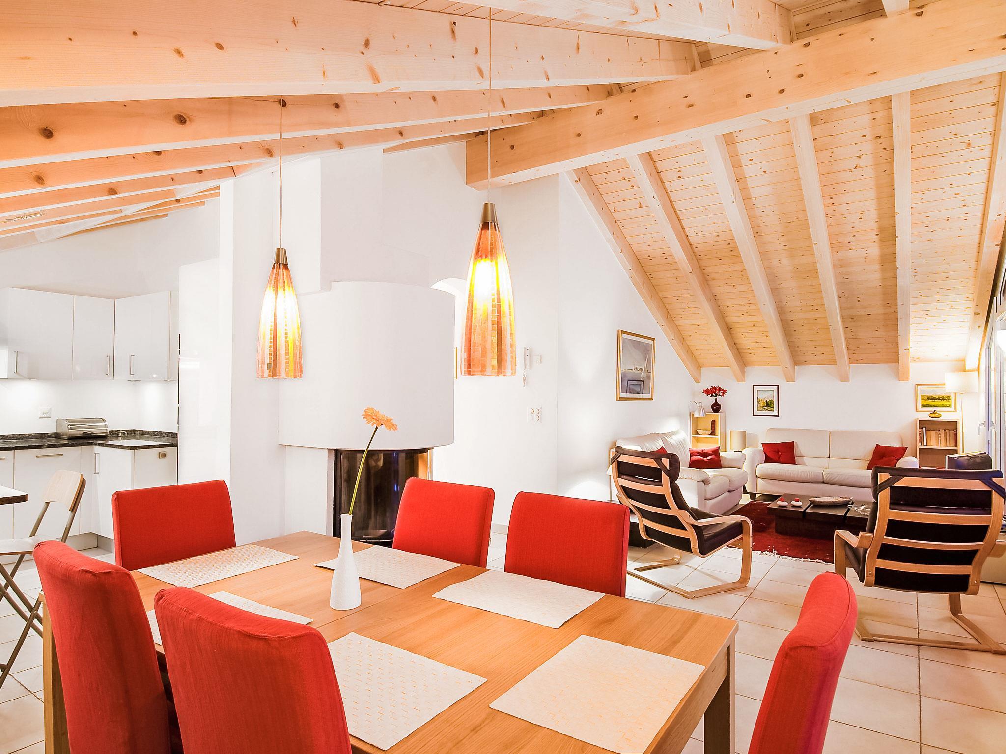4-room penthouse 119 m2, on the top floor, south facing position. Modern and tasteful furnishings: large living/dining room with Scandinavian wood stove, dining table, cable TV, flat screen, radio, CD-player and DVD. Exit to the balcony. 1 double bedroom with 1 double bed (1 x 160 cm, length 200 cm). 2 rooms, each room with 2 beds (90 cm, length 200 cm). Large, open kitchen (oven, dishwasher, 4 ceramic glass hob hotplates, toaster, kettle, microwave, freezer, electric coffee machine, raclette grill, fondue Set (chinoise, cheese)). Bath/WC, shower/WC. Floor heating. Balcony 13 m2, south facing position. Balcony furniture. Very beautiful panoramic view of the Matterhorn. Facilities: hair dryer. Internet (WiFi, free). Please note: non-smokers only.