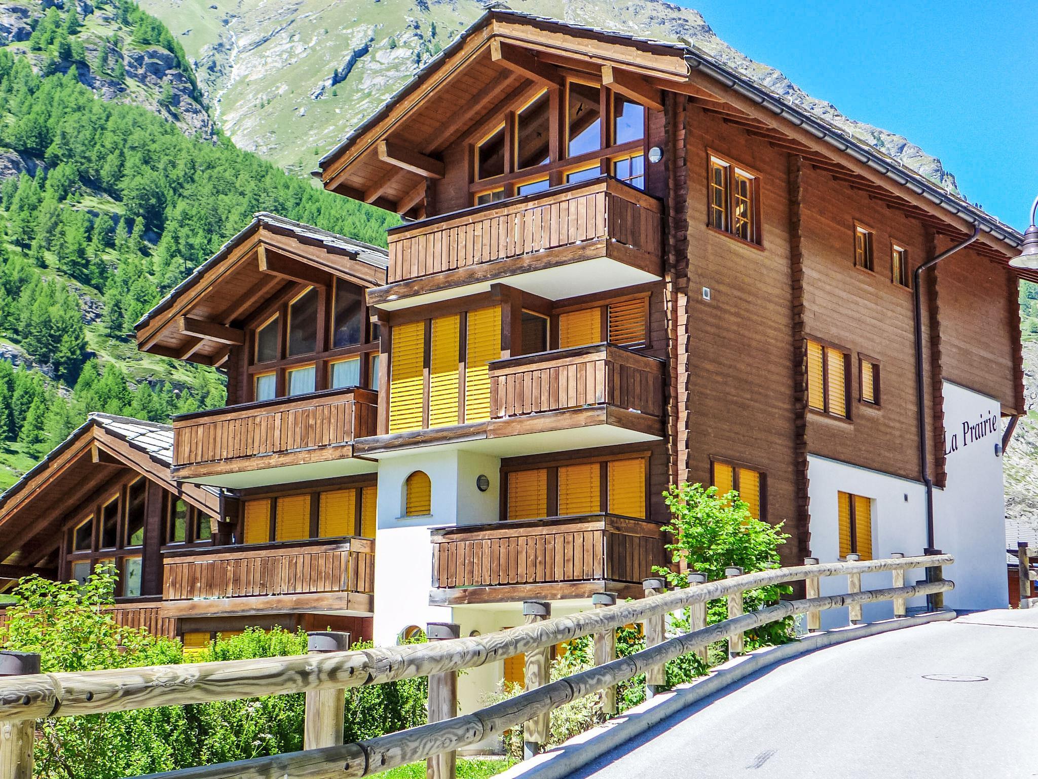 Small, beautiful apartment house "La Prairie", 4 storeys. In the district of Zer Bännu, 850 m from the centre, in a quiet, sunny position, south facing position. In the house: lift, storage room for skis, central heating system. Supermarket 750 m, restaurant 280 m, bakery 850 m, bicycle rental 850 m, bus stop "Wiestibrücke" 500 m, railway station "Bahnhof Zermatt" 850 m. Mountain railway 700 m, ski rental, ski bus stop 500 m, children's ski school 1.1 km, sled run 1.1 km. The keys‘ handover takes place by the agency Interhome in Zermatt.