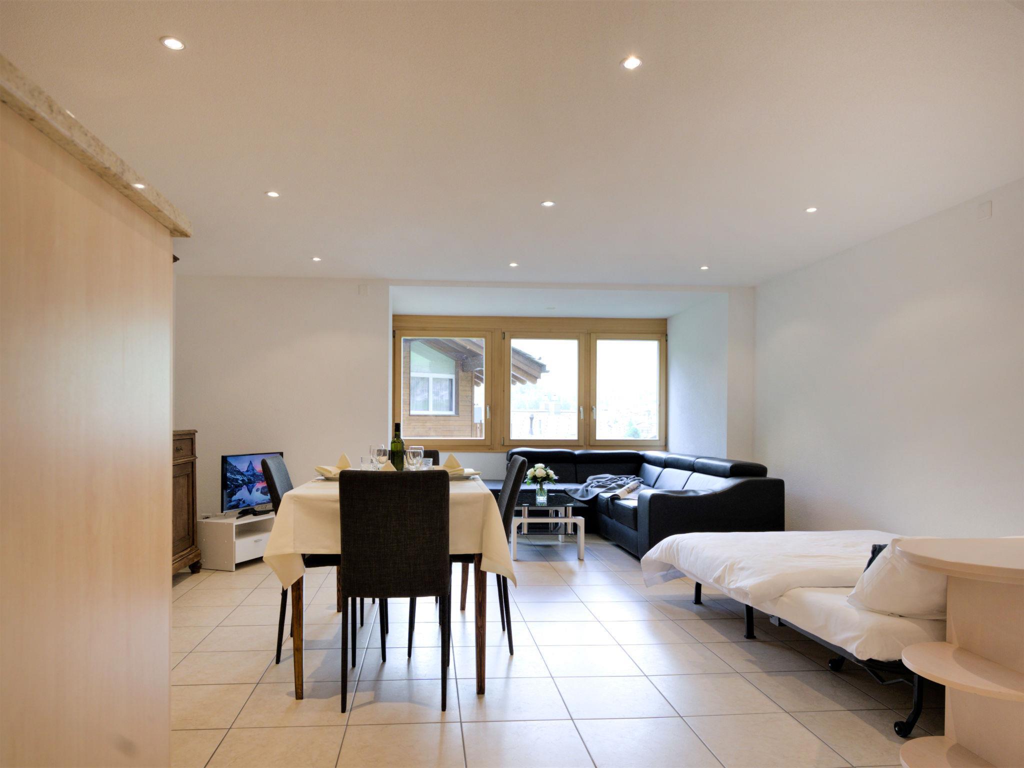 2-room apartment 45 m2 on 1st floor, south facing position. Simple and cosy furnishings: living/sleeping room with 1 double sofabed (1 x 150 cm, length 200 cm), dining table and TV. Exit to the balcony. 1 room with 1 double bed (160 cm, length 200 cm). Open kitchen (oven, dishwasher, 4 induction hot plates, toaster, kettle, freezer, electric coffee machine, fondue Set (cheese)). Shower/WC, hydro massage shower. Small balcony, south facing position. Balcony furniture. Beautiful view of the Matterhorn. Facilities: hair dryer. Internet (WiFi, free). Please note: non-smokers only. ZZLMRC55A10E514S