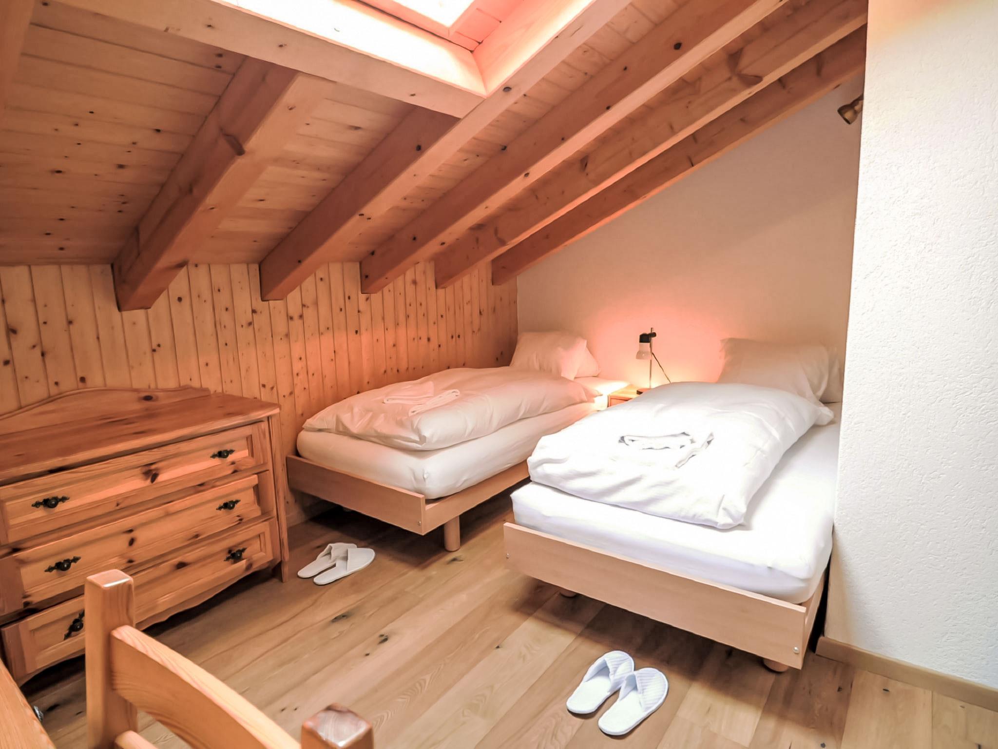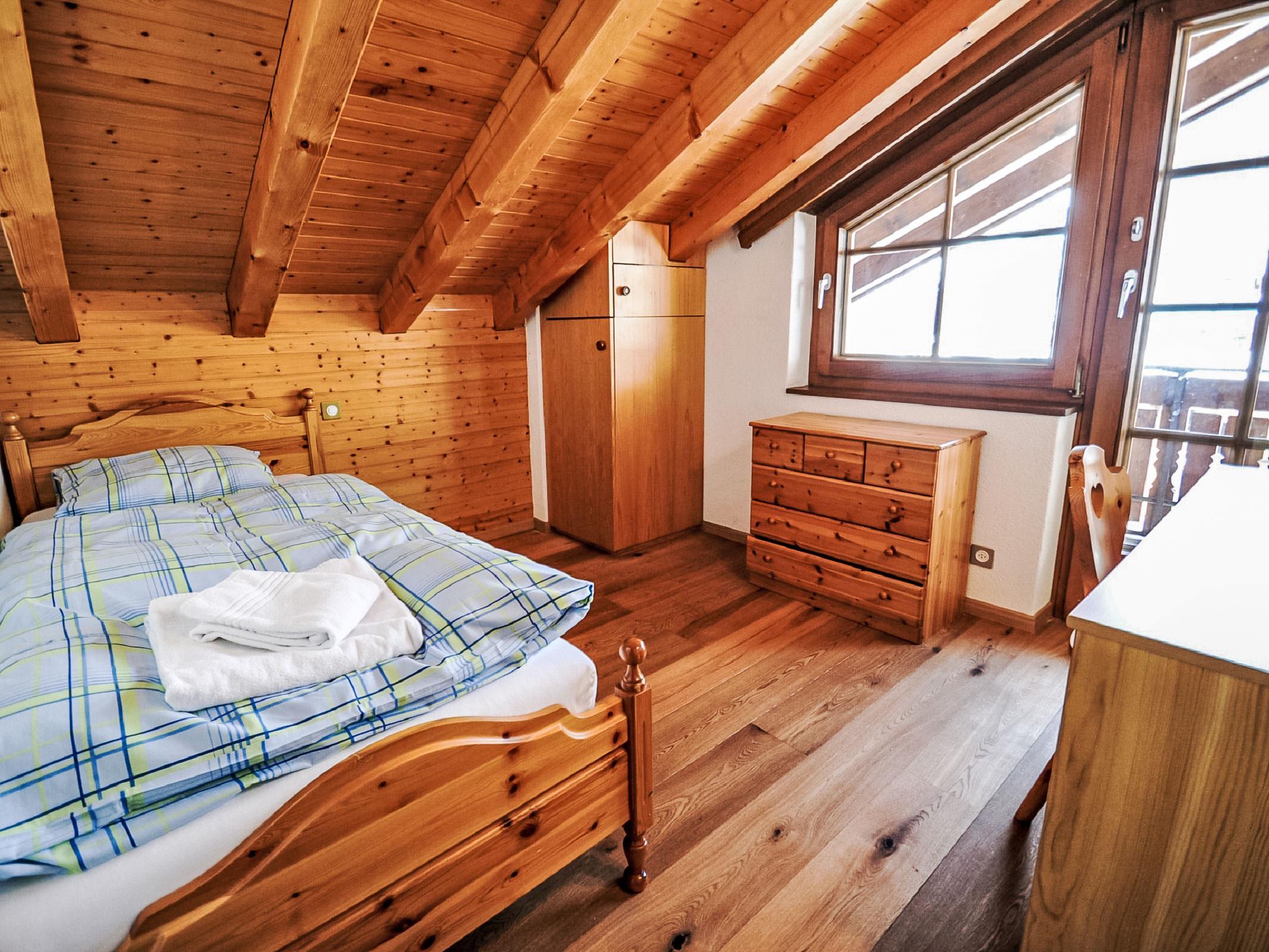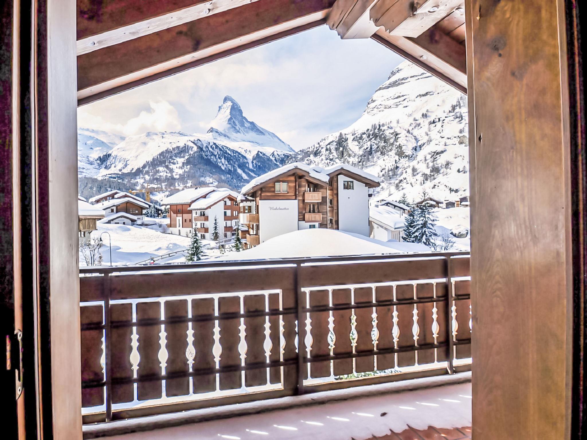 5-room penthouse 114 m2 on 2 levels on 3rd floor, south facing position. Spacious, beautiful and cosy furnishings: living room with open-hearth fireplace, dining table, TV, CD-player and DVD. Exit to the balcony, south facing position. Large kitchen (oven, dishwasher, 4 ceramic glass hob hotplates, toaster, kettle, microwave, freezer, electric coffee machine, combination microwave, fondue Set (cheese)). Shower/WC, sep. WC. Heating. Upper floor: with sloping ceilings, 1 double bedroom with 1 double bed (1 x 160 cm, length 200 cm), bath/WC. With sloping ceilings, 1 room with 2 beds (90 cm, length 200 cm). With sloping ceilings, 1 room with 1 bed (90 cm, length 200 cm). Exit to the balcony, north facing position. With sloping ceilings, 1 room with 2 beds (90 cm, length 200 cm), hand-basin. Exit to the balcony. Parquet floors. 2 balconies, south facing position and north facing position. Balcony furniture. Very beautiful view of the Matterhorn. Facilities: hair dryer. Internet (WiFi). Please note: non-smokers only.