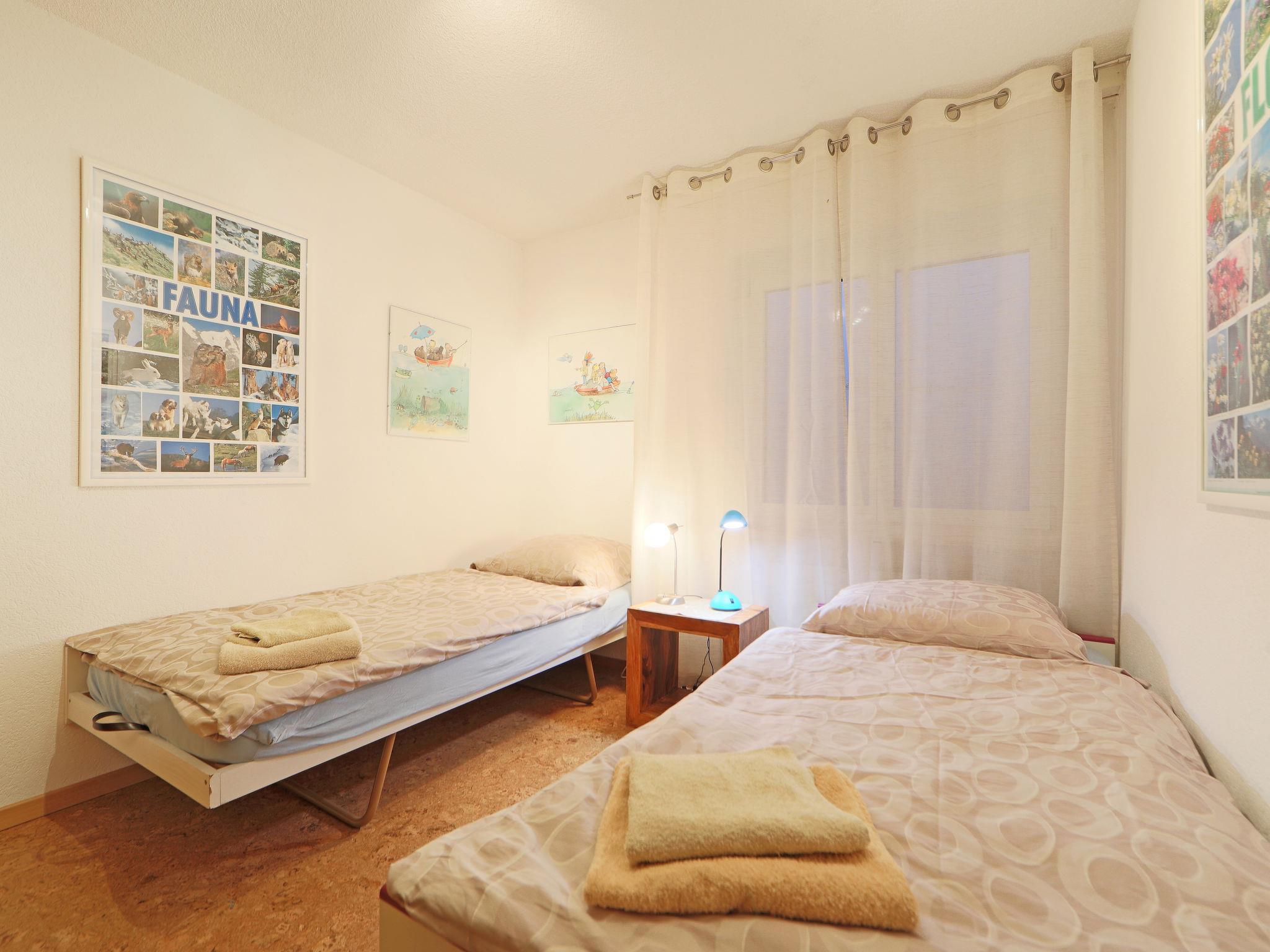 4-room apartment 110 m2, on the ground floor. Practical and comfortable furnishings: living/dining room with open-hearth fireplace, dining table, TV, radio and DVD. Exit to the garden, to the terrace. 1 double bedroom with 1 double bed (2 x 90 cm, length 200 cm). 1 small room with 1 x 2 bunk beds (90 cm, length 200 cm). 1 room with 2 beds (90 cm, length 200 cm). Open kitchen (oven, dishwasher, 4 ceramic glass hob hotplates, toaster, kettle, freezer, electric coffee machine, raclette grill, fondue Set (cheese)) with bar, dining table. Bath/WC, sep. WC. Heating. Terrace. Terrace furniture. Side view of the mountains and the Mischabel group, the Rothorn. Facilities: washing machine, dryer, sauna, hair dryer. Internet (WiFi, free). Please note: non-smokers only. View of the Mischabel group, the Rothorn, the little Matterhorn and the entire station.