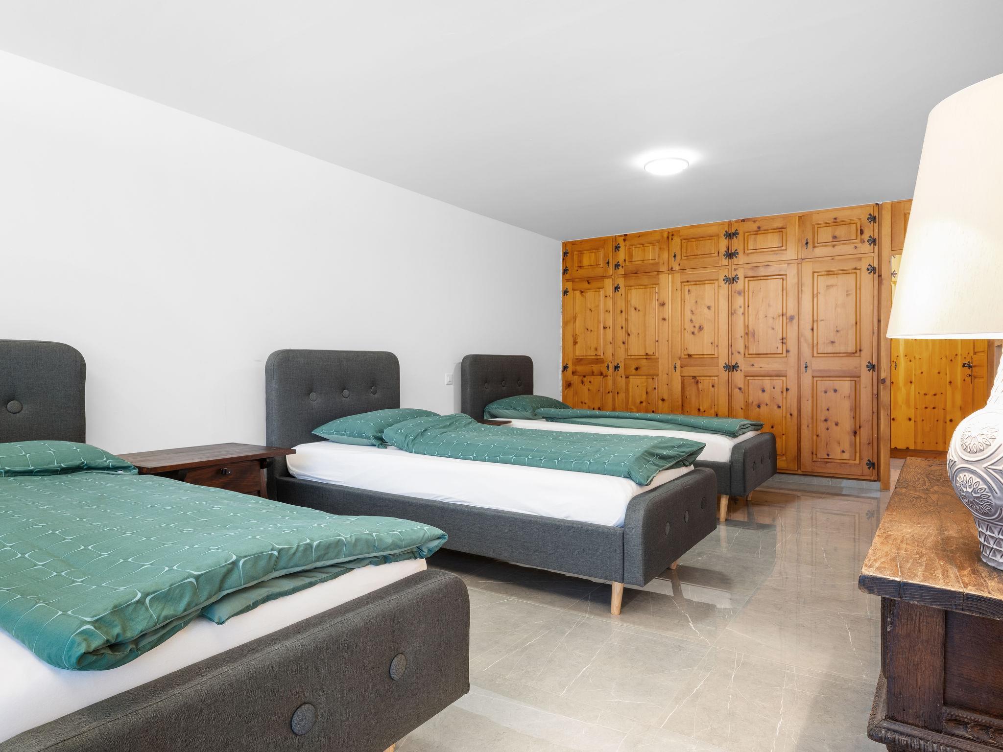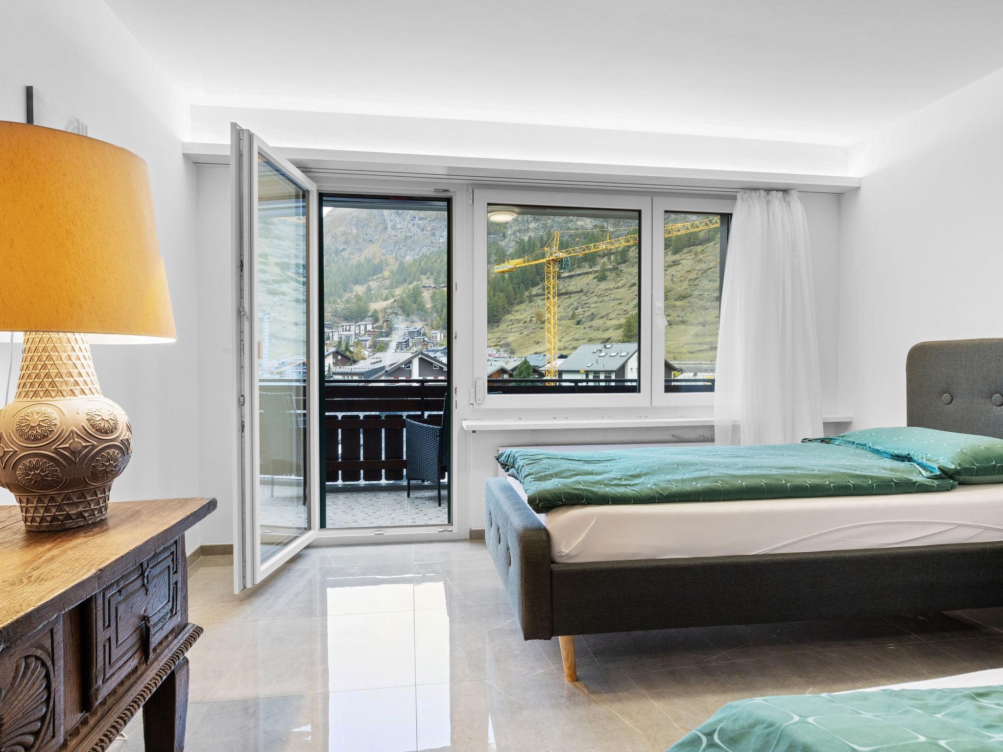 "Primavista", 3-room apartment 90 m2 on 4th floor. Bright, fully renovated in 2024, beautiful and stylish furnishings: living room with TV. Exit to the balcony, south facing position. 1 double bedroom with 1 double bed (1 x 160 cm, length 200 cm). 1 room with 2 beds (90 cm, length 200 cm). Walk-through room with 2 beds (90 cm, length 200 cm). Open kitchen (oven, dishwasher, 4 ceramic glass hob hotplates, toaster, kettle, freezer, electric coffee machine). Bath/WC, shower/WC. Heating. Large balcony, south facing position. Balcony furniture. Very beautiful view of the Matterhorn. Facilities: Internet (WiFi). Please note: non-smokers only.