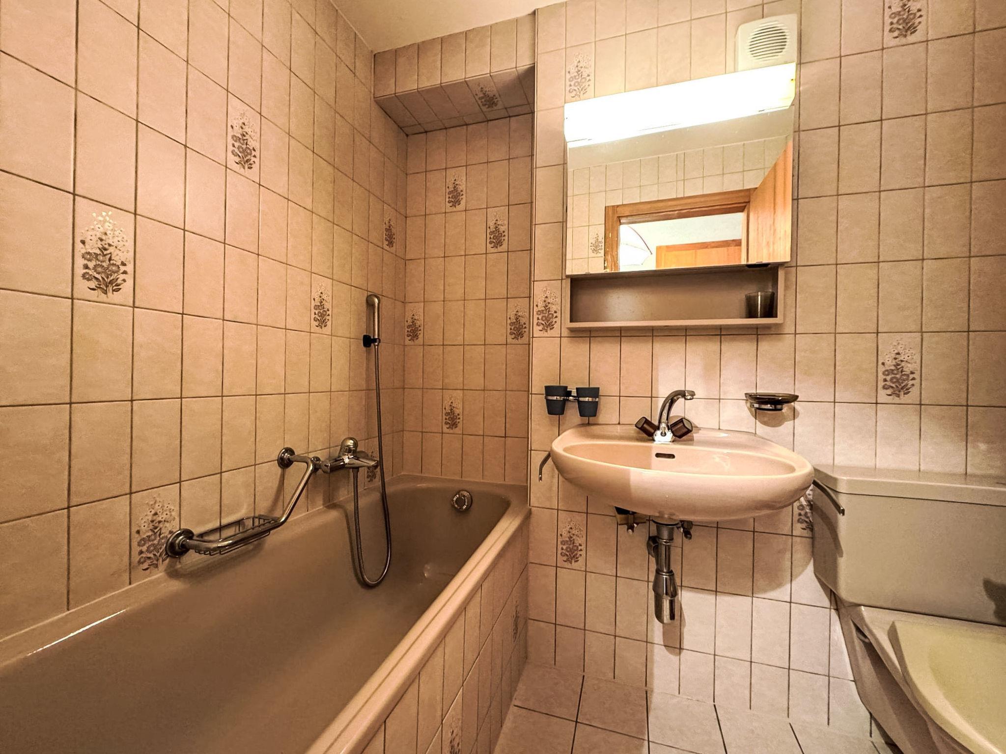 "La Rocca 12", 1-room studio 28 m2 on 2nd floor. Practical and cosy furnishings: living/sleeping room with 1 double fold-away bed (2 x 90 cm, length 200 cm), dining table and digital TV. Small kitchen (3 hot plates, oven, toaster, kettle, electric coffee machine, fondue Set (cheese)). Bath/WC. Floor heating. Carpet. Partial view of the mountains. Facilities: hair dryer. Internet (WiFi, free, Bandwidth: 100 Mbit/s). Please note: non-smokers only.