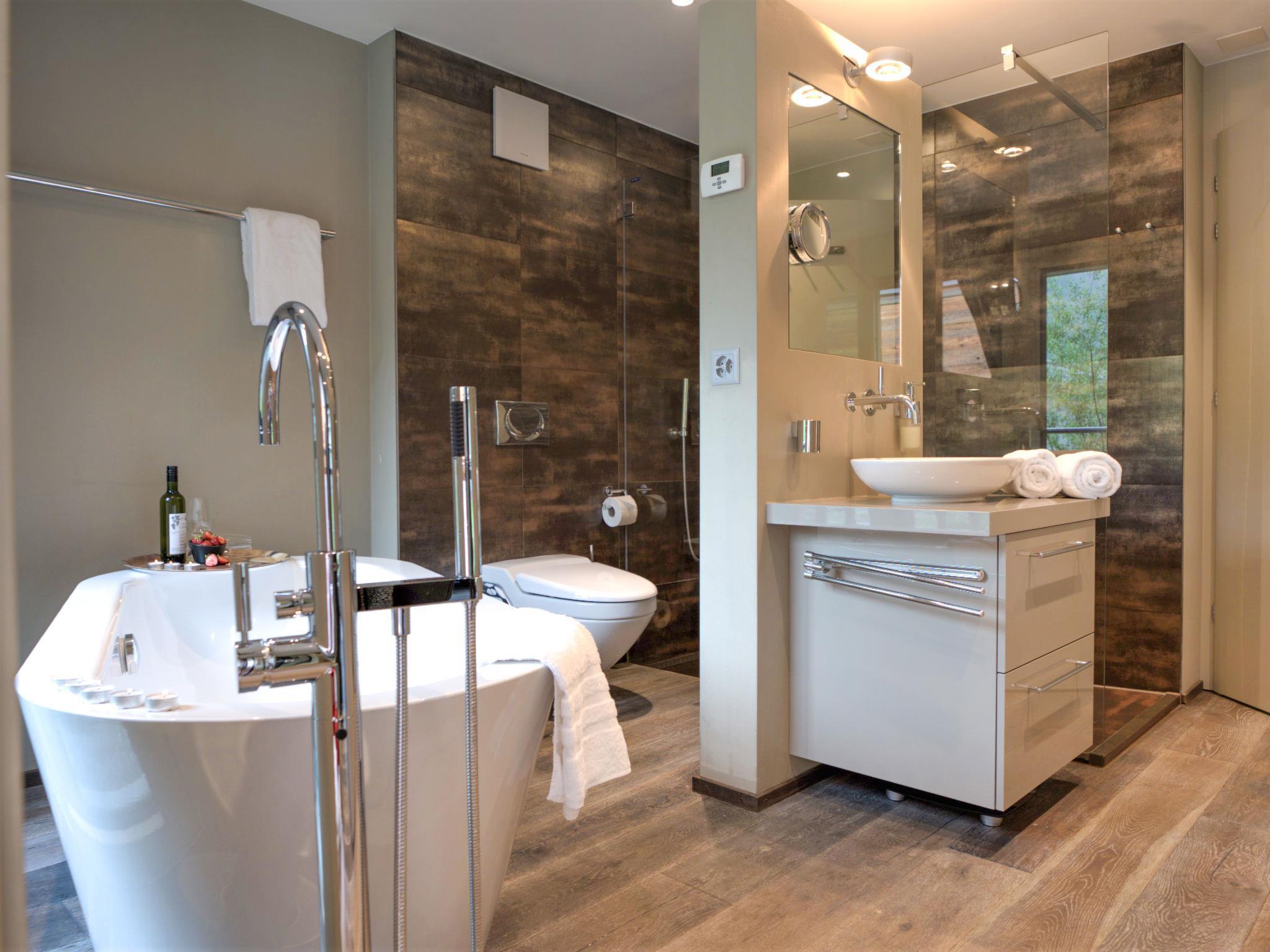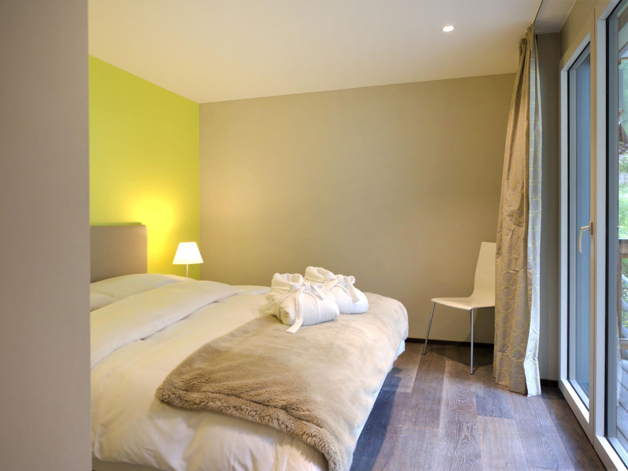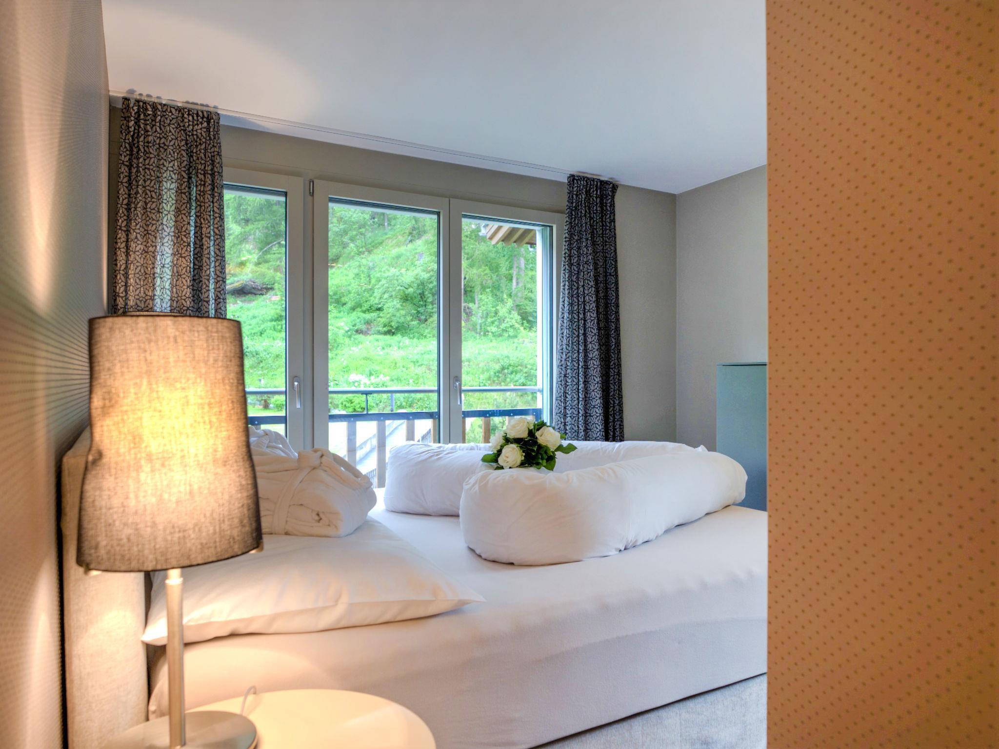 5-room apartment 120 m2 on 2 levels, on the ground floor. Object suitable for 6 adults + 2 children. Spacious and bright, modern and luxurious furnishings: on the lower ground floor: open living/dining room with TV. Open kitchen (oven, dishwasher, 4 ceramic glass hob hotplates, toaster, kettle, freezer, electric coffee machine, raclette grill, combination microwave, fondue Set (chinoise, cheese)) with dining table. Exit to the terrace. Upper floor: 1 double bedroom with 1 double bed (180 cm, length 200 cm). Exit to the balcony. 1 double bedroom with 1 double bed (180 cm, length 200 cm), shower/WC. 1 large double bedroom with 1 double bed (180 cm, length 200 cm), bath/shower/WC. Exit to the terrace. 1 children's room with 1 x 2 bunk beds (90 cm, length 200 cm). Shower/WC. Balcony, large terrace. Terrace furniture. Partial view of The Matterhorn. Facilities: safe, hair dryer. Internet (WiFi, free). Please note: non-smokers only.