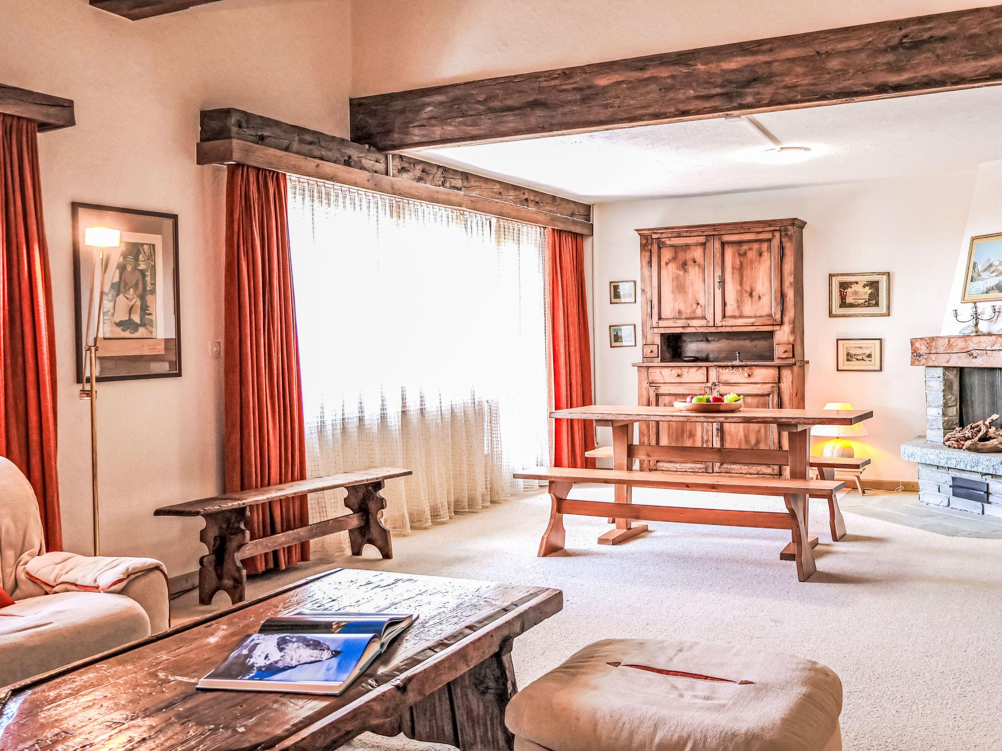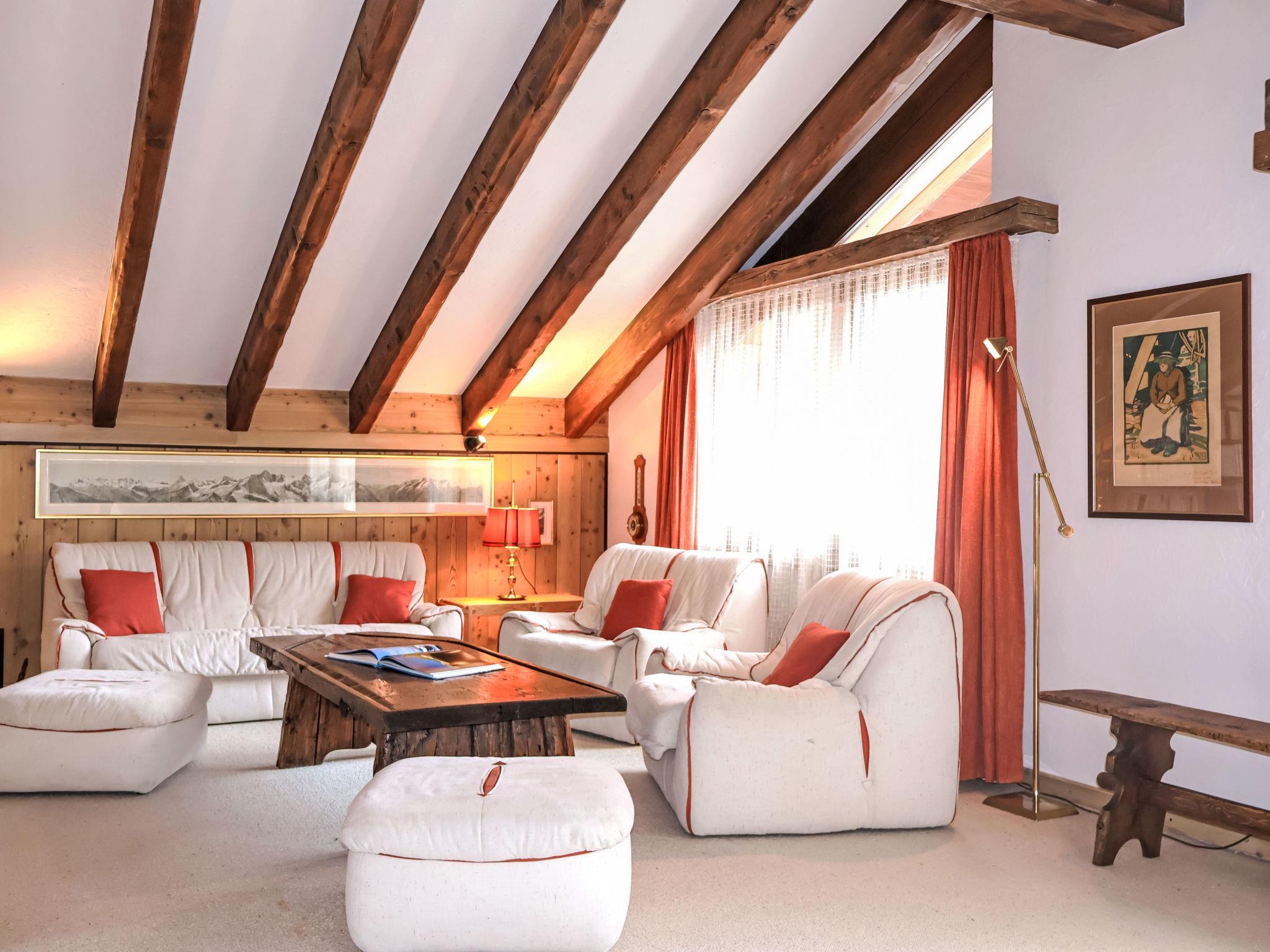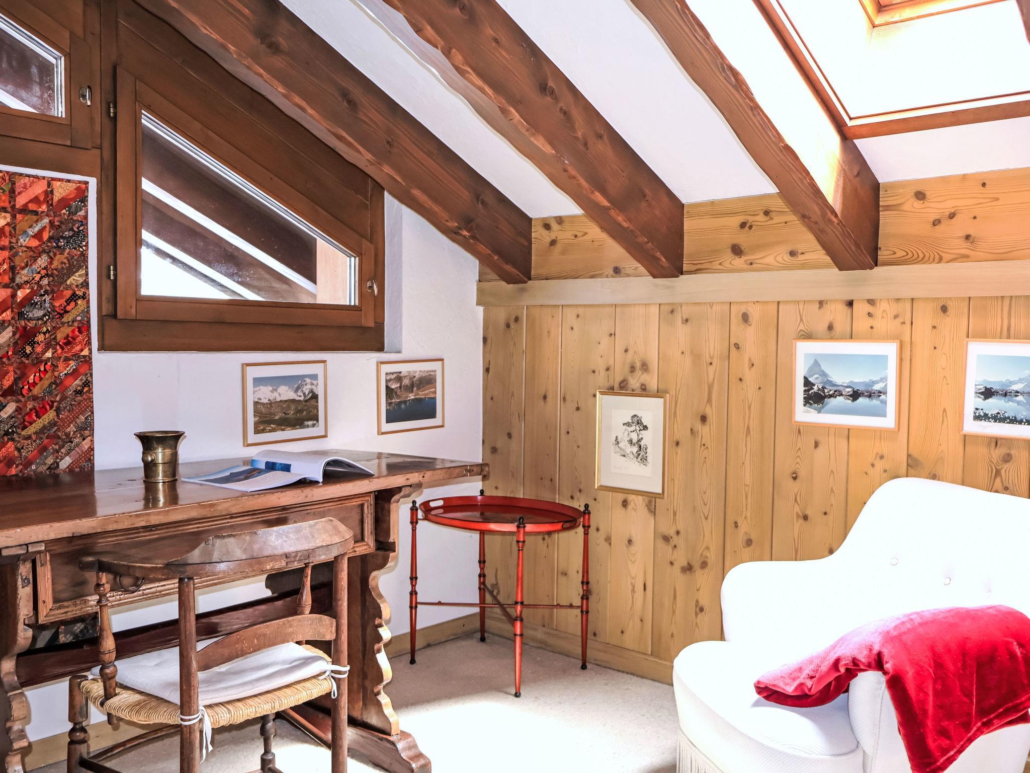 3-room apartment 152 m2 on 2 levels on 4th floor, south-west facing position. Simple and comfortable furnishings: living/sleeping room with 1 double sofabed (140 cm, length 200 cm), open-hearth fireplace (only for decoration), digital TV. Exit to the balcony, south facing position. 1 double bedroom with 1 double bed (2 x 90 cm, length 200 cm). Open kitchen (oven, dishwasher, 4 ceramic glass hob hotplates, microwave, freezer, electric coffee machine). Bath/WC. Heating. Upper floor: (spiral staircase), 1 double bedroom with 1 double bed (2 x 90 cm, length 200 cm). Exit to the balcony, south facing position. Bath/shower/WC. Balcony furniture. Partial view of the Matterhorn. Facilities: washing machine. Internet (WiFi, free). Please note: non-smokers only.