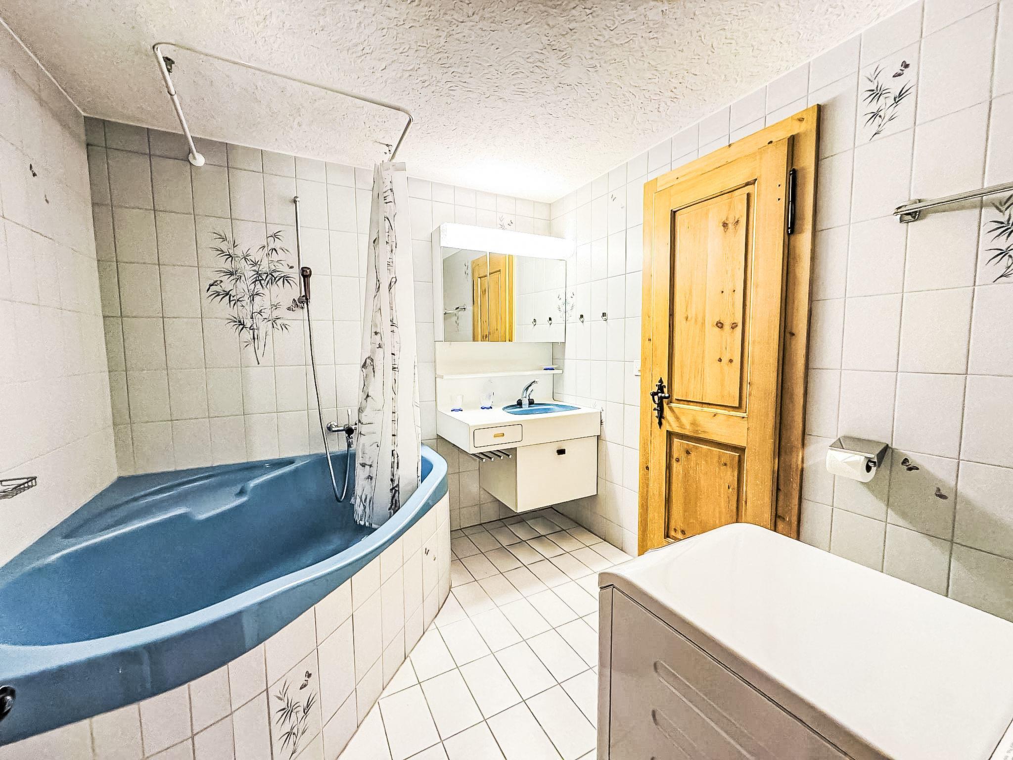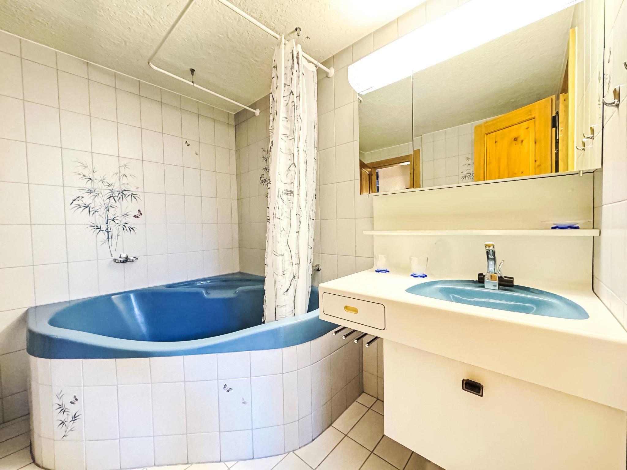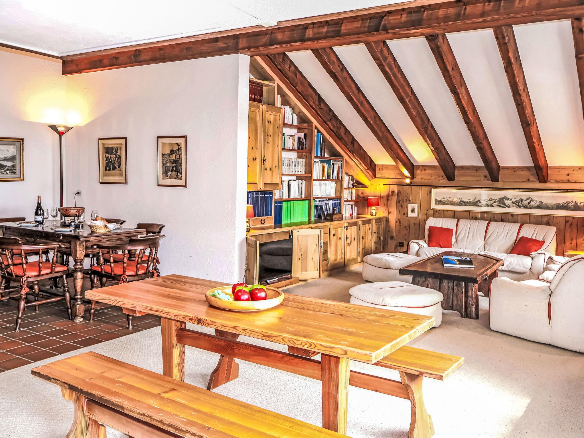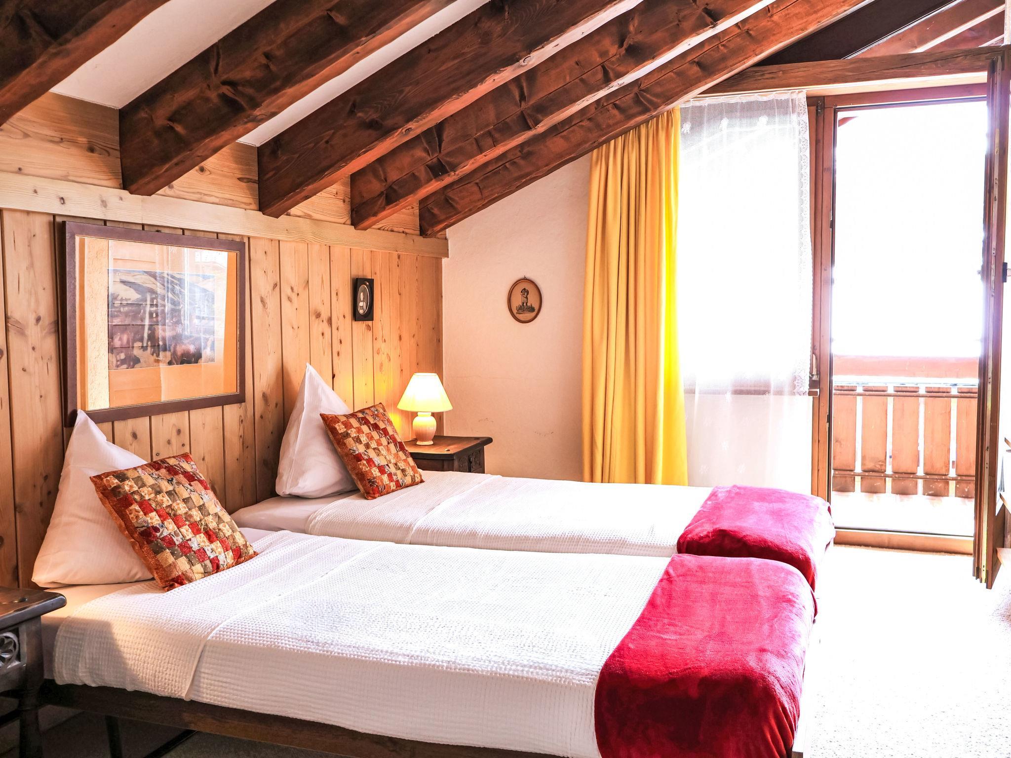 3-room apartment 152 m2 on 2 levels on 4th floor, south-west facing position. Simple and comfortable furnishings: living/sleeping room with 1 double sofabed (140 cm, length 200 cm), open-hearth fireplace (only for decoration), digital TV. Exit to the balcony, south facing position. 1 double bedroom with 1 double bed (2 x 90 cm, length 200 cm). Open kitchen (oven, dishwasher, 4 ceramic glass hob hotplates, microwave, freezer, electric coffee machine). Bath/WC. Heating. Upper floor: (spiral staircase), 1 double bedroom with 1 double bed (2 x 90 cm, length 200 cm). Exit to the balcony, south facing position. Bath/shower/WC. Balcony furniture. Partial view of the Matterhorn. Facilities: washing machine. Internet (WiFi, free). Please note: non-smokers only.