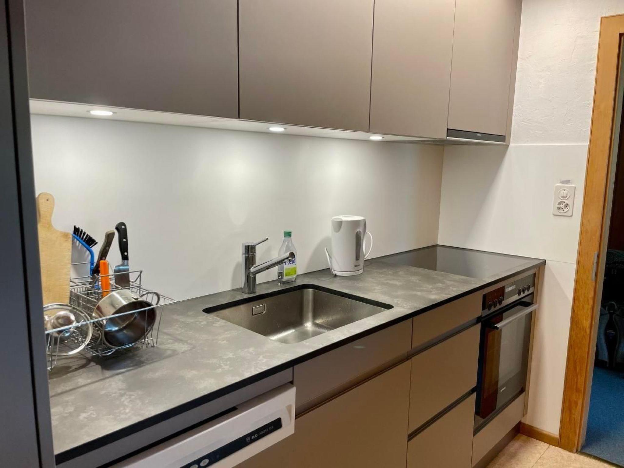 There is a wide hatch into the kitchen. Here you can close the doors for cooking or leave everything open and take part in family life in the living room while cooking. Since we like to cook ourselves, the kitchen is well equipped with cooking utensils; in addition to good pots and pans, mixing bowls, cooking and serving utensils, there are many extras, such as a food processor with MIxer and meat grinder, a caquelon (cheese fondue set) and a spaetzle slicer. There is a coffee machine for filter coffee, a kettle, a toaster, a hob with 4 ring ceramic hob and oven, a dishwasher and a fridge with freezer compartment.