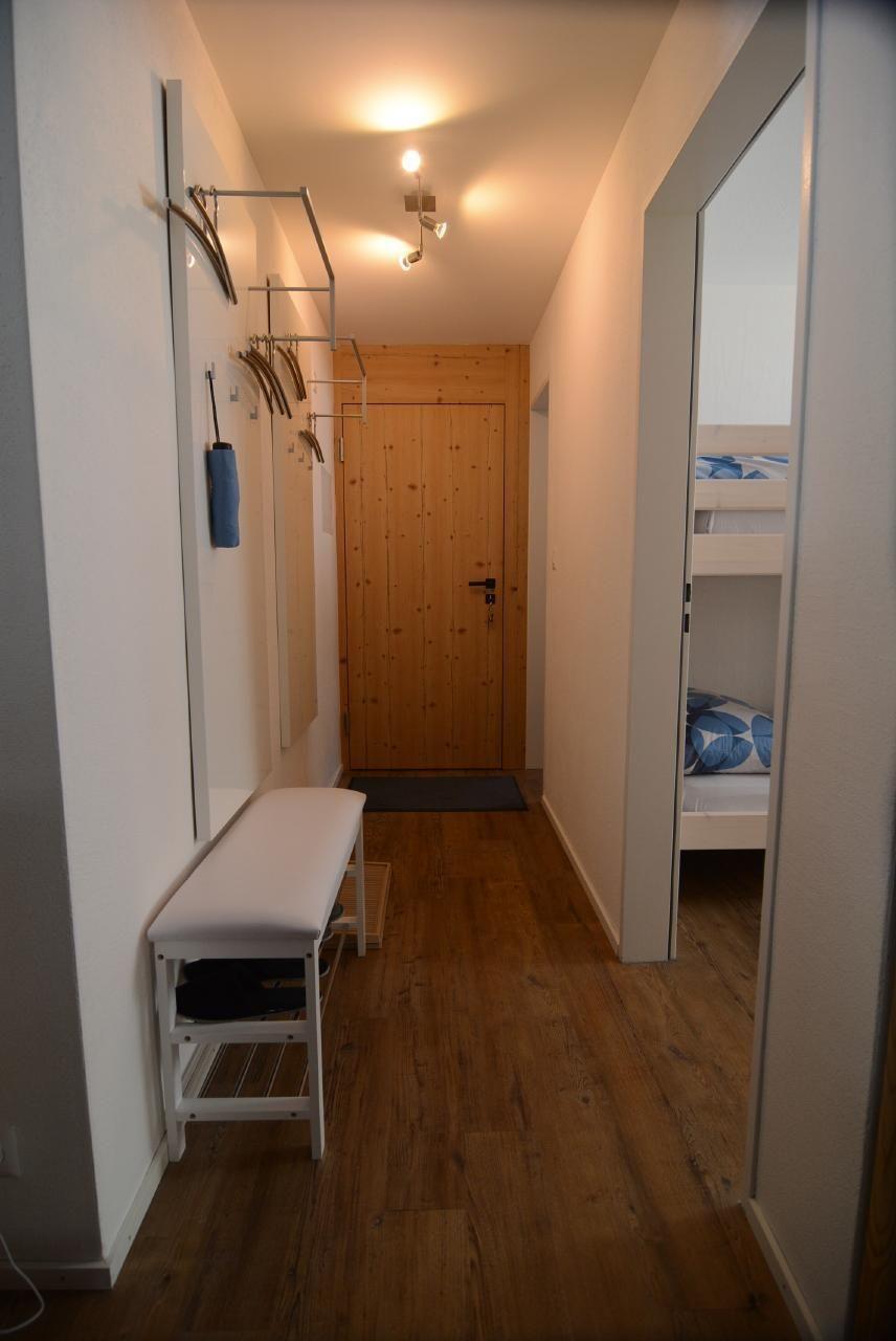 The flat is suitable for 2 to 4 pesons. It comprises a dining / living room with Swedish stove and solid Swiss stone pine furniture and leather sofa bed. Practically equipped kitchen with dishwasher, Nespresso machine and many other facilities. 2 bedrooms, one with double bed, the second with bunk bed. Shower/WC and a cellar compartment for sports equipment.