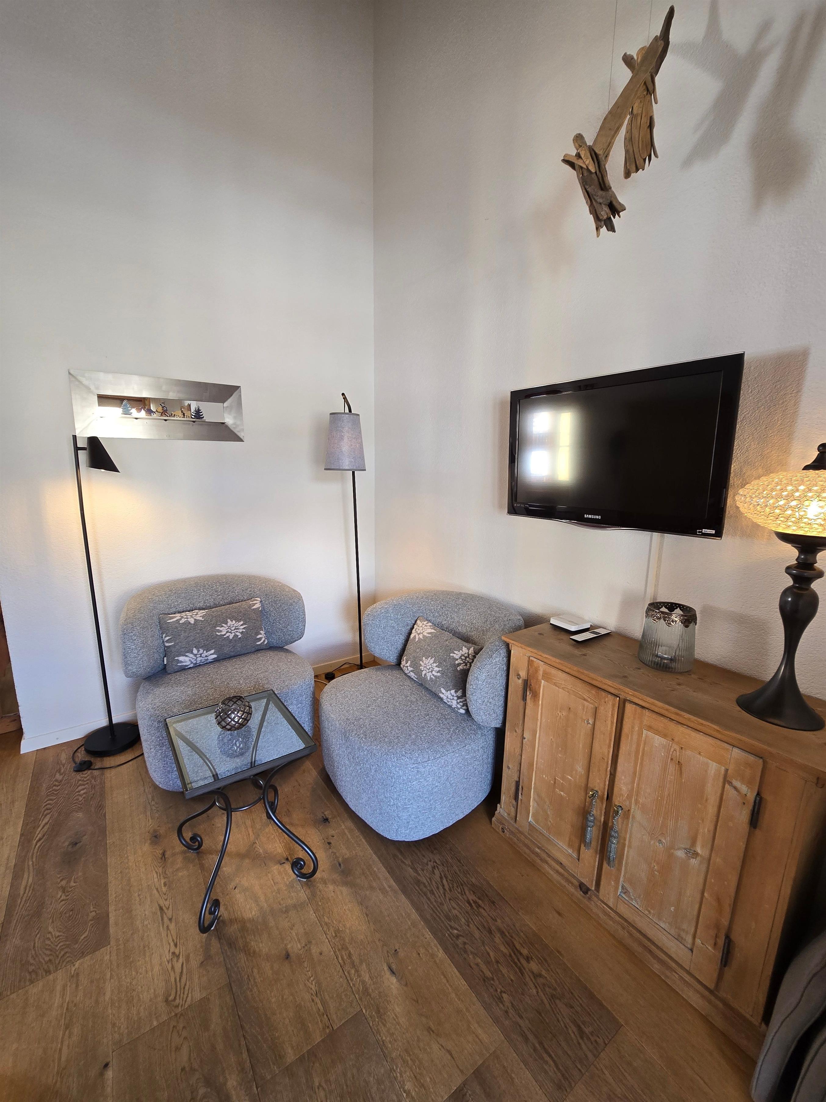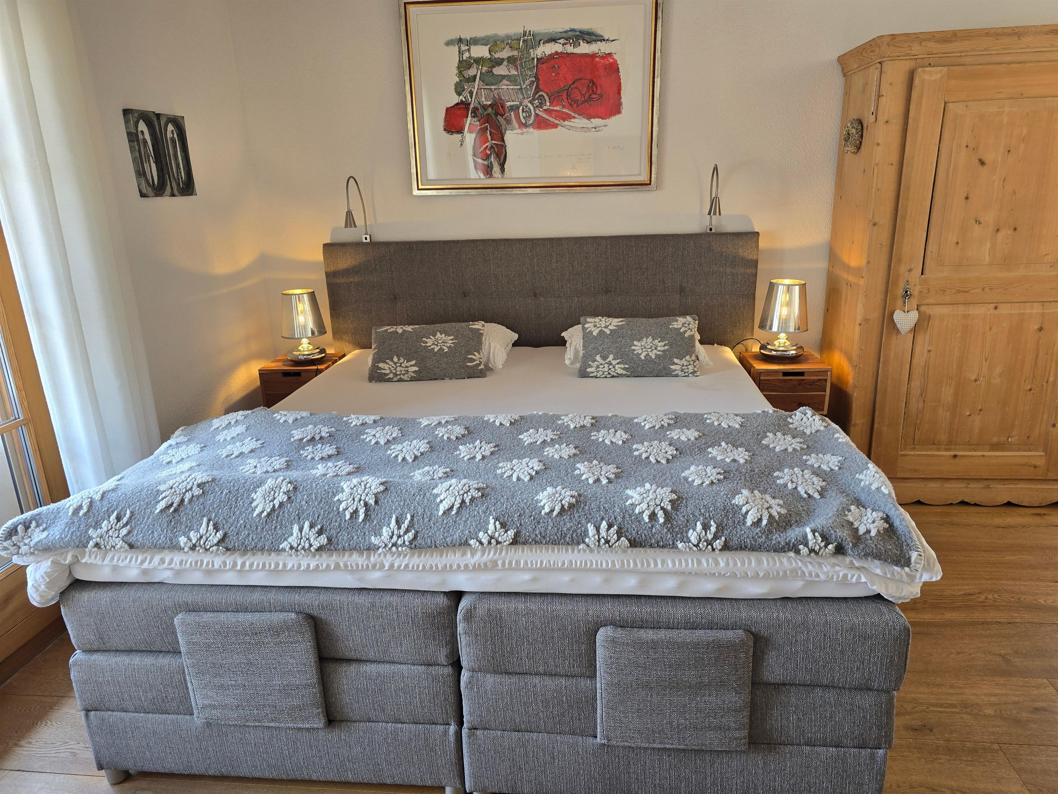 Sunny 1 1/2 room apartment on the 2nd floor, with elevator, in a quiet area, with a sunny balcony. Rustic, very homely. Parquet floor with underfloor heating. Well-equipped kitchen, 4 hot plates, fridge with freezer, dishwasher, filter or capsule coffee machine, fondue and raclette dishes, kettle, microwaves also on request. Ski an Bike room, storage space in the besement.