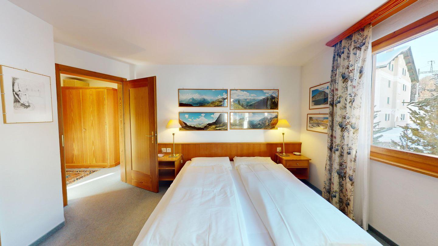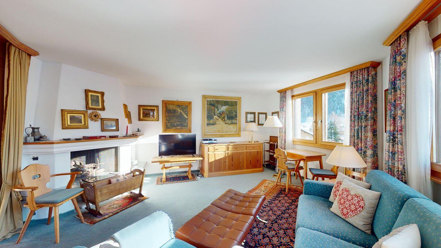 3.5-Zimmer-Wohnung in der Residenza Belvair mit offenem Wohnbereich, zwei Schlafzimmern und Balkon. Kamin darf nicht genutzt werden. Gemeinschaftlicher Wellnessbereich im Winter. Gute Lage in Zuoz, nahe Bahnhof und Einkaufsmöglichkeiten.