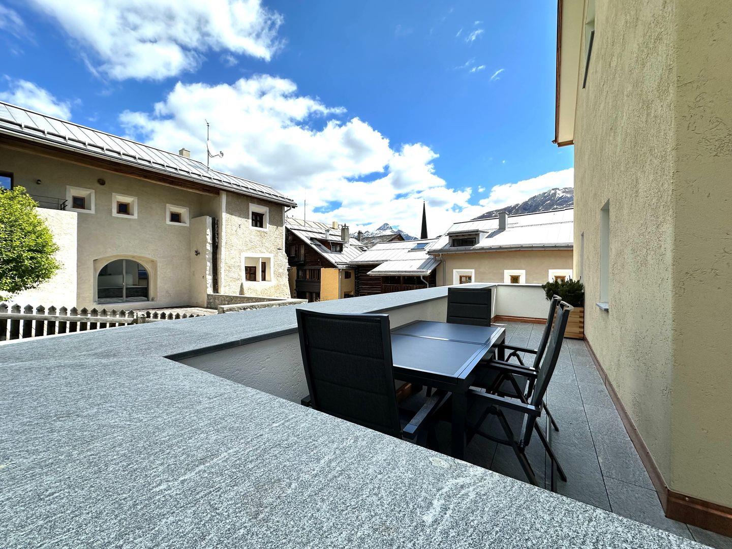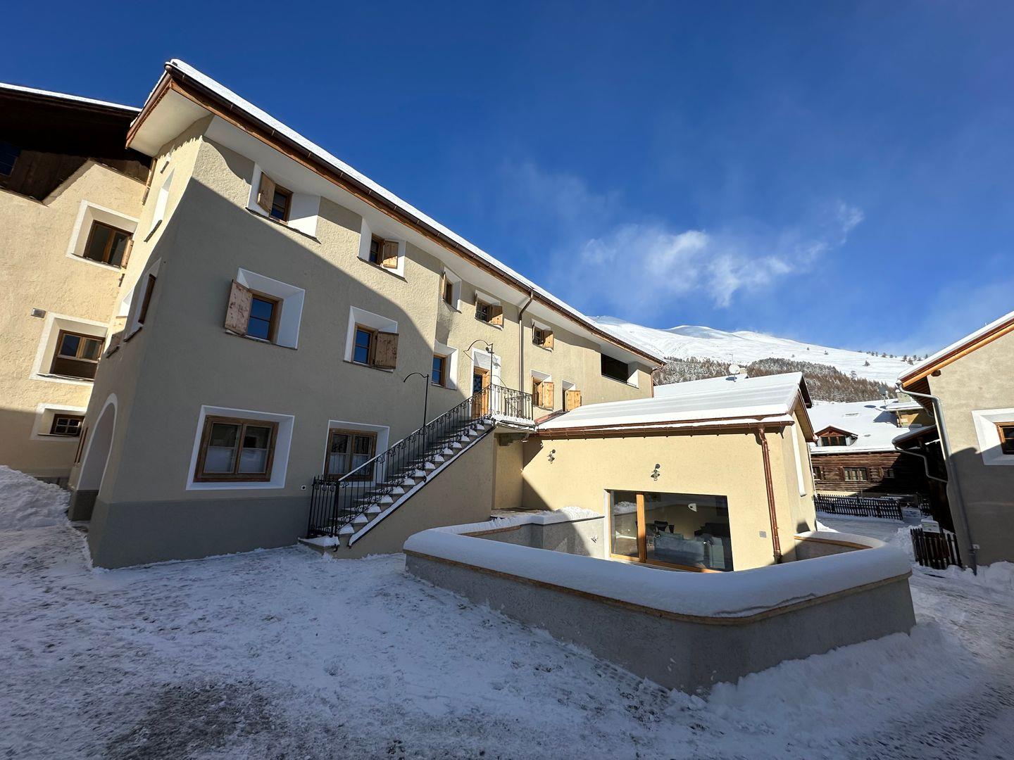 Inmitten eines historischen Engadinerhauses erwartet Sie die Terrassa-Wohnung, die mit ihrer riesigen Sonnenterrasse und Platz für 2 bis 6 Personen begeistert. Geniessen Sie den Ausblick auf die Berge und die einzigartige Atmosphäre des sorgfältig renovierten Hauses, das traditionellen Stil und moderne Annehmlichkeiten vereint.