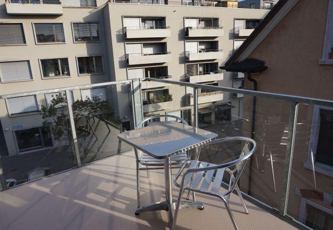 Inexpensive and fully furnished business apartment in Zurich with balcony for two persons.
