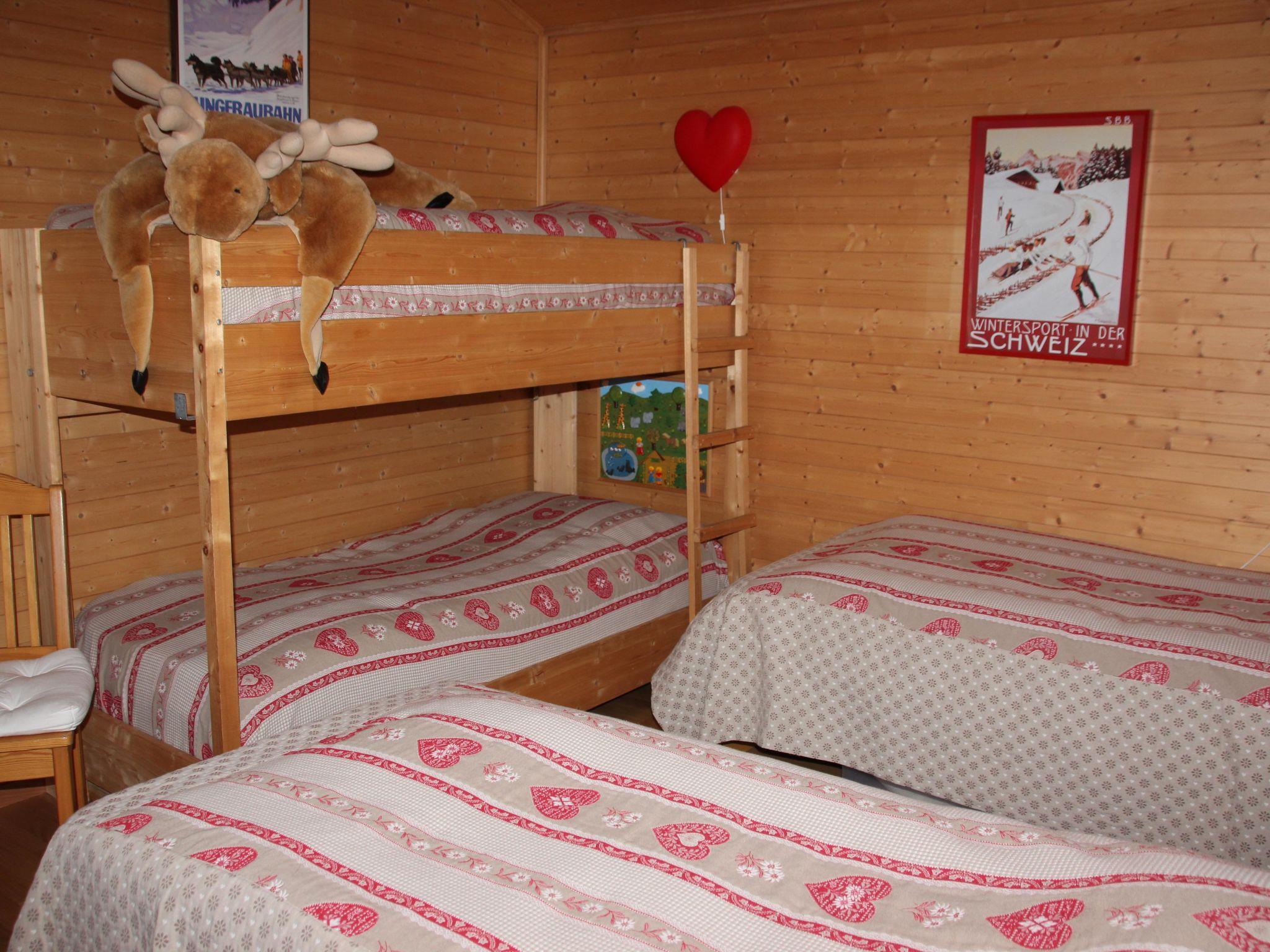 Big living room with a southfacing balcony, TV/video/radio, large couch. 1 bathroom with bath/toilet and 1 separate toilet. 1 bedroom with 1 double bed (2x100x200cm) and bathroom with shower/toilet. 1 bedroom with two single beds (2x90x200cm) and 1 bunk bed (2x80x200cm). Separate, new kitchen with microwave, dishwasher, refrigerator with freezer, oven, coffee machine with capsules (Nespresso), filter coffee machine as well as a fondue-raclette-set. WiFi. Baby cot (65x120cm, excl. bed linen) and highchair available. Note: the apartment is not suitable for persons with allergies.