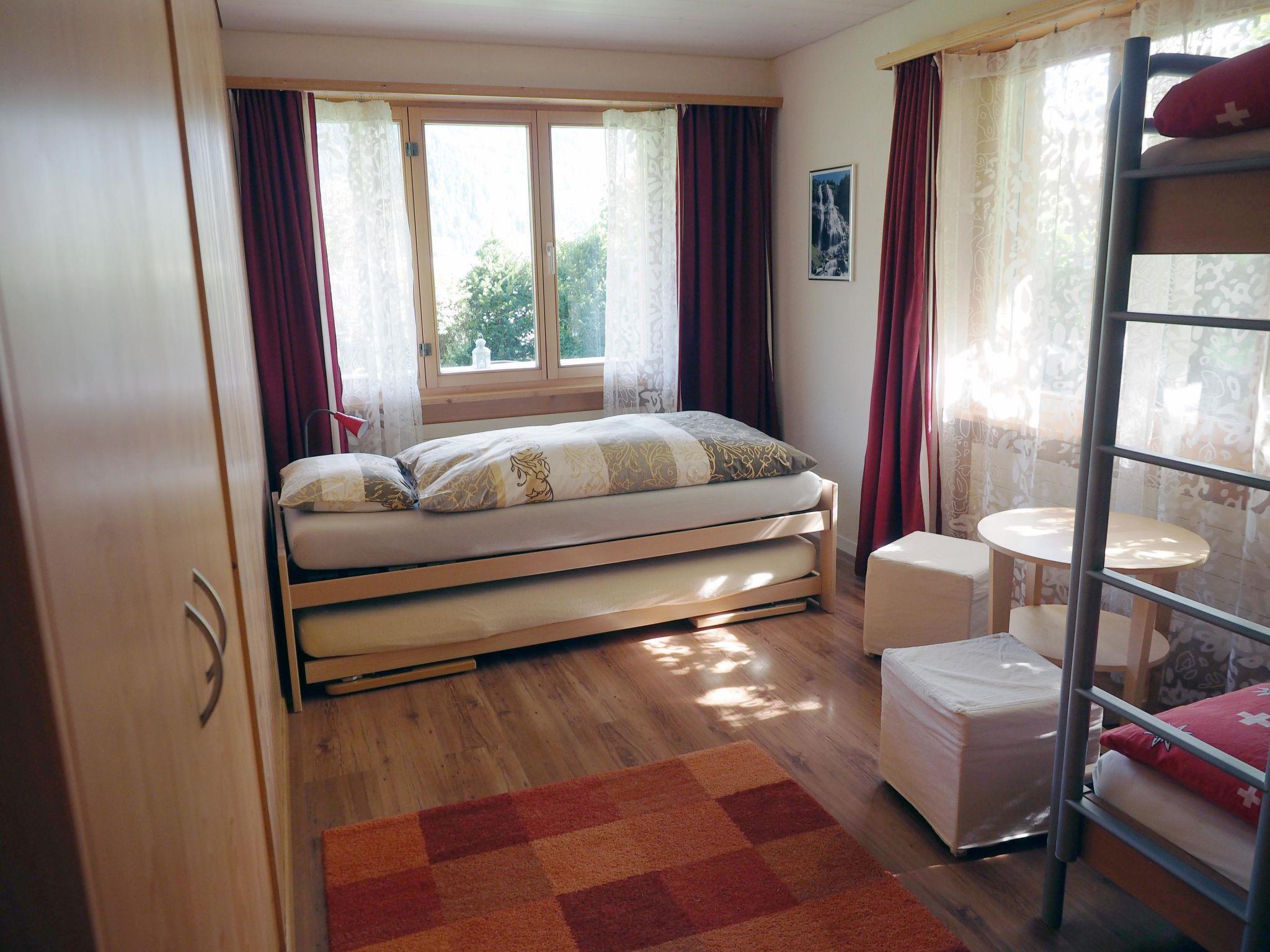 Bedroom: Double bed (2x100x200cm). Bedroom for children: 1 bunk bed (2x90x200cm) and 2 single beds (90x200cm). Living room: table, sofa, cable TV, radio, CD-player, DVD player. WiFi. Open-plan kitchen: dining table, dishwasher, oven, refrigerator with freezer, coffee machine, fondue- and raclette-set, electric kettle. Bathroom: A lot of space, new furniture. There is a store room available. Baby cot (60x120cm) incl. bed linen and highchair available.