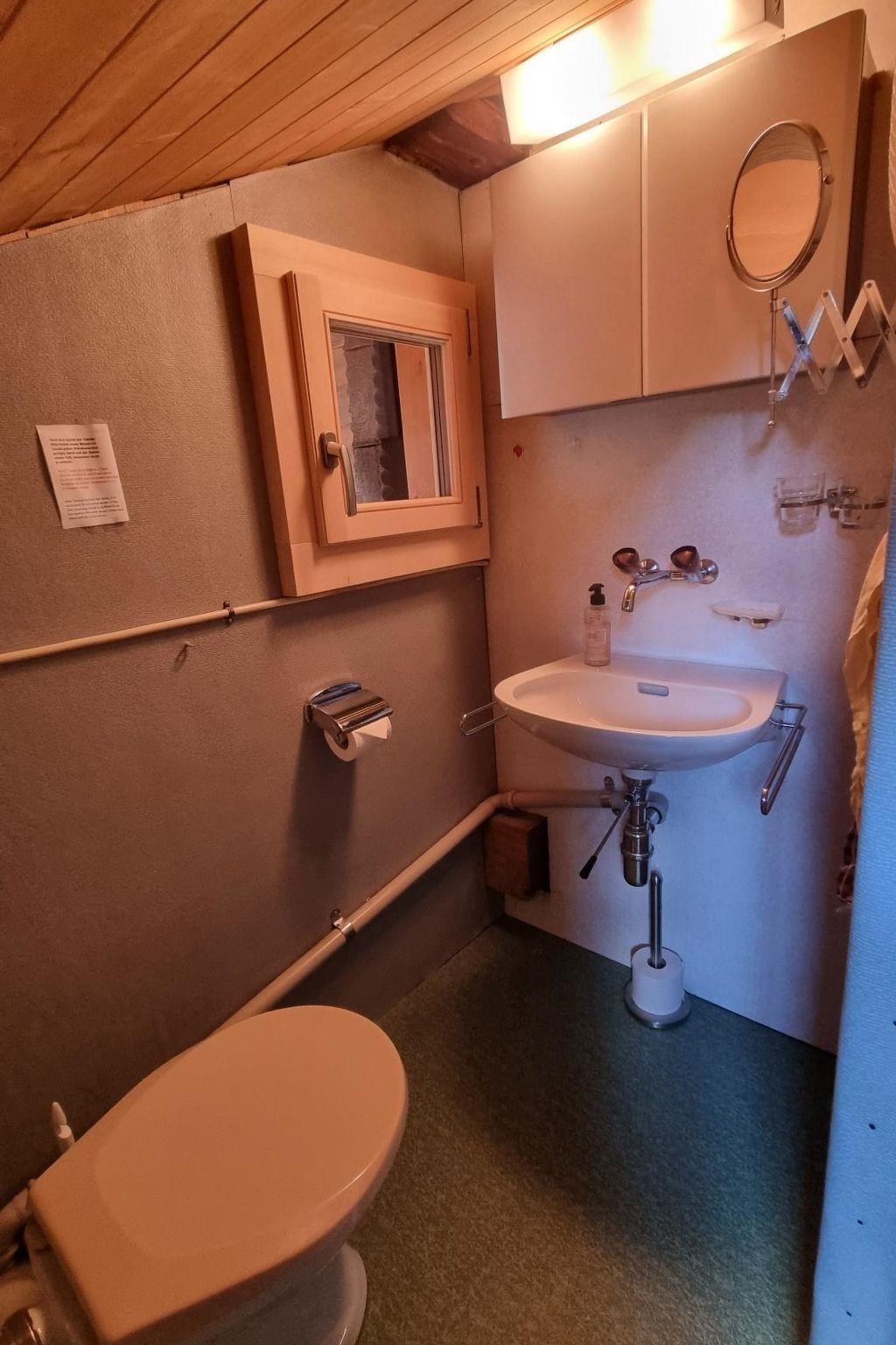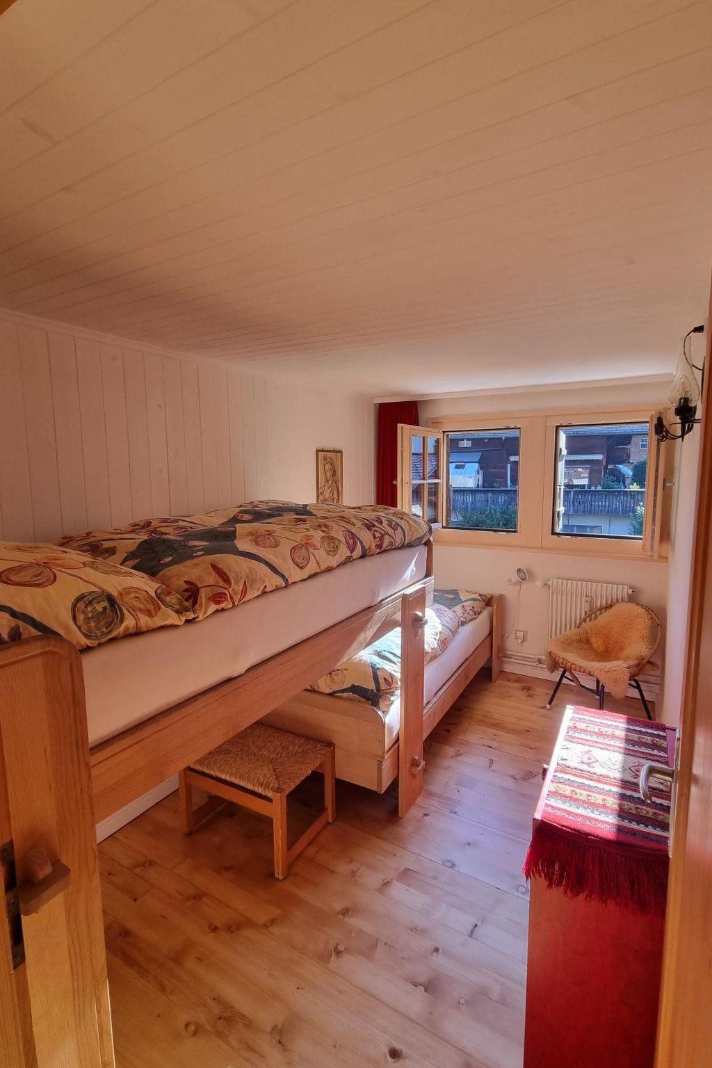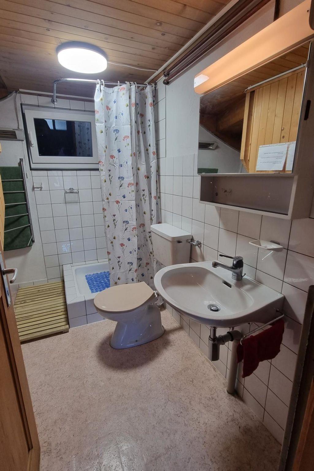 Ground floor: Entrance, wardrobe and 1 bathroom, shower and toilet. 1st floor: Living room with dining table, corner seat, 3 chairs and TV. Separate in 2020 renovated kitchen (among other things furnished with ceramic stove, oven, refrigerator with deep-freeze compartment, dishwasher, coffee machine with capsules (Krups) as well as a fondue-raclette-set), seats for 2 persons. 2nd floor: 1 bedroom with 2 single beds (2x90x190cm). 2 bedrooms with each 2 bunk beds (90x190cm). 1 separate very small toilet (sloping ceiling, height 140-180cm). WiFi.
