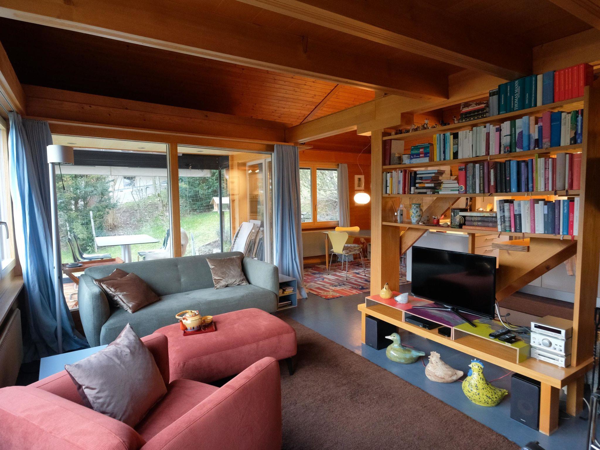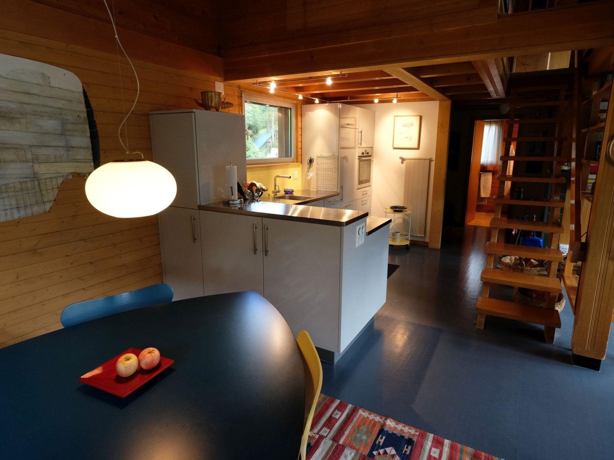 Raised ground floor (entrance): Spacious and bright living/dining room with sofa, 2 armchairs, TV, Teleboy with 250 channels, Apple TV and Netflix (own subscription necessary) and dinette with dining table. Open-plan kitchen with dishwasher, coffee machine with capsules (Nespresso), fondue- and raclette-set as well as a variety of other kitchen equipment. 1 bedroom with 1 grand-lit (160x200cm). 1 Bathroom with bathtub/toilet. 1st floor (gallery): 1 separate bedroom with 1 grand-lit (140x200cm). 1 grand-lit (140x200cm / automatically adjustable ergonomic bed system) on the gallery (unclosed room). WiFi (1000MB/s).