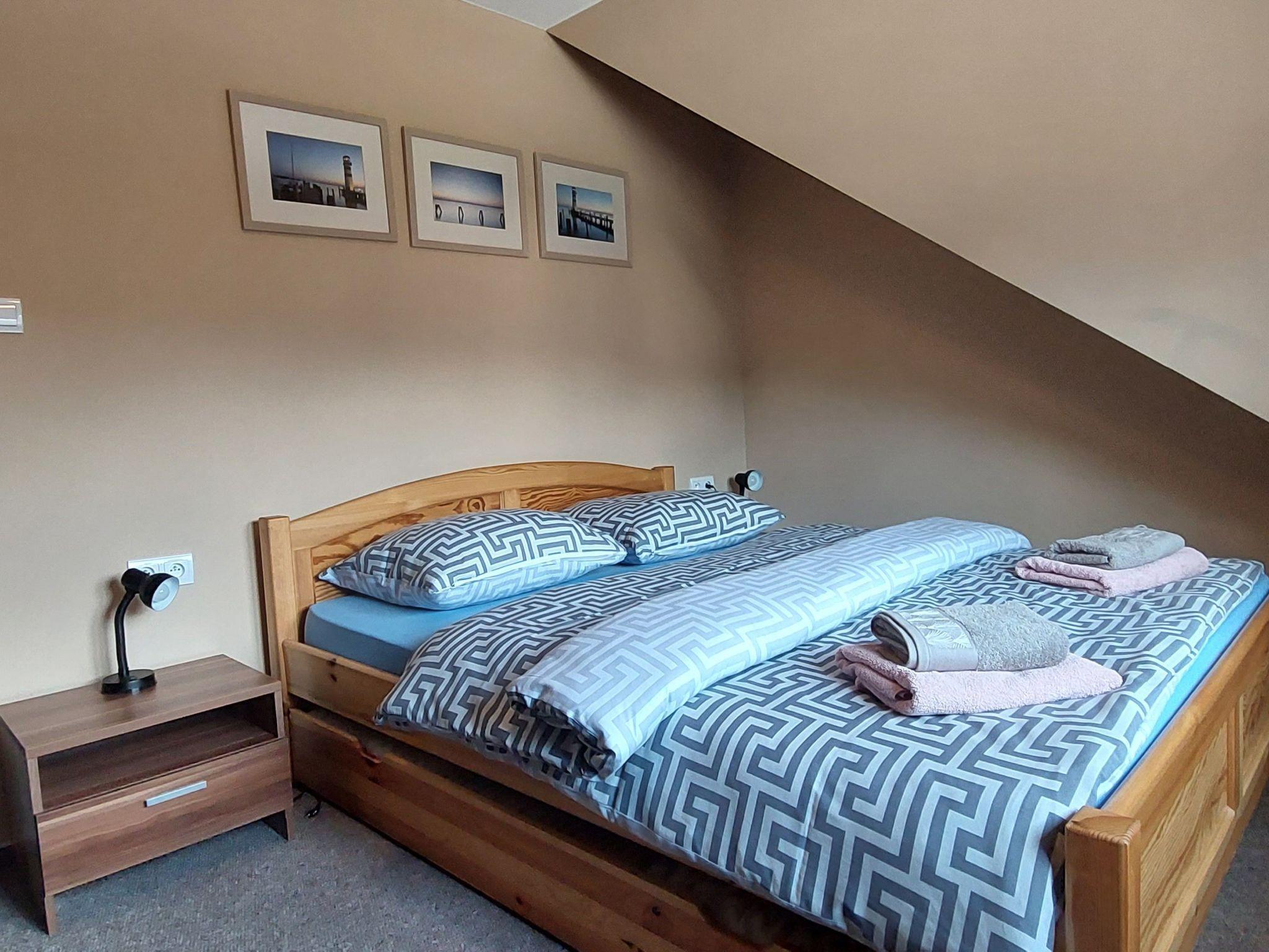 Inside the flat you will find a practically furnished bedroom and a bathroom with shower. The equipment includes a 2-plate induction cooker, a capsule coffee machine and a kettle, which will make your stay uncomplicated and cosy. The well thought-out interior design creates a pleasant ambience in which you can relax after an eventful day.