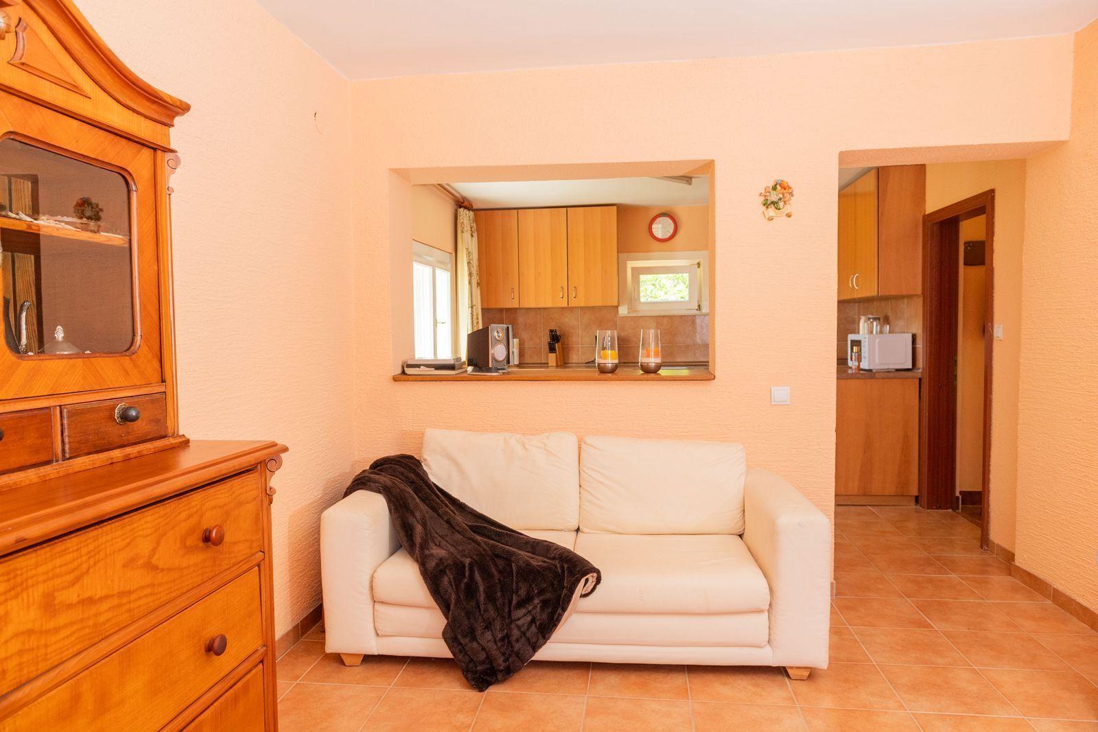 With a living space of 90 m², the single-storey house is divided into two bedrooms, a living room, a kitchen and a bathroom. The first bedroom, the master bedroom, has a double bed measuring 160 cm x 200 cm. The children's bedroom is equipped with a double bed measuring 140 cm x 200 cm, which can accommodate a total weight of up to 130 kg. There are wardrobes in the bedrooms to store your luggage. In the living room, you can take a seat on a sofa bed for two and relax in the evening after a day out. A TV with DVD player and a stereo system with radio provide entertainment. The fitted kitchen is equipped with everything you need for extensive self-catering. You can use an electric four-zone hob, an oven, a fridge with freezer compartment, a microwave and small electrical appliances such as a coffee machine, a toaster and a kettle. The bathroom has a walk-in shower with shower curtain, a washbasin with WC and a bathroom window.