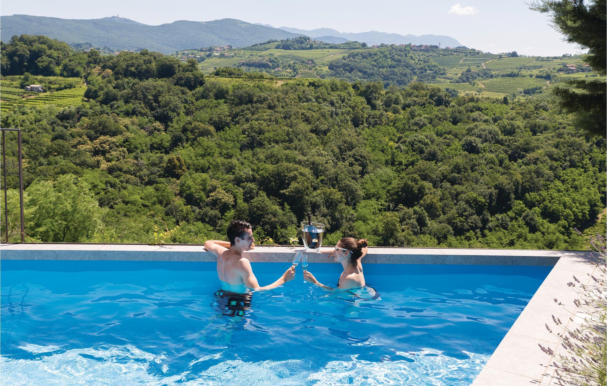 På varme sommerdage kan I snuppe en dukkert i poolen.I kan i det hele taget se frem til mange måder at slappe af på, for huset er også udstyret med finsk og infrarød sauna samt en jacuzzi, hvorfra man kan nyde en vidunderlig udsigt over de omkringliggende bakker.