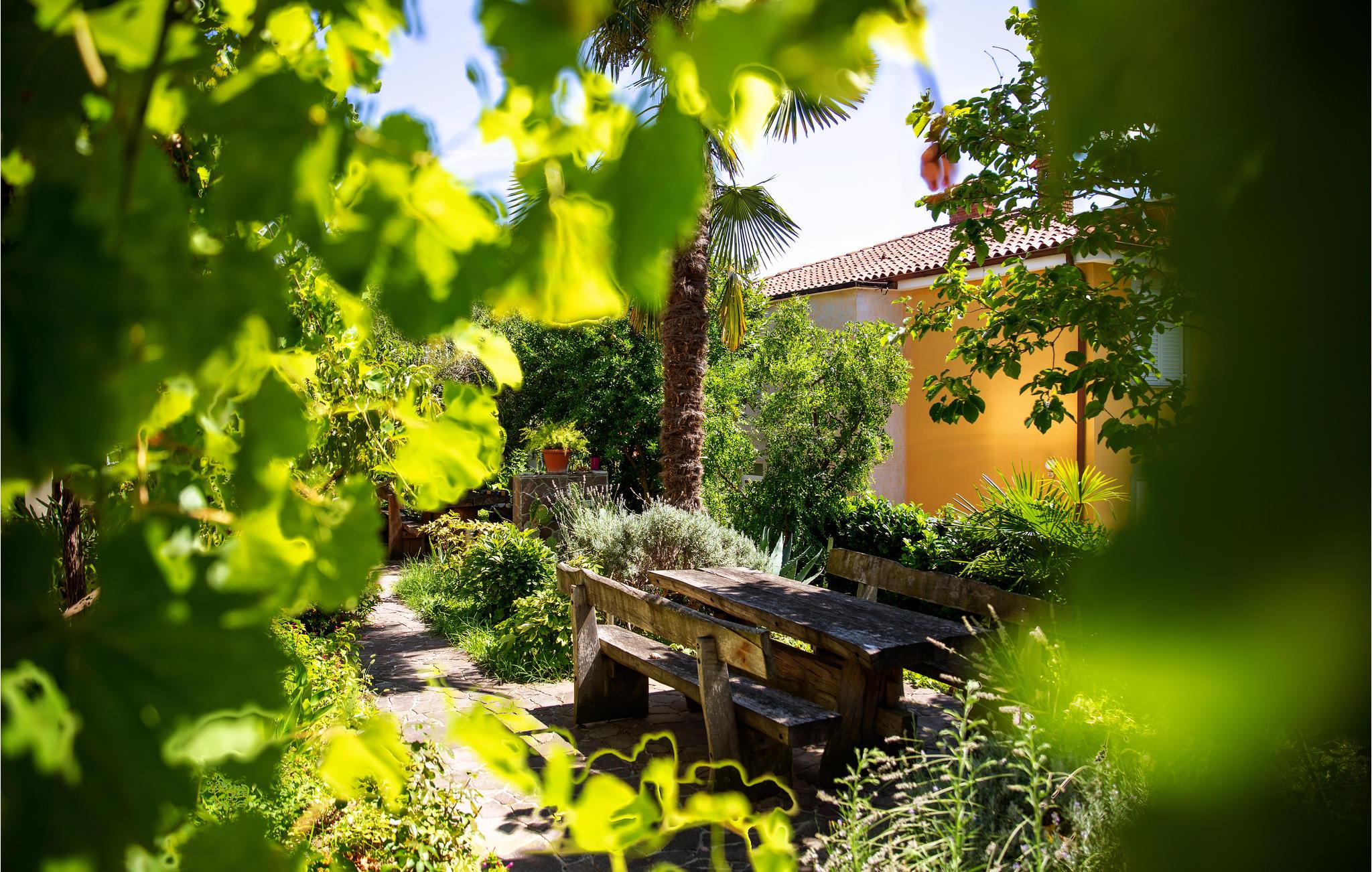 Denne lejlighed er restaureret og kombinerer moderne inventar med flotte, klassiske træk. Her kommer I til at bo i et af Pirans rolige boligområder, få minutters gang fra havet. Omkring bygningen er der en dejlig, grøn have, hvor I kan sætte jer med et glas vin om aftenen.