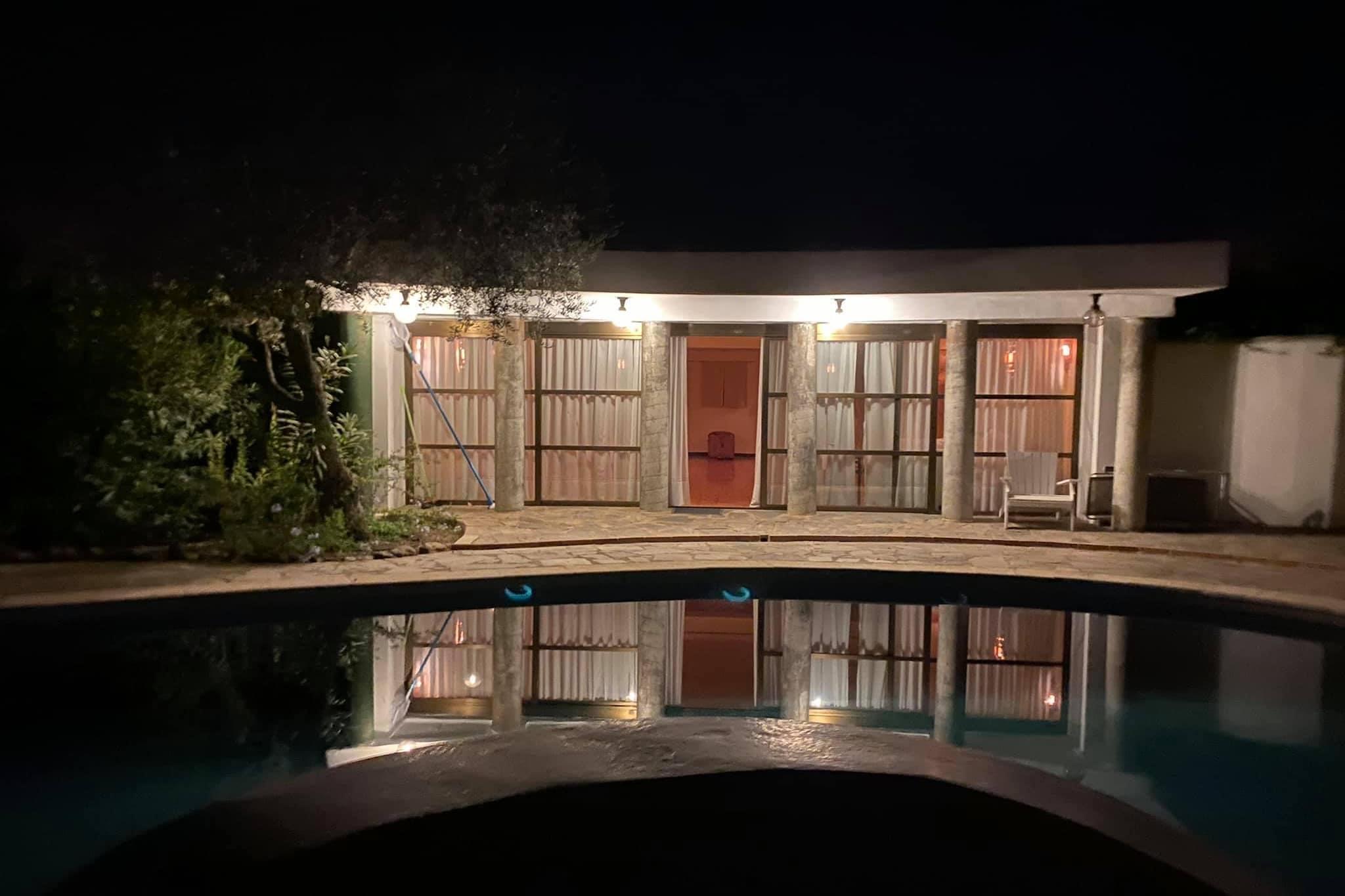 Stueetage: (Indgang , Køkken(kogeplade, brødrister, kaffemaskine, ovn, mikrobølgeovn, opvaskemaskine , køle-fryseskab, Saftpresser, Blender), stue / spisestue(Fjernsyn(fladskærm, Internationale TV-kanaler), spisebord, sofahjørne), soveværelse(enkeltseng(90 x 190 cm), enkeltseng(90 x 190 cm)), soveværelse(enkeltseng(90 x 190 cm), enkeltseng(90 x 190 cm)), soveværelse(enkeltseng(90 x 190 cm), enkeltseng(90 x 190 cm)), soveværelse(enkeltseng(90 x 190 cm)), badeværelse(badekar med bruser, bruser, håndvask, toilet), badeværelse(bruser, håndvask, toilet), varme, klimaanlæg) Sidebygning: (soveværelse(enkeltseng(90 x 190 cm), enkeltseng(90 x 190 cm)), badeværelse(bruser, håndvask, toilet), opholdsrum(Fjernsyn, sofahjørne)) pejs, kakkelovn, Netflix, badekar eller bruser, toilet, vaskemaskine, patio, terrasse, have, havemøbler, solstole, grill, parkering, liggestole, Parasol, swimmingpool(privat, udendørs), hængekøje, barneseng, strygebræt