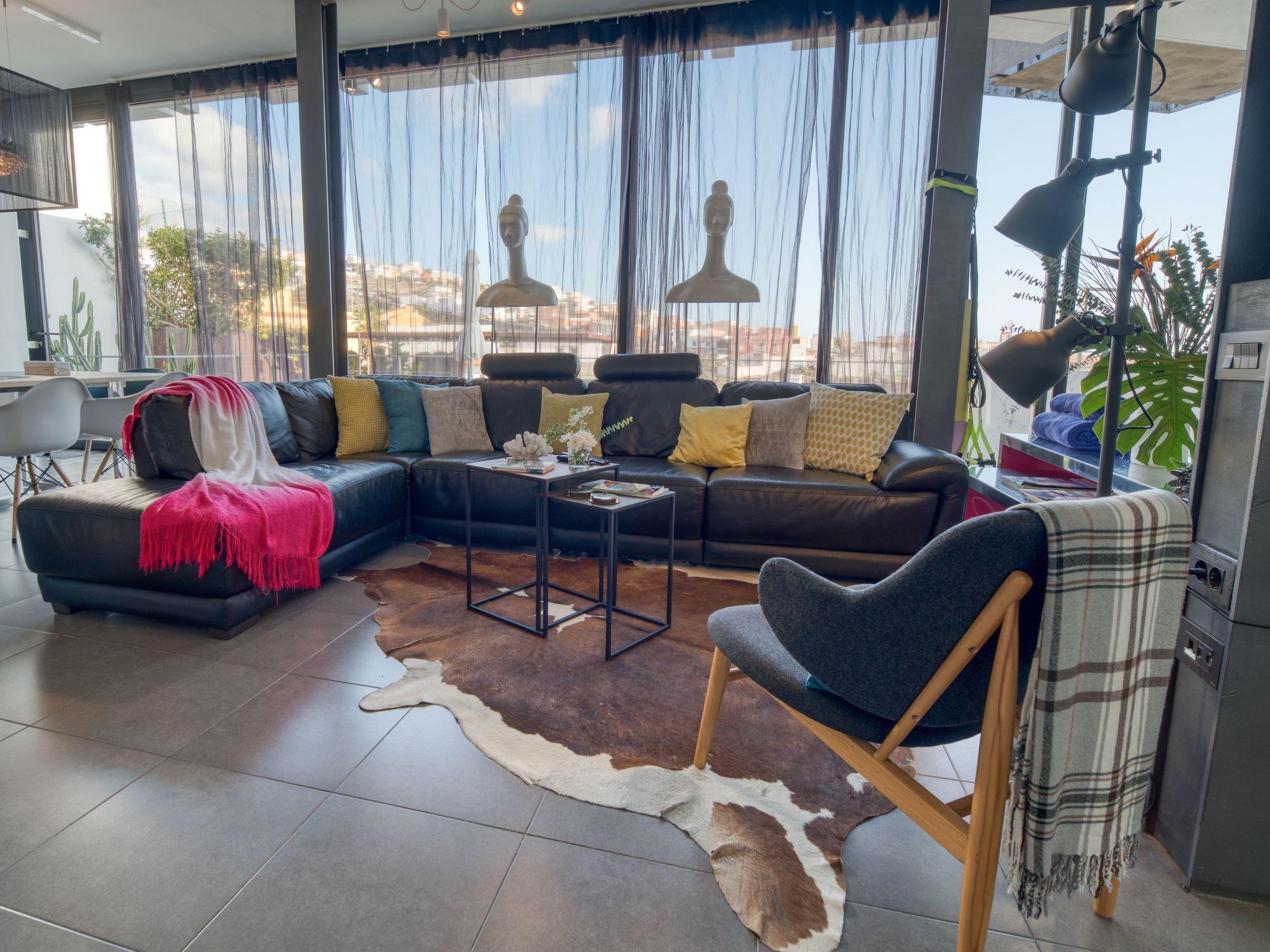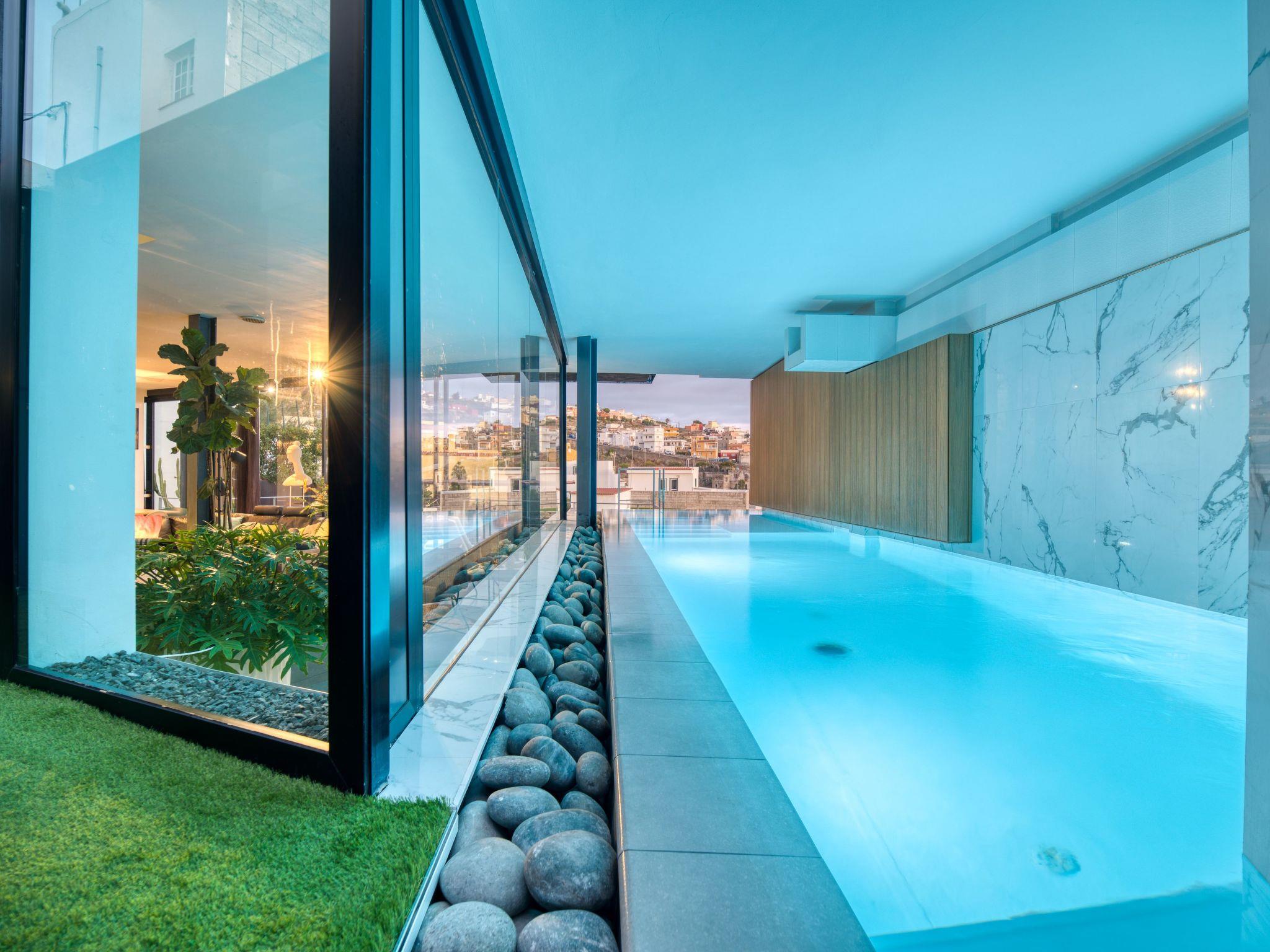 "HOUSE GALLERY 10" Discover this private holiday residence, located in the south of the island, away from the hustle and bustle, but at the same time well connected and close to the main beaches, golf course, services and supermarkets (10 minutes). Ideal for a luxury getaway; its cosy atmosphere, surrounded by design and good architecture, invites you to relax and rest. This unique property has 260 mts, 3 bedrooms, 3 bathrooms and can accommodate up to 6 people, with the possibility of adding an extra sofa bed on request. On the first floor: We are welcomed by a large hall. The master bedroom en suite, 2x2 bed (king size), fireplace, satellite TV, sofa bed, comfortable desk, safe, and outdoor balcony with a wonderful view of the ocean. The bathroom is equipped with: double shower, two sinks, jacuzzi, w.c., bidet, hairdryer, hair dryer. bidet, hairdryer, and welcome toiletries for personal hygiene. The second bedroom has 2 beds, which can be joined together to make a double bed. The bathroom is next to the bedroom and equipped with shower, bidet and w.c. Access to the ground floor is via a large staircase illuminated by a glass ceiling. Here we find Living - Kitchen - Dining room, rooms openly connected, fully equipped; oven, microwave, hob, dishwasher, kettle, toaster, various kitchen utensils, filter coffee machine and Nespresso. SODASTREAM. On this floor is the third bedroom with adjoining bathroom equipped with toilet, shower and bidet. In this open area you can appreciate through the huge windows, the wonderful views of the village and the Atlantic. The outside terrace is south facing and has a wonderful swimming pool heated all year round, barbecue, garden set, sunbeds and sun loungers to enjoy the sun and from where you can appreciate a beautiful and peaceful view of the village and the sea. - There is parking for 2 cars HOUSE GALLERY EXPERIENCE: We have massage service at home, private chef (highly recommended) where you can taste the Canarian cuisine, in our villa, and in a personalized way, you will enjoy a lunch or dinner with all the ingredients and a bottle of wine included. We also have at your disposal potho book service, baby sitters, yoga, personal training and more. Live the experience. Ask your host... Ask your host We will be attentive to your needs throughout your stay. HOUSE GALLERY 10, an idyllic place to enjoy an unforgettable holiday as a couple or with your family. We look forward to welcoming you.