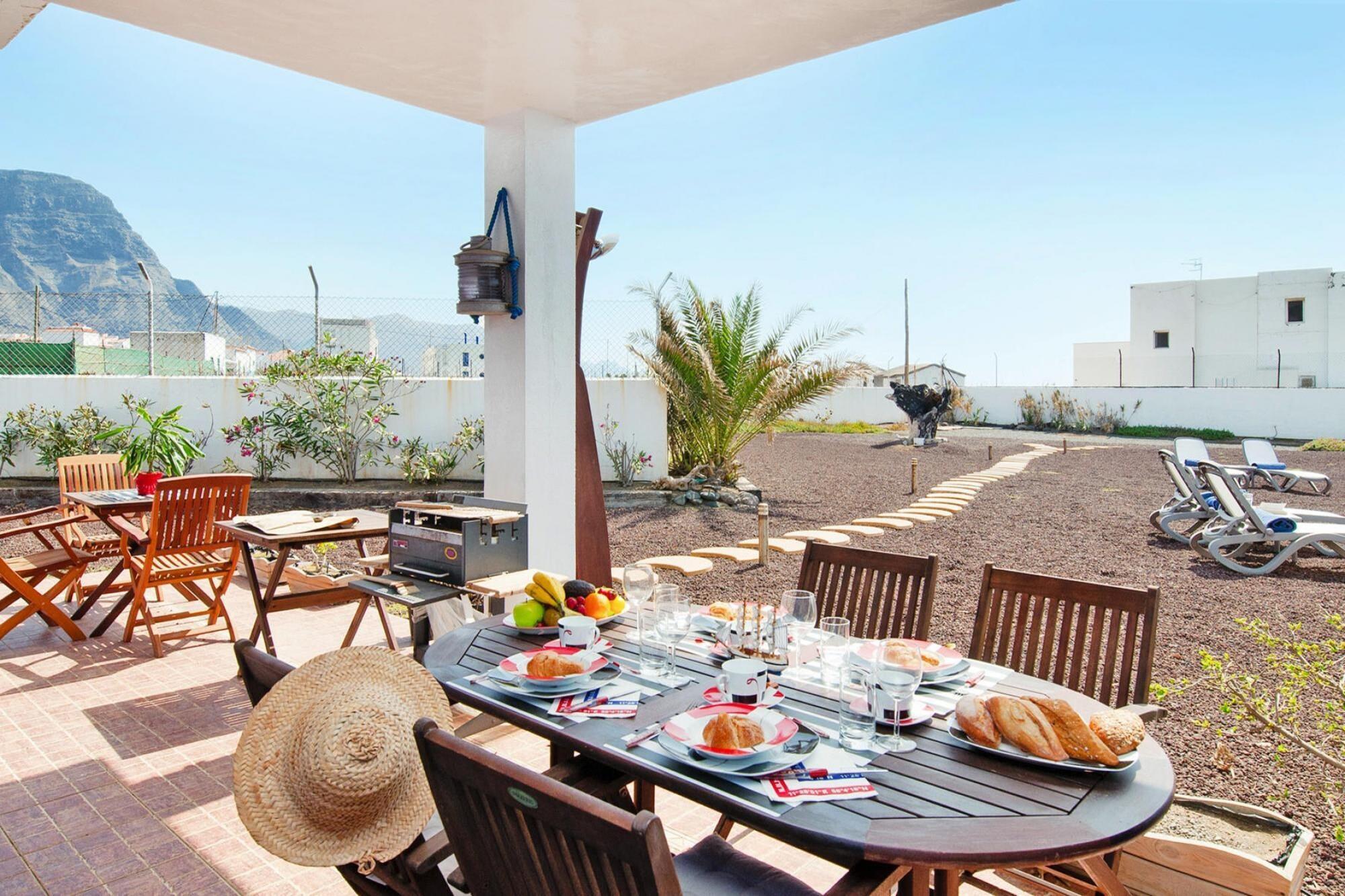 Sommerhus på første linje - med en vidunderlig udsigt over havet og bjergene. De vulkanske naturlige pools er lige uden for døren, og en svømmetur i det turkisblå vand er en helt speciel oplevelse. På den rummelige tagterrasse kan du solbade på en af liggestolene, se ud over vandet og nyde den lette havbrise. Børn har masser af plads at lege her og kan sprede sig vidunderligt. Din midlertidige bolig ligger i et roligt boligområde, så afslapning falder naturligt. Interiøret i feriehuset er behageligt og hyggeligt på samme tid - du vil helt sikkert føle dig hjemme! Dit feriehus ligger i Las Nieves, en malerisk fiskerby i den nordøstlige del af Gran Canaria. Der er kun 100 meters gang til havnen, hvorfra færgen til Tenerife starter. Oplev fremragende spisemuligheder ved at slentre langs Poets Avenue, hvor der er mange friske fiske- og skaldyrsrestauranter og kunsthåndværksbutikker, som du kan kigge på i ro og mag. Et perfekt sted at møde lokalbefolkningen og lære landet og dets folk at kende. Mobilitet: Ikke egnet til personer med begrænset mobilitet
