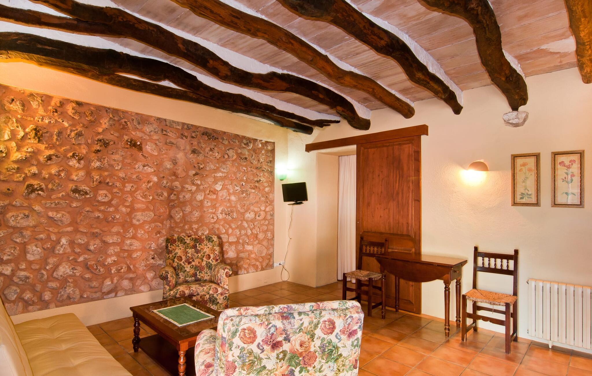 Den imponerende ejendom "Son Sureda" med sine 1.500.000 m² er blevet tilpasset feriegæster, unge og gamle efter 500 års landbrug, vindyrkning og husdyravl. Navnene på de elleve ferielejligheder, som er fordelt rundt om hovedhuset, borgmesterhuset og udhusene med et eller to dobbeltværelser, indikerer stadig deres tidligere anvendelse. På jeres ture rundt om de gamle mure vil I opdage mange gamle hestevogne og spændende landbrugsudstyr. På jeres egne små terrasser i stueetagen eller med udsigt kan I nyde jeres privatliv og få mulighed for at lære andre feriegæster at kende ved de mange borde og stole eller ved den fælles grill i den store gårdhave. I kan starte jeres Mallorca-morgen i den imponerende hvælving (de tidligere hestestalde) eller udenfor på det åbne område med en overdådig, ø-typisk morgenmad, som I kan bestille. To pools med liggestole og en udendørs bruser, et soppebassin, en legeplads med gynger, sandkasse, klatrestativ, fodboldbane og hønsegårde sørger for afslapning for enlige rejsende og par samt til en bondegårdsferie for familier. Vi er sikre på, at der er en lejlighed, der passer lige til jer. Måske er det “Es Rebost”, som tidligere var et af villaens depotrum. Her blev blandt andet opbevaret æg og mel og hængt de tørrede tomatsnore op. Ost plejede at modne, hvor badeværelset er i dag. jeres "Son Sureda" kongerige ville bestå af et soveområde med to 0,90 x 2 m senge, et badeværelse med bruser og en rustik stue/spisestue med komfortable lænestole og et lille spisebord. På dage, hvor I ønsker at blive på ejendommen hele dagen, kan I tilberede snacks, salater og småretter i minikøkkenet med køleskab, to keramiske kogeplader, mikroovn og kaffemaskine. Fra den møblerede sydvendte terrasse har I en fantastisk udsigt til den indre gårdhave og kan måske også holde øje med jeres små børn. Forkæl jer selv med en pause med en god bog i ny og næ. Og der er en række værdifulde destinationer: byliv eller havbrise? Fra jeres villa kan I nemt udforske de forskellige sider af øen. Godt 15 km væk venter strandene på soltilbedere, surfere og familier. Den rummelige Son Serra de Marina og den næsten to kilometer lange sandstrand mod Colònia de Sant Pere tilbyder plads nok til at sprede mere end blot et håndklæde. Hvis I vil nyde de blå nuancer fra oven, så tag til Betlem og klatre de 5 km til den lille Ermita. Naturligvis er mere krævende ruter til vandrestøvler og mountainbikes også mulige. Ma-3322, som er delvist hørbar afhængig af vindretningen, tager jer til byen Manacor for en spontan tur til den historiske bymidte eller for at shoppe på vitaminmarkedet. Hvis I vil besøge katedralen i Palma, skal I blot efterlade jeres bil på togstationen og tage bussen eller toget. Sommerhus på landet med masser af natur til villagæsterne. Føl jer hjemme på agroturismoen "Son Sureda", der ligger mellem fåregræsgange og vinmarker, som har elleve lejligheder og studiolejligheder med egen forplejning, en stor U-formet gårdhave og flere pools. Manacor, en af øens metropoler, ligger kun 9 km væk. Det er ideelt til shopping på det daglige frugt- og grøntmarked, til udflugter og til en afslappet middag på en restaurant. Og på Badia d'Alcúdia, i retning mod Son Serra de Marina og Colònia de Sant Pere, kan I stadig finde et par strande, der endnu ikke er overfyldte.