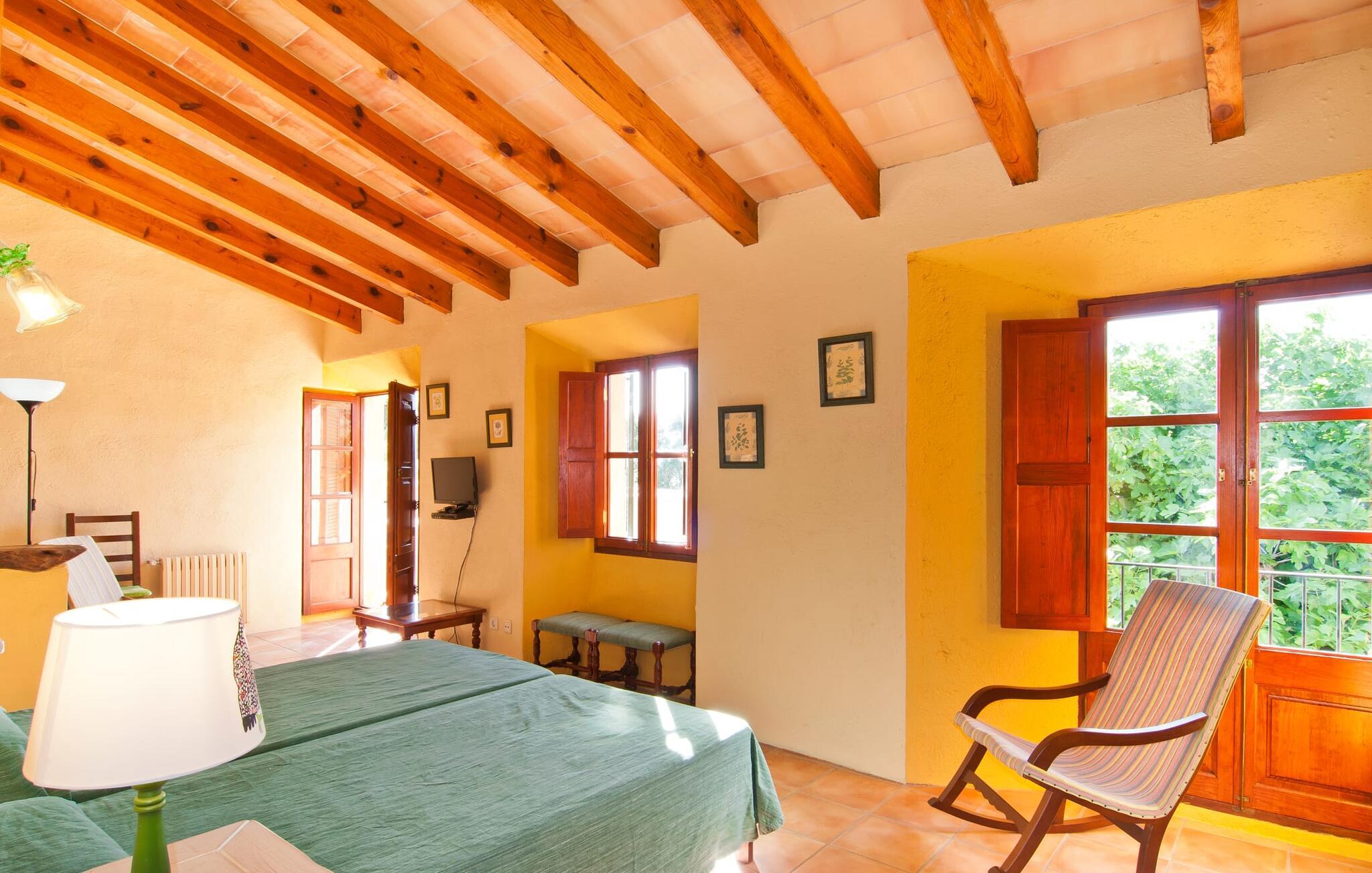 Den imponerende ejendom "Son Sureda" med sine 1.500.000 m² er blevet tilpasset feriegæster, unge og gamle efter 500 års landbrug, vindyrkning og husdyravl. Navnene på de elleve ferielejligheder, som er fordelt rundt om hovedhuset, borgmesterhuset og udhusene med et eller to dobbeltværelser, indikerer stadig deres tidligere anvendelse. På jeres ture rundt om de gamle mure vil I opdage mange gamle hestevogne og spændende landbrugsudstyr. På jeres egne små terrasser i stueetagen eller med udsigt kan I nyde jeres privatliv og få mulighed for at lære andre feriegæster at kende ved de mange borde og stole eller ved den fælles grill i den store indre gårdhave. I kan starte jeres Mallorca-morgen i den imponerende hvælving (de tidligere hestestalde) eller udenfor på det åbne område med en overdådig, ø-typisk morgenmad, som I kan bestille. To pools med liggestole og udendørs bruser, et soppebassin, en legeplads med gynger, sandkasse, klatrestativ, fodboldbane og hønsegårde sikrer afslapning for enlige rejsende og par samt for familier på bondegårdsferie. Vi er sikre på, at der er en lejlighed, der passer lige til jer. Måske er det “Es Secadero”, der tidligere har fungeret som villaens depotrum og som tørrerum for langtidsholdbare vintertomater. jeres "Son Sureda" kongerige ville bestå af et soveområde med to 0,90 x 2 m senge, et badeværelse med bruser og en kombineret stue/spisestue med typiske mallorcanske gyngestole og et lille spisebord. På dage, hvor I ønsker at blive på ejendommen hele dagen, kan I tilberede snacks, salater og småretter i minikøkkenet med køleskab, to keramiske kogeplader, mikroovn og kaffemaskine. I har en fantastisk udsigt fra balkonen (med bord, stole og parasol). Forkæl jer selv med en pause med en god bog i ny og næ. Og der er en række værdifulde destinationer: byliv eller havbrise? Fra jeres villa kan I nemt udforske de forskellige sider af øen. Godt 15 km væk venter strandene på soltilbedere, surfere og familier. Den rummelige Son Serra de Marina og den næsten to kilometer lange sandstrand mod Colònia de Sant Pere tilbyder plads nok til at sprede mere end blot et håndklæde. Hvis I vil nyde de blå nuancer fra oven, så tag til Betlem og klatre de 5 km til den lille Ermita. Naturligvis er mere krævende ruter til vandrestøvler og mountainbikes også mulige. Ma-3322, som er delvist hørbar afhængig af vindretningen, tager jer til byen Manacor for en spontan tur til den historiske bymidte eller for at shoppe på vitaminmarkedet. Hvis I vil besøge katedralen i Palma, skal I blot efterlade jeres bil på togstationen og tage bussen eller toget. Sommerhus på landet med masser af natur til villagæsterne. Føl jer hjemme på agroturismoen "Son Sureda", der ligger mellem fåregræsgange og vinmarker, som har elleve lejligheder og studiolejligheder med egen forplejning, en stor U-formet gårdhave og flere pools. Manacor, en af øens metropoler, ligger kun 9 km væk. Det er ideelt til shopping på det daglige frugt- og grøntmarked, til udflugter og til en afslappet middag på en restaurant. Og på Badia d'Alcúdia, i retning mod Son Serra de Marina og Colònia de Sant Pere, kan I stadig finde et par strande, der endnu ikke er overfyldte.