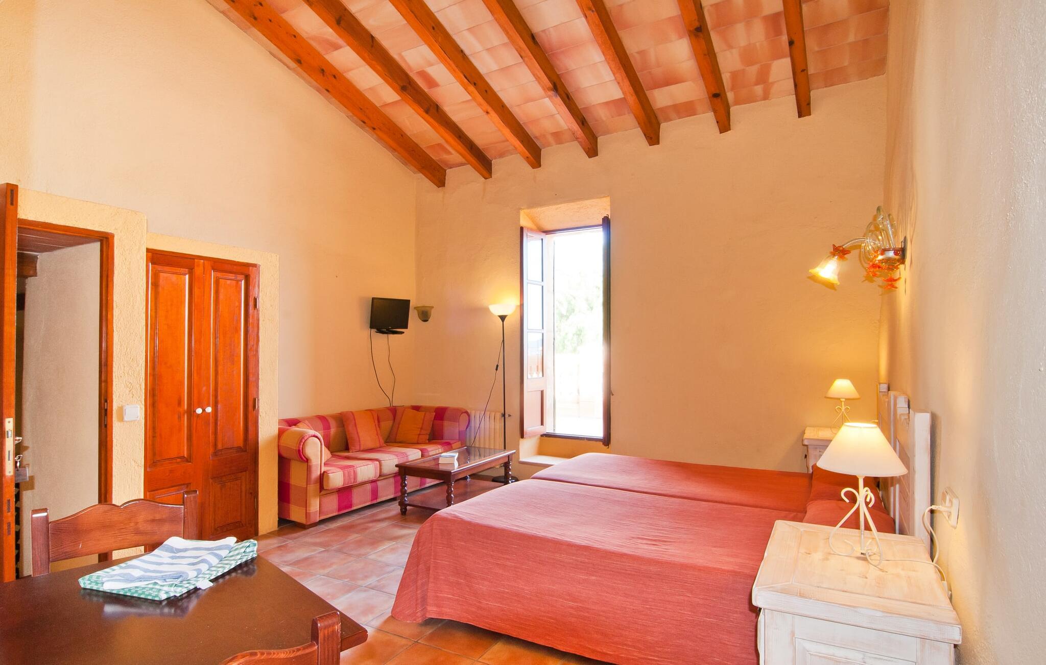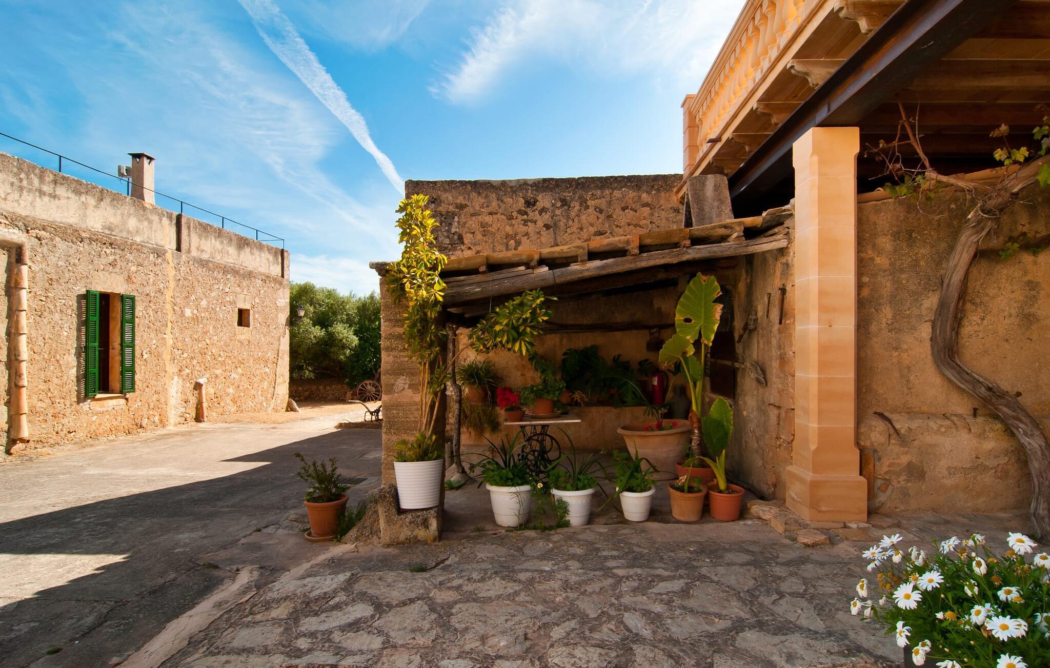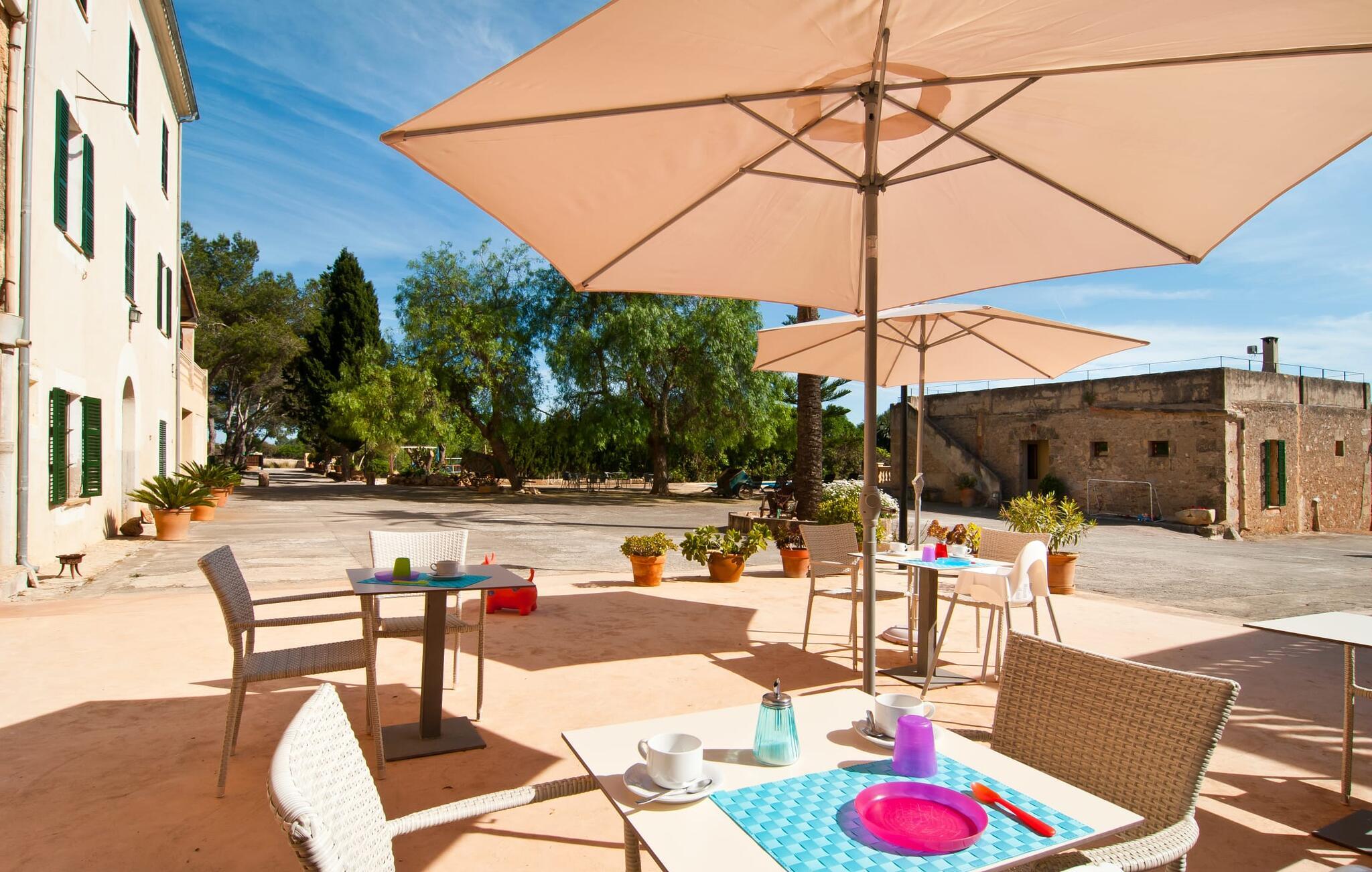 Den imponerende ejendom "Son Sureda" med sine 1.500.000 m² er blevet tilpasset feriegæster, unge og gamle efter 500 års landbrug, vindyrkning og husdyravl. Navnene på de elleve ferielejligheder, som er fordelt rundt om hovedhuset, borgmesterhuset og udhusene med et eller to dobbeltværelser, indikerer stadig deres tidligere anvendelse. På jeres ture rundt om de gamle mure vil I opdage mange gamle hestevogne og spændende landbrugsudstyr. På jeres egne små terrasser i stueetagen eller med udsigt kan I nyde jeres privatliv og få mulighed for at lære andre feriegæster at kende ved de mange borde og stole eller ved den fælles grill i den store indre gårdhave. I kan starte jeres Mallorca-morgen i den imponerende hvælving (de tidligere hestestalde) eller udenfor på det åbne område med en overdådig, ø-typisk morgenmad, som I kan bestille. To pools med liggestole og udendørs bruser, et soppebassin, en legeplads med gynger, sandkasse, klatrestativ, fodboldbane og hønsegårde sikrer afslapning for enlige rejsende og par samt for familier på bondegårdsferie. Vi er sikre på, at der er en lejlighed, der passer lige til jer. Måske er det "Sa Tabaquera", som før var et tørrerum for tobaksblade. Der er kun én tobaksplante tilbage i Son Sureda – måske I kan lede efter den? jeres "Son Sureda"-rige ville bestå af et soveområde med to 0,9 x 2 m senge, direkte adgang til altanen og en sofa samt et praktisk tekøkken. På dage, hvor I ønsker at blive på ejendommen hele dagen, kan I tilberede snacks, salater og småretter i minikøkkenet med køleskab, to keramiske kogeplader, mikroovn og kaffemaskine. I har en fantastisk udsigt fra balkonen (med bord, stole og parasol). Forkæl jer selv med en pause med en god bog i ny og næ. Og der er en række værdifulde destinationer: byliv eller havbrise? Fra jeres villa kan I nemt udforske de forskellige sider af øen. Godt 15 km væk venter strandene på soltilbedere, surfere og familier. Den rummelige Son Serra de Marina og den næsten to kilometer lange sandstrand mod Colònia de Sant Pere tilbyder plads nok til at sprede mere end blot et håndklæde. Hvis I vil nyde de blå nuancer fra oven, så tag til Betlem og klatre de 5 km til den lille Ermita. Naturligvis er mere krævende ruter til vandrestøvler og mountainbikes også mulige. Ma-3322, som er delvist hørbar afhængig af vindretningen, tager jer til byen Manacor for en spontan tur til den historiske bymidte eller for at shoppe på vitaminmarkedet. Hvis I vil besøge katedralen i Palma, skal I blot efterlade jeres bil på togstationen og tage bussen eller toget. Sommerhus på landet med masser af natur til villagæsterne. Føl jer hjemme på agroturismoen "Son Sureda", der ligger mellem fåregræsgange og vinmarker, som har elleve lejligheder og studiolejligheder med egen forplejning, en stor U-formet gårdhave og flere pools. Manacor, en af øens metropoler, ligger kun 9 km væk. Det er ideelt til shopping på det daglige frugt- og grøntmarked, til udflugter og til en afslappet middag på en restaurant. Og på Badia d'Alcúdia, i retning mod Son Serra de Marina og Colònia de Sant Pere, kan I stadig finde et par strande, der endnu ikke er overfyldte.