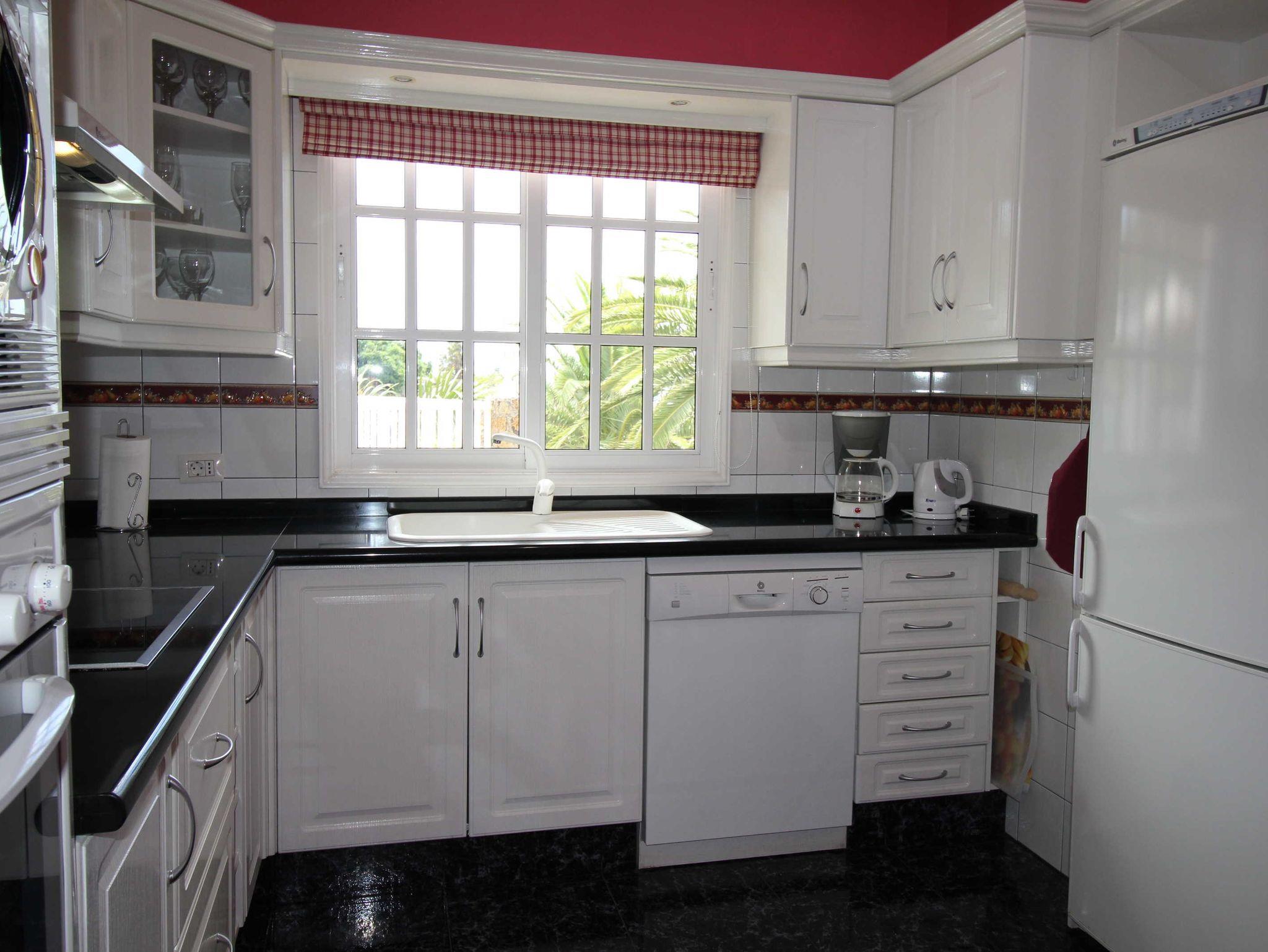 • separate Küche mit Esstisch + Stühlen, Ceran (4 Platten), Backofen, Dunstabzug, Mikrowelle, elekt. Kaffeemaschine, Cafetera, Toaster, Spülmaschine, Kühl/Gefrierkombination