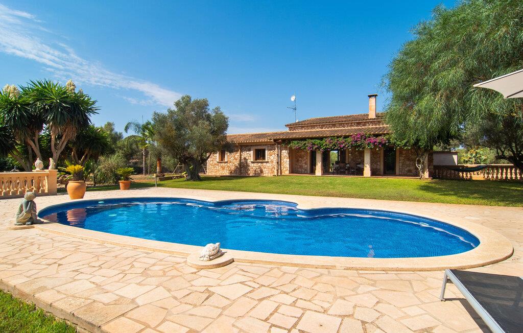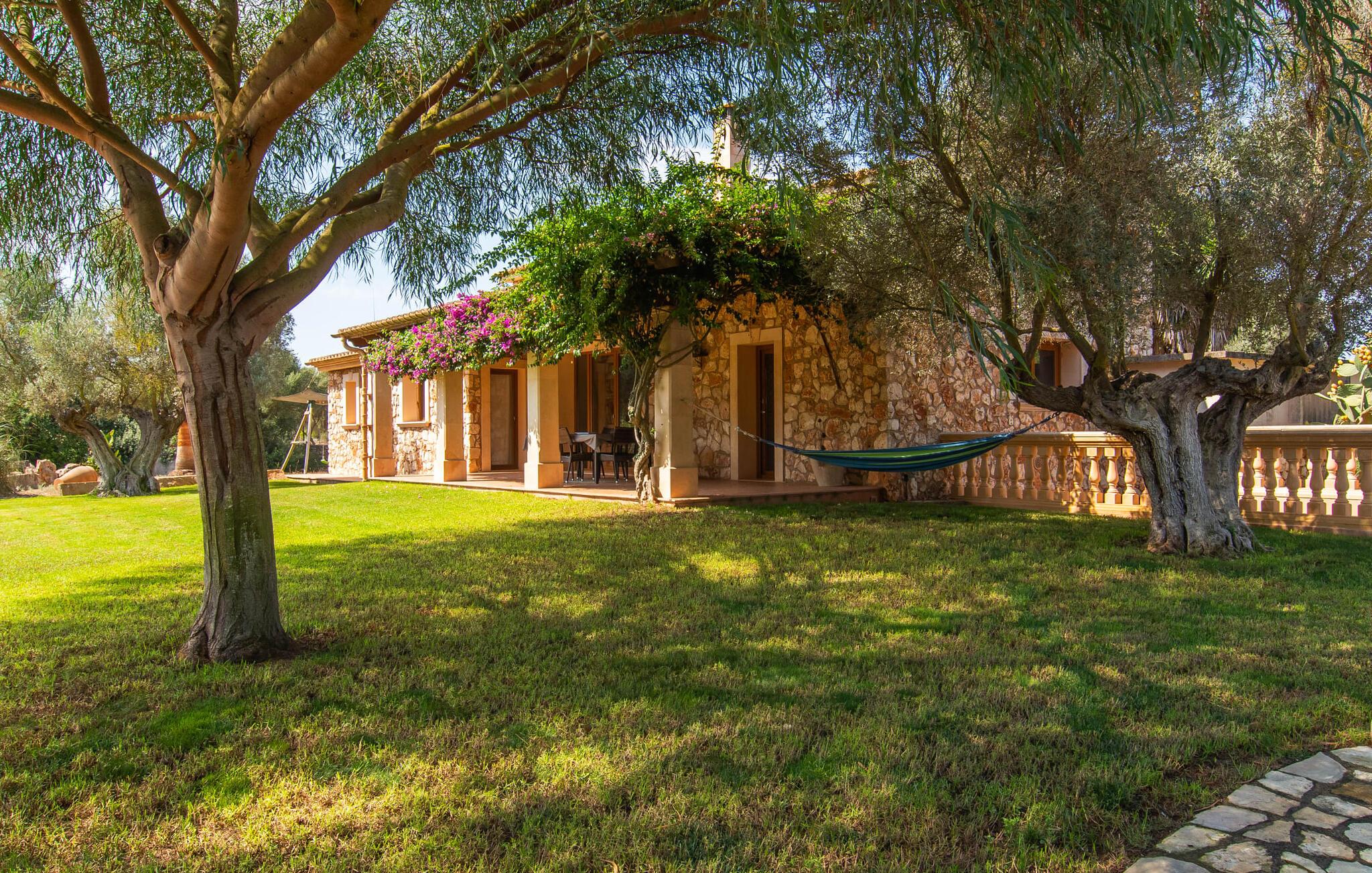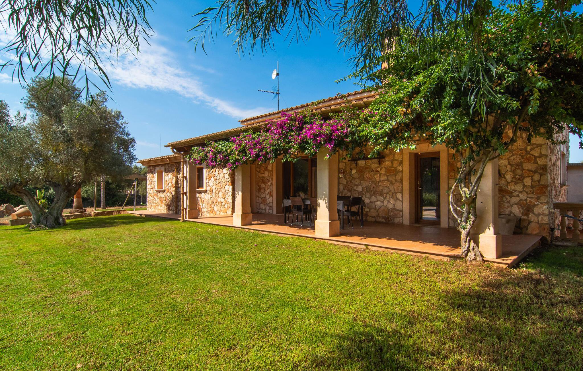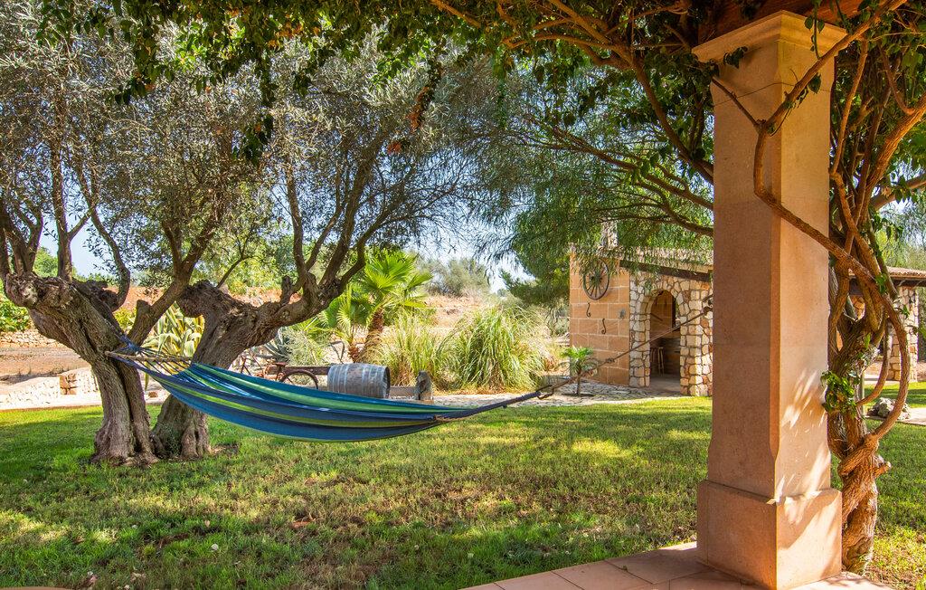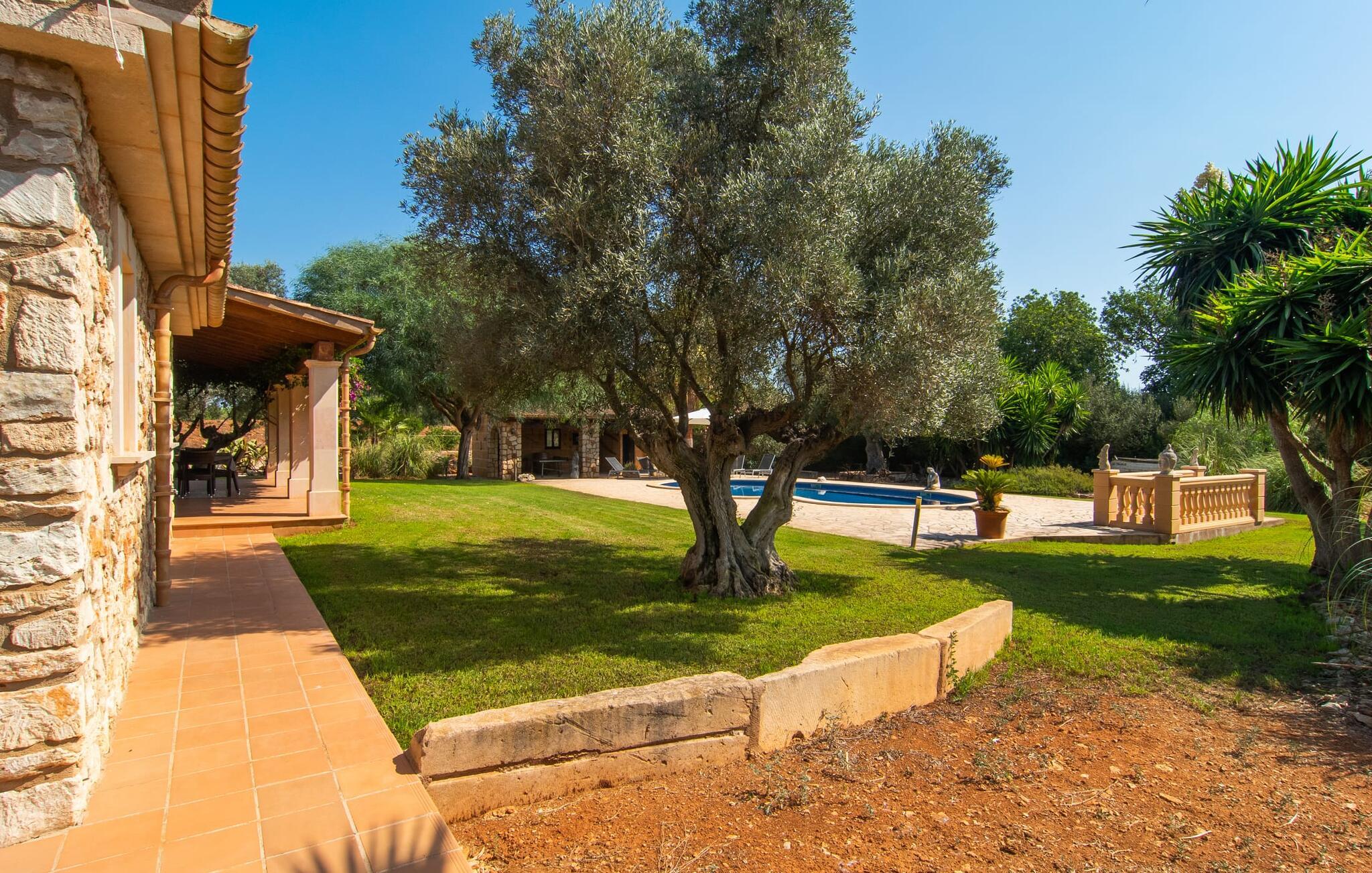 Er I Mallorca-fan og leder efter fred og ro? Eller vil I være det? Under alle omstændigheder, læs videre – det vil være det værd. Villa "Ailen" tilbyder et oase-lignende sted, hvor I kan nyde uforstyrret komfort og afslapning uden at skulle give afkald på forbindelsen til øens infrastruktur. Ejendommen, spækket med mandel- og oliventræer, ligger i landlige omgivelser, omgivet af marker og store åbne vidder. I vil ikke kunne vente med at tage plads i den smukke have, prydet af en smuk grøn græsplæne, hvor I kan sidde, læne jer tilbage eller se børnene lege. Den store pool i sin oprindelige form er flisebelagt med smukke, dybblå mosaikker og inviterer jer til at tage en lang svømmetur på varme dage. Den er over 11 m lang og varierer i dybden fra behagelige 1,2 m til 1,7 m En halvcirkelformet trappe fører jer nemt til poolen, hvor der også er et fantastisk spabad. På den omkringliggende terrasse, som er udstyret med liggestole og parasoller, vil enhver soltilbeder finde et sted efter deres smag. De omkringliggende træer skaber en vidunderlig idyllisk og malerisk atmosfære, hvor I nemt kan slappe af og give slip. Ønsker I en overdækket siddeplads ved et bord, finder I den perfekte plads lige ved siden af huset. Sid foran naturstensfacaden med elegante fliser under fødderne og et synligt bjælkeloft ovenover - I vil opdage, at dette er et fremragende sted til måltider og mere. Der er plads nok til alle ved spisebordet. En anden overdækket plads nær poolen danner grillpladsen - perfekt til at mødes på en lun aften og smide noget på grillen. Rent praktisk har udendørsarealet også et lille toilet. En behagelig lys atmosfære præger villaens indre. Naturfarvede lofter, vægge og gulve, suppleret med nøje udvalgte møbler, skaber en behagelig, harmonisk atmosfære. Det store, moderne køkken med sine magentafarvede bordplader udgør husets hjerte. Det er fuldt udstyret, så I kan få mest muligt ud af alle fordelene ved selvforplejning. Både en amerikansk og en italiensk kaffemaskine sikrer, at I ikke behøver at gå uden jeres yndlings varme drik under jeres morgenmorgenmad på terrassen. Det runde bord i køkkenet er også et hyggeligt sted at spise sammen indendørs. Et særligt kendetegn er det originale vindue til stuen, som også har en attraktiv spiseplads og et hyggeligt sofaområde til omfattende afslapningsstunder. Det store fladskærms-tv med satellitforbindelse opfylder alle medieunderholdningsbehov, mens pejsen skaber en hyggelig atmosfære på kølige aftener. Et soveværelse i moderne design med eget badeværelse og walk-in-closet giver plads nok; De to andre soveværelser har en munter, rustik atmosfære. De to badeværelser er udstyret i moderne stil og tilbyder plads nok til alle, der rejser med jer. Den elegante villa "Ailen" er beliggende i en vidunderlig rolig beliggenhed i den sydøstlige del af øen, cirka 8 km nordvest for den lille mallorcanske by Felanitx. Det er derfor nemt at nå til daglige indkøb eller caféer. Manacor, Mallorcas næststørste kommune, ligger kun 20 km væk. Strandene i Cala Gran, Cala Sa Nau og Cala d'Or ligger hver kun omkring 22 km væk.