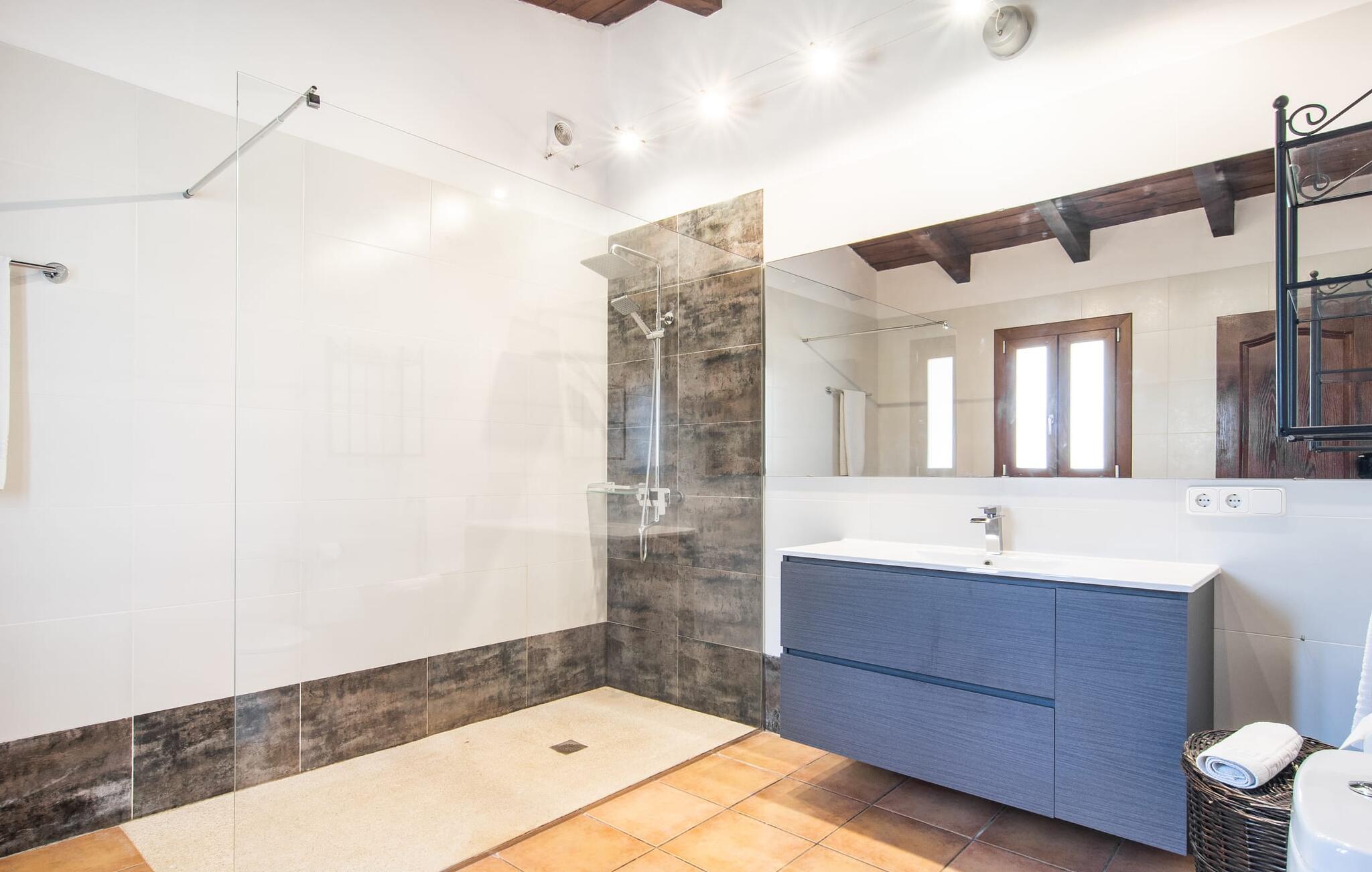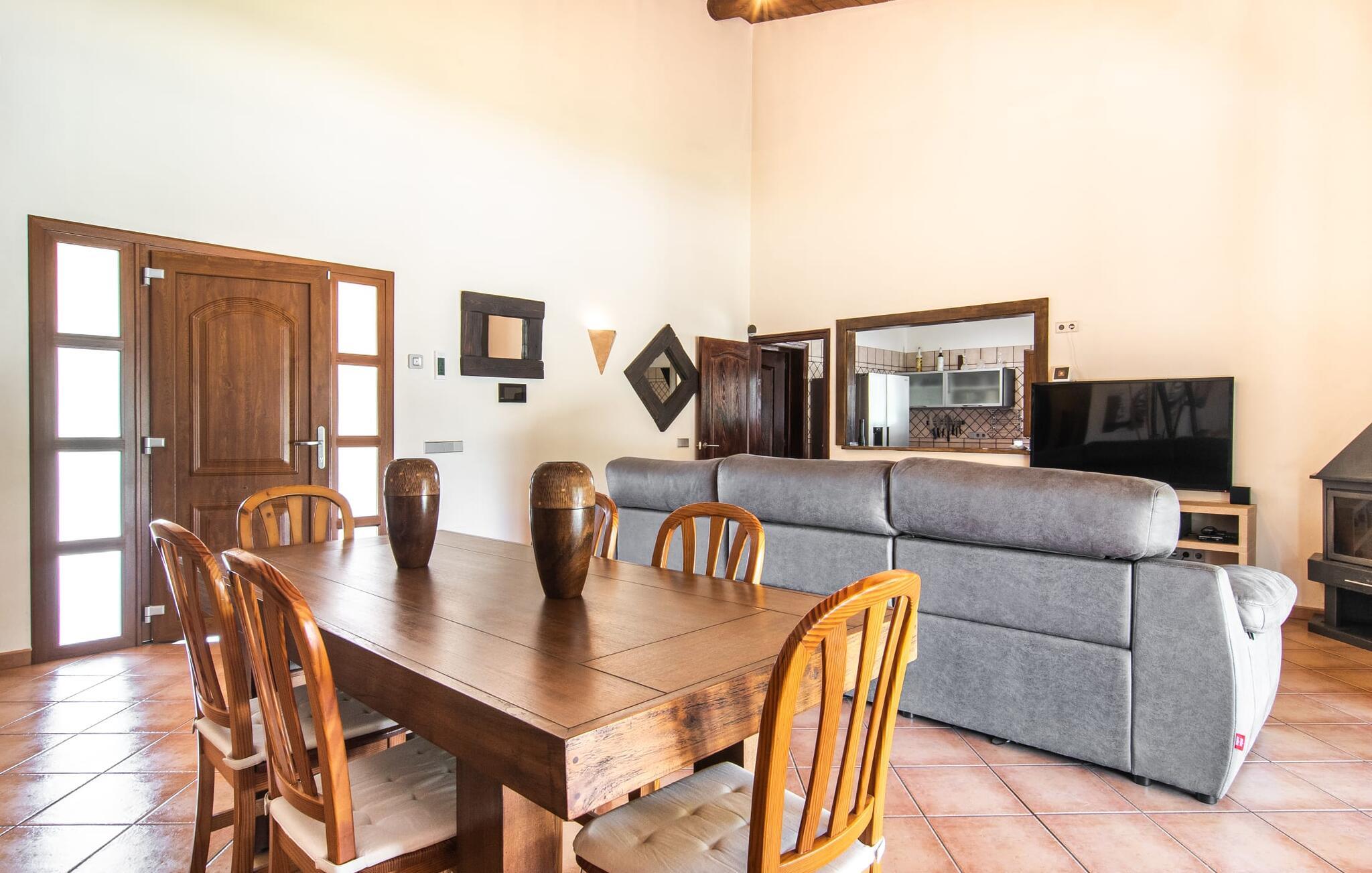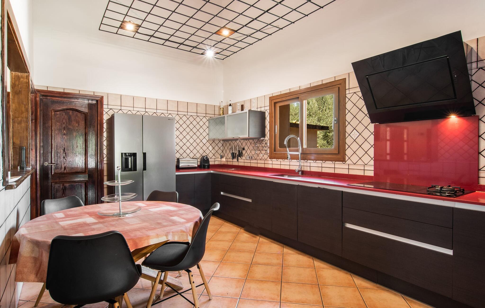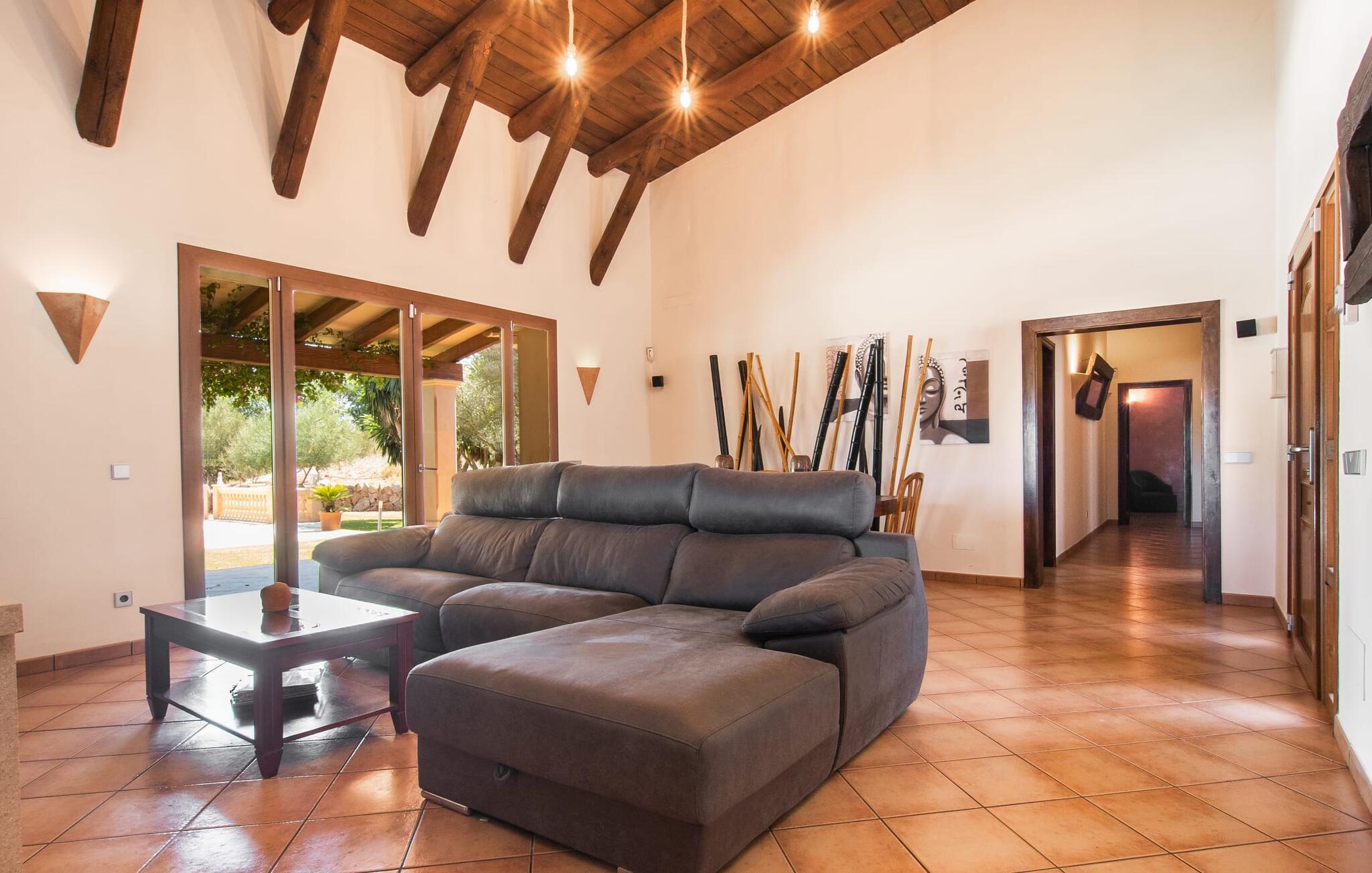 Er I Mallorca-fan og leder efter fred og ro? Eller vil I være det? Under alle omstændigheder, læs videre – det vil være det værd. Villa "Ailen" tilbyder et oase-lignende sted, hvor I kan nyde uforstyrret komfort og afslapning uden at skulle give afkald på forbindelsen til øens infrastruktur. Ejendommen, spækket med mandel- og oliventræer, ligger i landlige omgivelser, omgivet af marker og store åbne vidder. I vil ikke kunne vente med at tage plads i den smukke have, prydet af en smuk grøn græsplæne, hvor I kan sidde, læne jer tilbage eller se børnene lege. Den store pool i sin oprindelige form er flisebelagt med smukke, dybblå mosaikker og inviterer jer til at tage en lang svømmetur på varme dage. Den er over 11 m lang og varierer i dybden fra behagelige 1,2 m til 1,7 m En halvcirkelformet trappe fører jer nemt til poolen, hvor der også er et fantastisk spabad. På den omkringliggende terrasse, som er udstyret med liggestole og parasoller, vil enhver soltilbeder finde et sted efter deres smag. De omkringliggende træer skaber en vidunderlig idyllisk og malerisk atmosfære, hvor I nemt kan slappe af og give slip. Ønsker I en overdækket siddeplads ved et bord, finder I den perfekte plads lige ved siden af huset. Sid foran naturstensfacaden med elegante fliser under fødderne og et synligt bjælkeloft ovenover - I vil opdage, at dette er et fremragende sted til måltider og mere. Der er plads nok til alle ved spisebordet. En anden overdækket plads nær poolen danner grillpladsen - perfekt til at mødes på en lun aften og smide noget på grillen. Rent praktisk har udendørsarealet også et lille toilet. En behagelig lys atmosfære præger villaens indre. Naturfarvede lofter, vægge og gulve, suppleret med nøje udvalgte møbler, skaber en behagelig, harmonisk atmosfære. Det store, moderne køkken med sine magentafarvede bordplader udgør husets hjerte. Det er fuldt udstyret, så I kan få mest muligt ud af alle fordelene ved selvforplejning. Både en amerikansk og en italiensk kaffemaskine sikrer, at I ikke behøver at gå uden jeres yndlings varme drik under jeres morgenmorgenmad på terrassen. Det runde bord i køkkenet er også et hyggeligt sted at spise sammen indendørs. Et særligt kendetegn er det originale vindue til stuen, som også har en attraktiv spiseplads og et hyggeligt sofaområde til omfattende afslapningsstunder. Det store fladskærms-tv med satellitforbindelse opfylder alle medieunderholdningsbehov, mens pejsen skaber en hyggelig atmosfære på kølige aftener. Et soveværelse i moderne design med eget badeværelse og walk-in-closet giver plads nok; De to andre soveværelser har en munter, rustik atmosfære. De to badeværelser er udstyret i moderne stil og tilbyder plads nok til alle, der rejser med jer. Den elegante villa "Ailen" er beliggende i en vidunderlig rolig beliggenhed i den sydøstlige del af øen, cirka 8 km nordvest for den lille mallorcanske by Felanitx. Det er derfor nemt at nå til daglige indkøb eller caféer. Manacor, Mallorcas næststørste kommune, ligger kun 20 km væk. Strandene i Cala Gran, Cala Sa Nau og Cala d'Or ligger hver kun omkring 22 km væk.