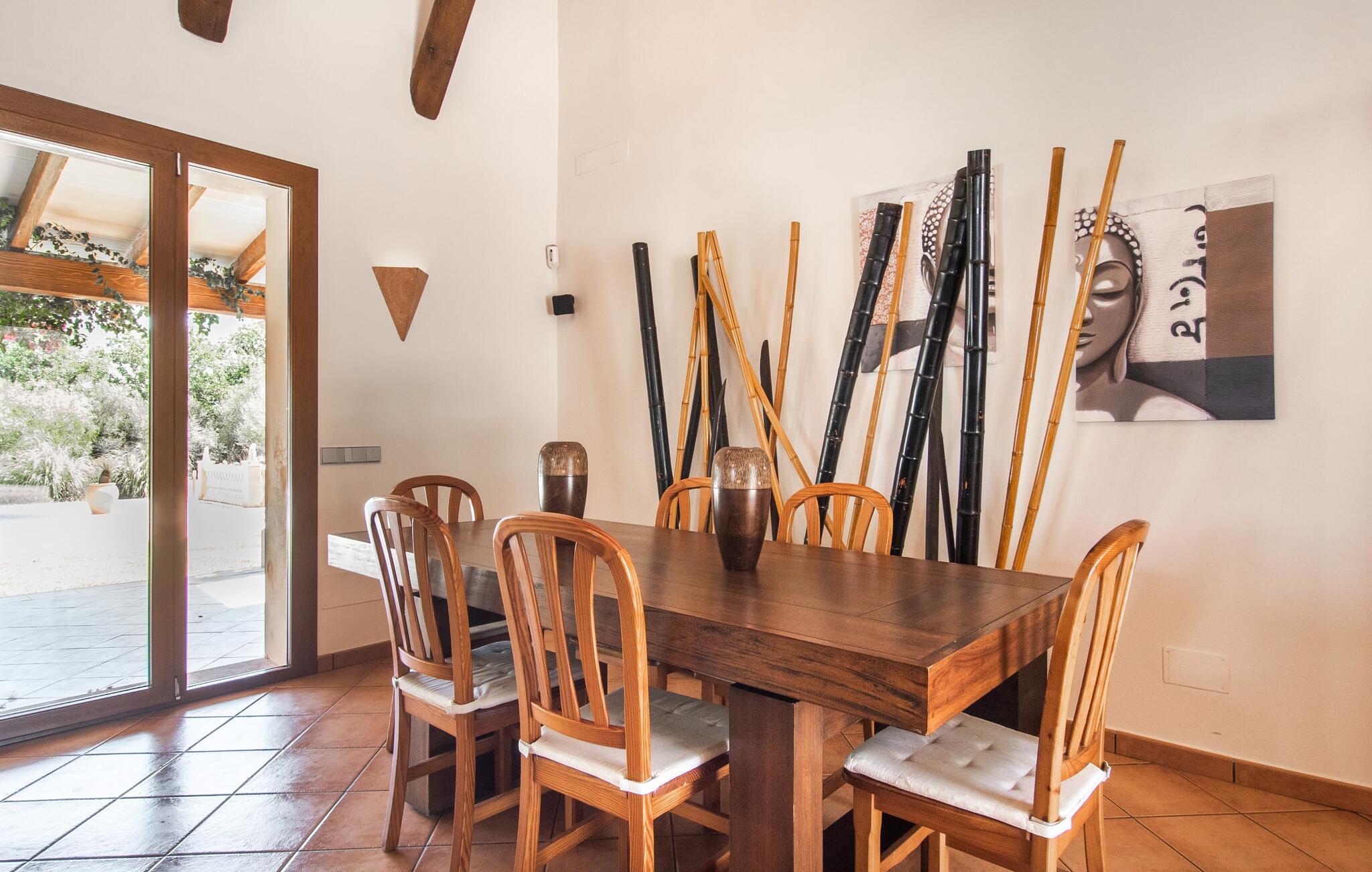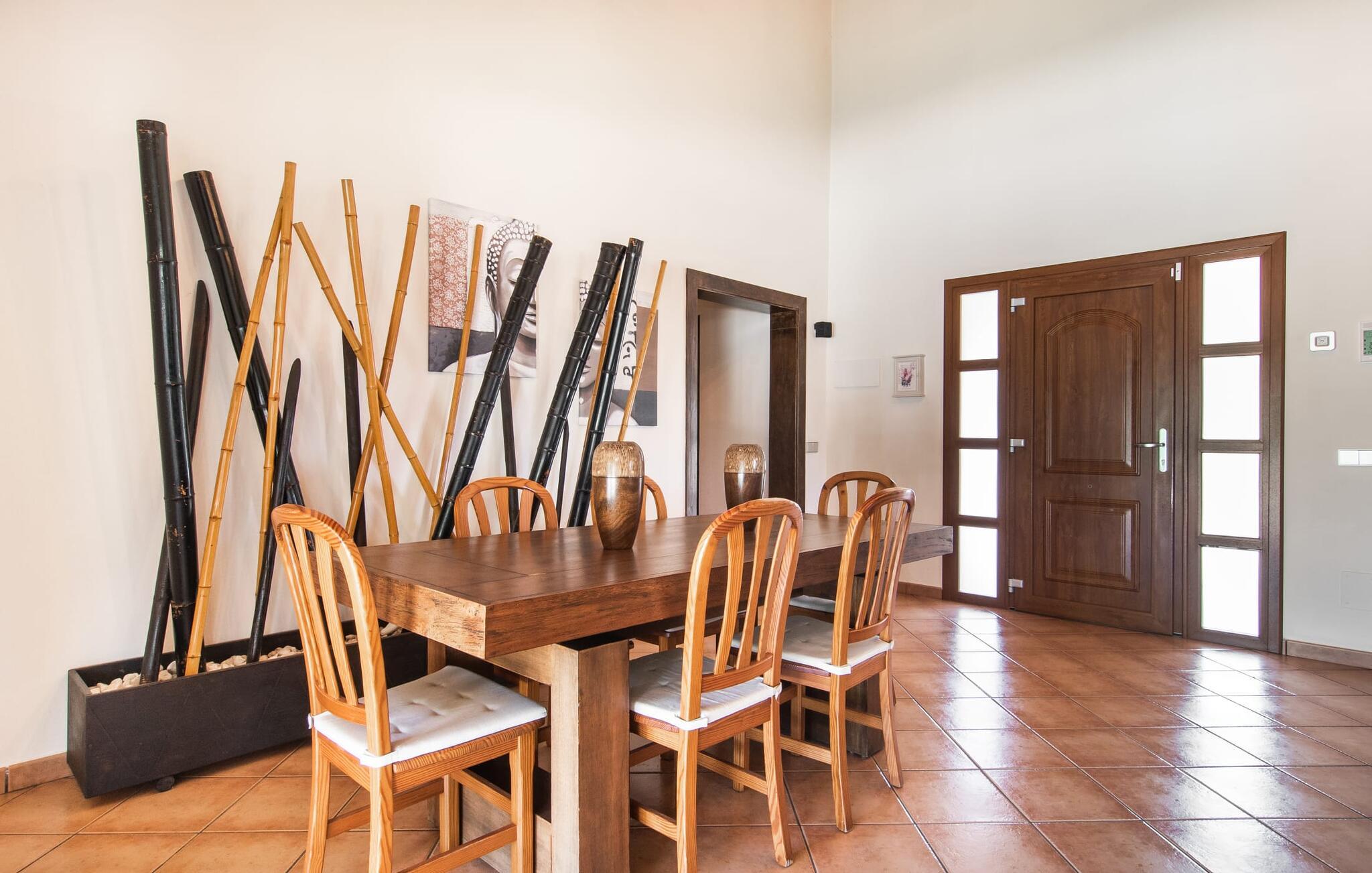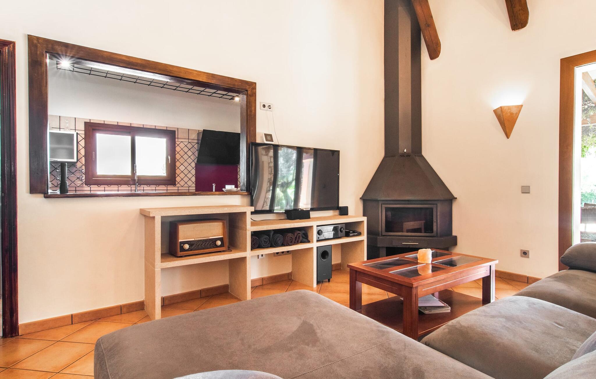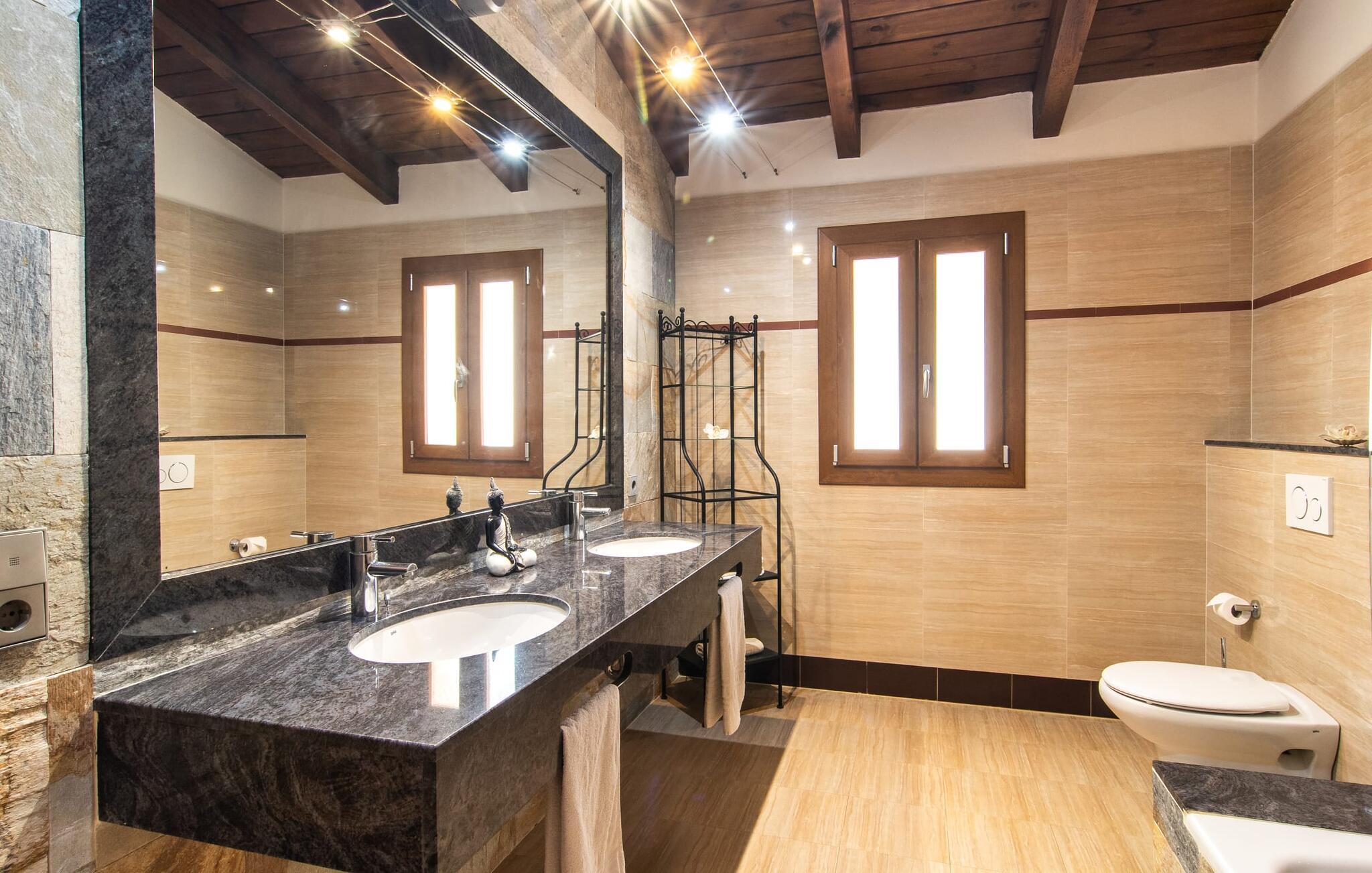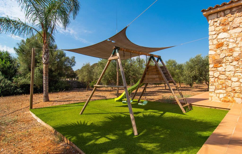 Er I Mallorca-fan og leder efter fred og ro? Eller vil I være det? Under alle omstændigheder, læs videre – det vil være det værd. Villa "Ailen" tilbyder et oase-lignende sted, hvor I kan nyde uforstyrret komfort og afslapning uden at skulle give afkald på forbindelsen til øens infrastruktur. Ejendommen, spækket med mandel- og oliventræer, ligger i landlige omgivelser, omgivet af marker og store åbne vidder. I vil ikke kunne vente med at tage plads i den smukke have, prydet af en smuk grøn græsplæne, hvor I kan sidde, læne jer tilbage eller se børnene lege. Den store pool i sin oprindelige form er flisebelagt med smukke, dybblå mosaikker og inviterer jer til at tage en lang svømmetur på varme dage. Den er over 11 m lang og varierer i dybden fra behagelige 1,2 m til 1,7 m En halvcirkelformet trappe fører jer nemt til poolen, hvor der også er et fantastisk spabad. På den omkringliggende terrasse, som er udstyret med liggestole og parasoller, vil enhver soltilbeder finde et sted efter deres smag. De omkringliggende træer skaber en vidunderlig idyllisk og malerisk atmosfære, hvor I nemt kan slappe af og give slip. Ønsker I en overdækket siddeplads ved et bord, finder I den perfekte plads lige ved siden af huset. Sid foran naturstensfacaden med elegante fliser under fødderne og et synligt bjælkeloft ovenover - I vil opdage, at dette er et fremragende sted til måltider og mere. Der er plads nok til alle ved spisebordet. En anden overdækket plads nær poolen danner grillpladsen - perfekt til at mødes på en lun aften og smide noget på grillen. Rent praktisk har udendørsarealet også et lille toilet. En behagelig lys atmosfære præger villaens indre. Naturfarvede lofter, vægge og gulve, suppleret med nøje udvalgte møbler, skaber en behagelig, harmonisk atmosfære. Det store, moderne køkken med sine magentafarvede bordplader udgør husets hjerte. Det er fuldt udstyret, så I kan få mest muligt ud af alle fordelene ved selvforplejning. Både en amerikansk og en italiensk kaffemaskine sikrer, at I ikke behøver at gå uden jeres yndlings varme drik under jeres morgenmorgenmad på terrassen. Det runde bord i køkkenet er også et hyggeligt sted at spise sammen indendørs. Et særligt kendetegn er det originale vindue til stuen, som også har en attraktiv spiseplads og et hyggeligt sofaområde til omfattende afslapningsstunder. Det store fladskærms-tv med satellitforbindelse opfylder alle medieunderholdningsbehov, mens pejsen skaber en hyggelig atmosfære på kølige aftener. Et soveværelse i moderne design med eget badeværelse og walk-in-closet giver plads nok; De to andre soveværelser har en munter, rustik atmosfære. De to badeværelser er udstyret i moderne stil og tilbyder plads nok til alle, der rejser med jer. Den elegante villa "Ailen" er beliggende i en vidunderlig rolig beliggenhed i den sydøstlige del af øen, cirka 8 km nordvest for den lille mallorcanske by Felanitx. Det er derfor nemt at nå til daglige indkøb eller caféer. Manacor, Mallorcas næststørste kommune, ligger kun 20 km væk. Strandene i Cala Gran, Cala Sa Nau og Cala d'Or ligger hver kun omkring 22 km væk.