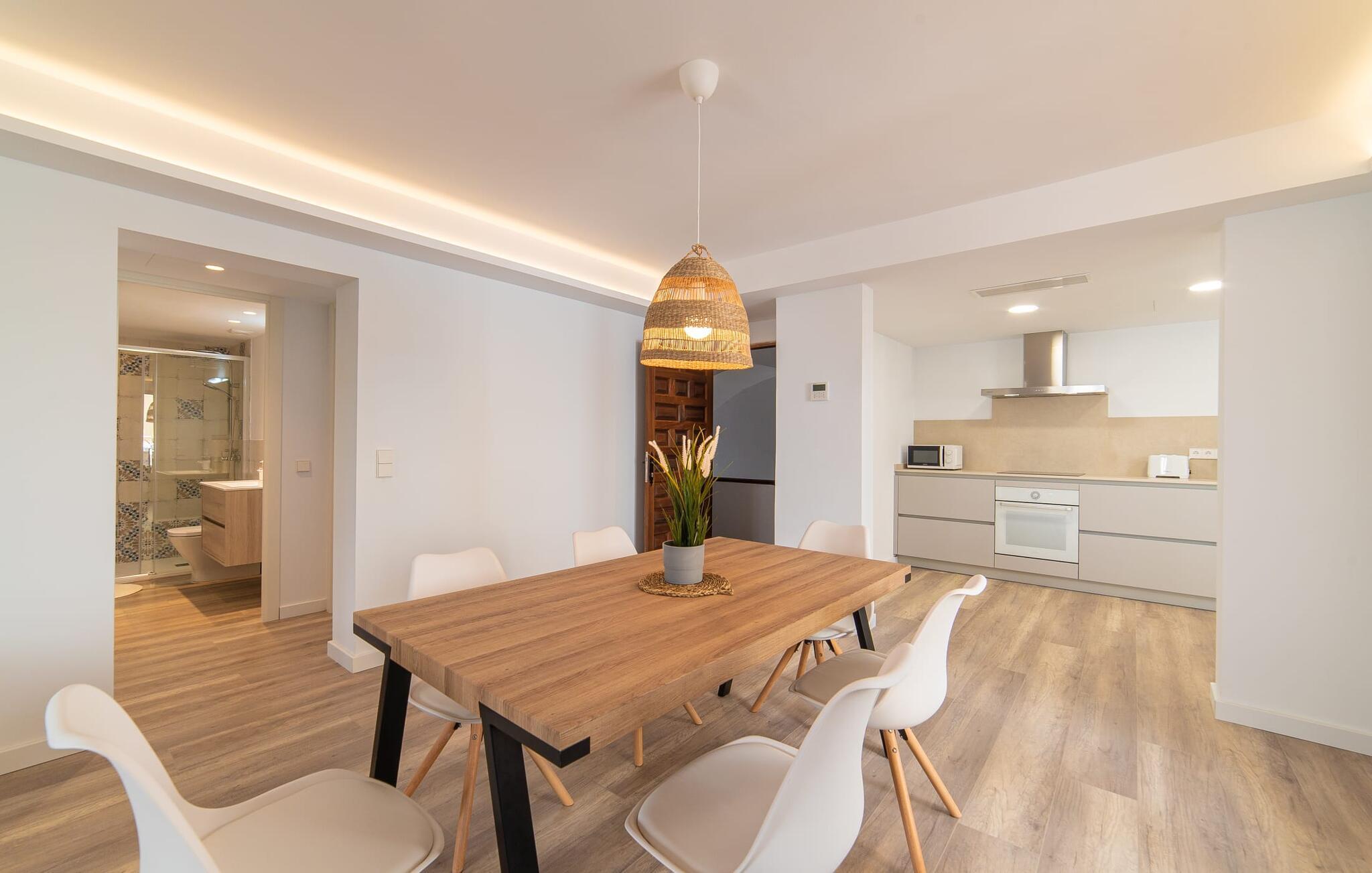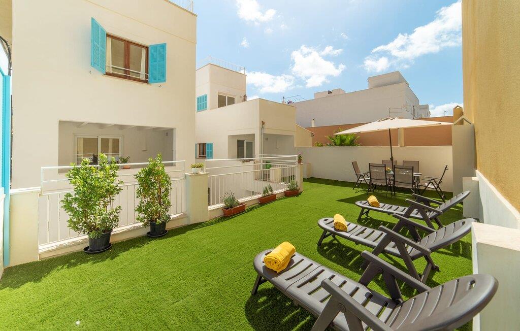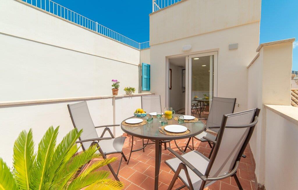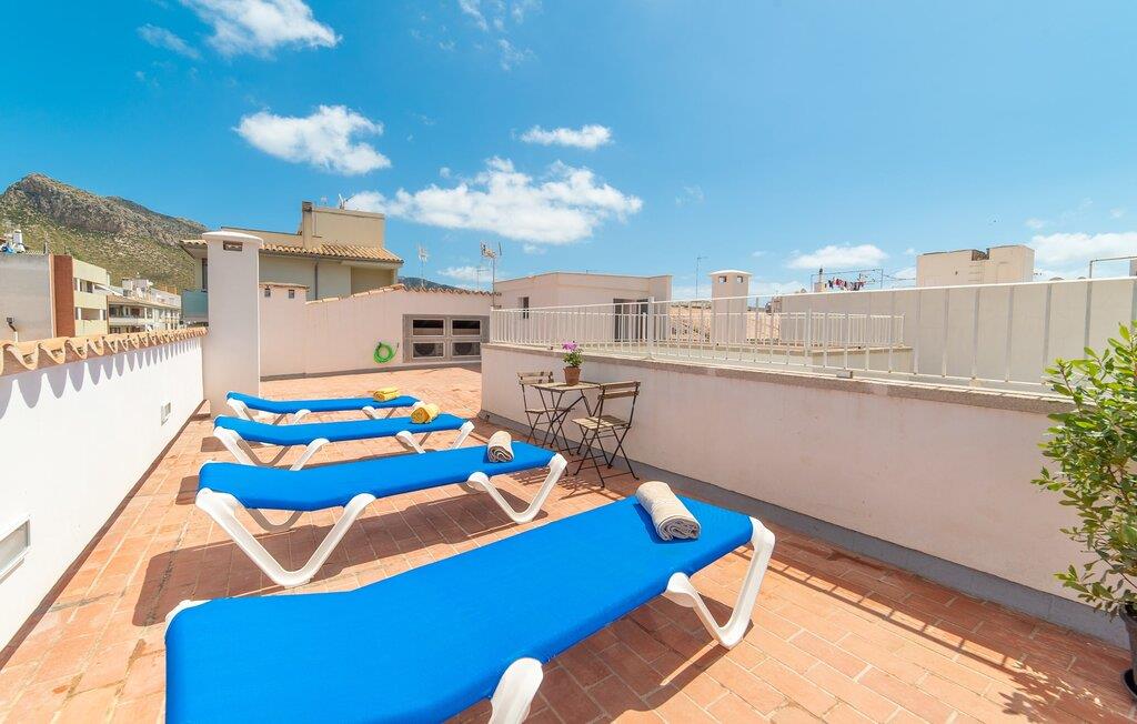 Hvis I rejser med en stor gruppe og leder efter både privatliv og moderne komfort, er rækkehuset "Albercutx Pollentia" et fremragende valg. Denne rummelige ejendom på Mallorca kan rumme op til 22 gæster og har tre selvstændige lejligheder. Hver lejlighed har indbydende terrasser og balkoner på forskellige niveauer, hvilket giver private udendørs rum til afslapning og socialt samvær. Når varmen kalder på en forfriskende svømmetur, er de nærliggende strande kun en kort gåtur væk. Indvendigt er lejlighederne designet med harmoniske farver og trendy møbler, hvilket skaber en indbydende atmosfære. Hver lejlighed har komfortable opholds- og spiseområder, fuldt udstyrede køkkener og to badeværelser, nogle med eget bad. Denne facilitet er ideel for familier, der ønsker at nyde tiden sammen og samtidig bevare personlige retreater. Med en lejlighed til op til seks personer og de to andre til op til otte personer hver tilbyder "Albercutx Pollentia" en unik og alsidig ferieoplevelse, som er sjælden på Mallorca. I er meget tæt på havet i megagodset “Albercutx Pollentia”, som ligger i et rækkehus i centrum og er omgivet af naboer. Når det kommer til tilgængelighed, er dette feriehus på Mallorca simpelthen perfekt: restauranter, barer, butikker og strandene i Platja de Port de Pollença og Albercutx er inden for gåafstand. Den tilstødende gade giver fremragende forbindelser til forskellige destinationer. Søndag morgen er det værd at besøge det ugentlige marked i Pollença (ca. 7 km).
