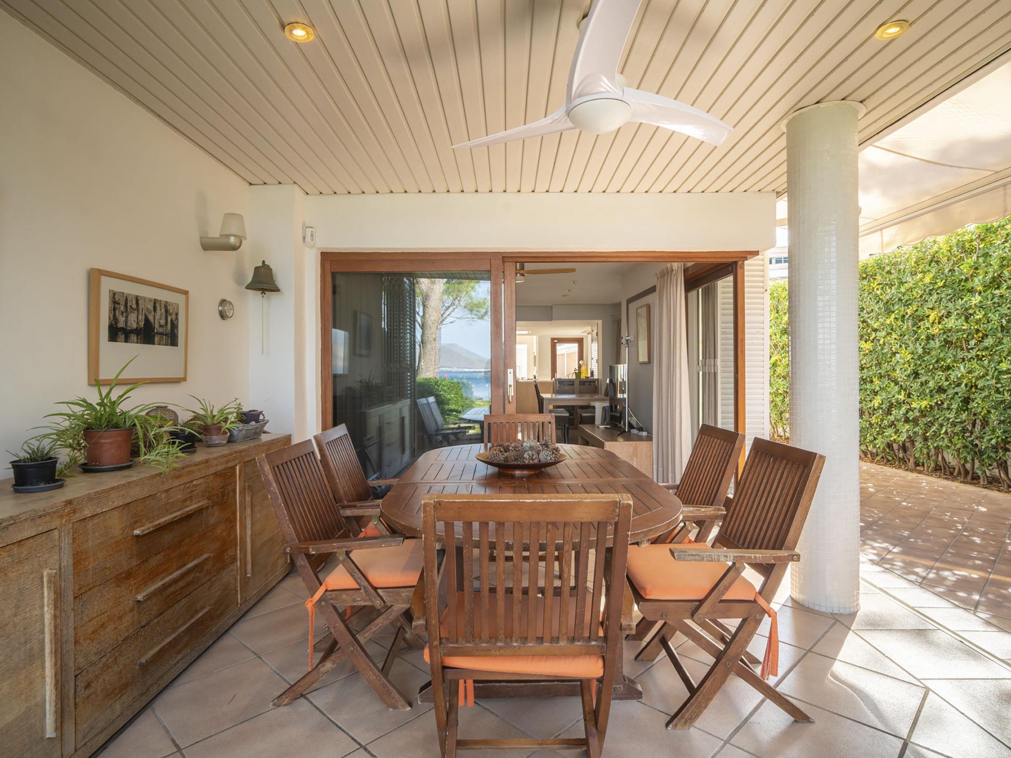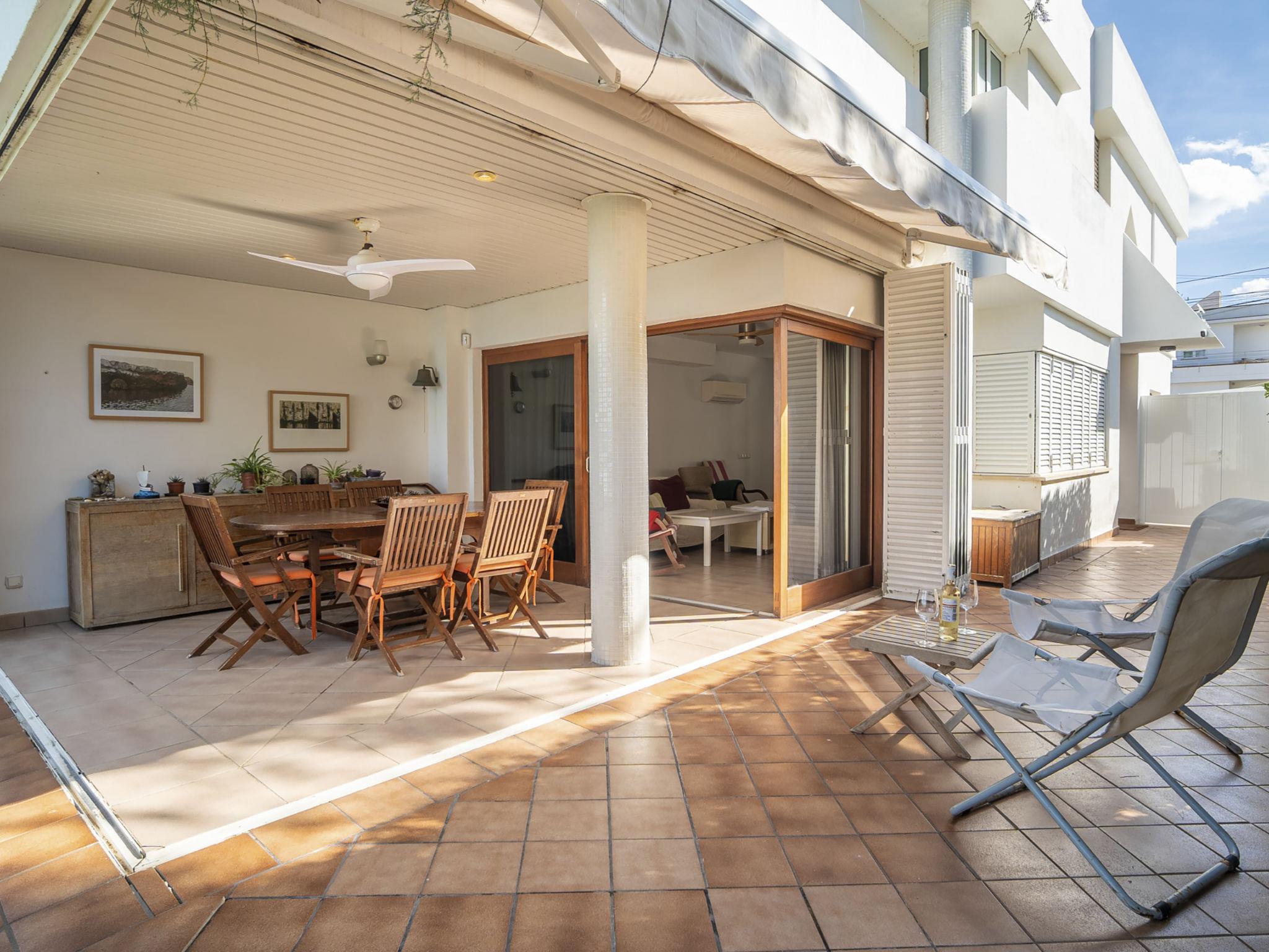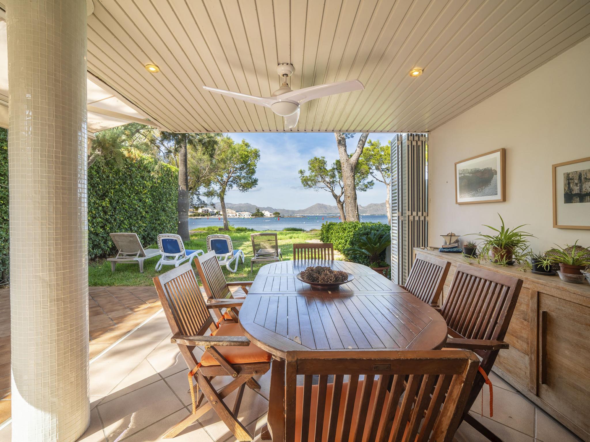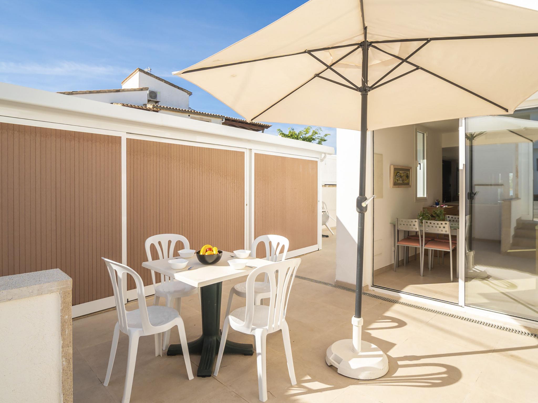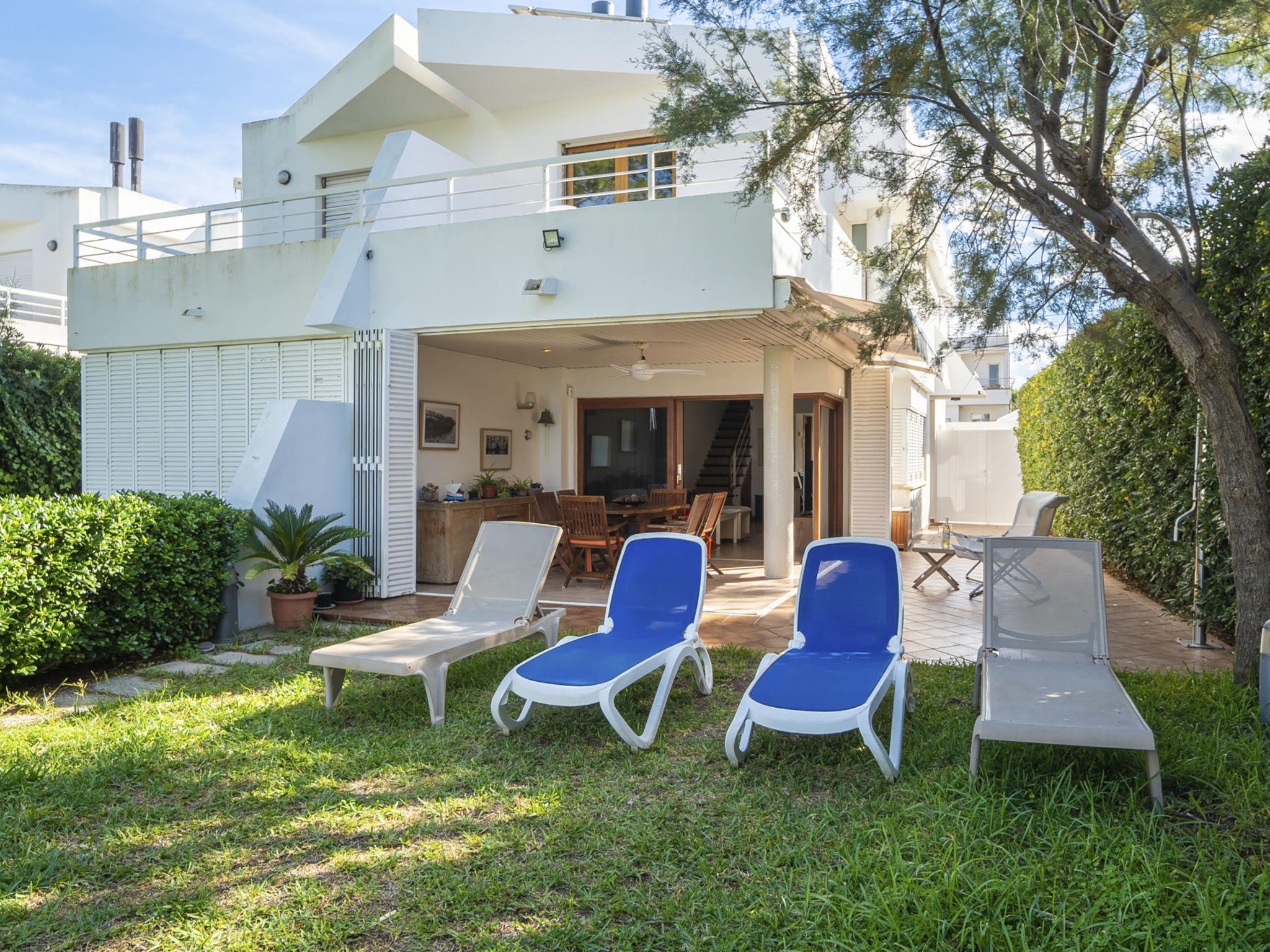 Barcarés 1 km from Alcudia: Very beautiful, cosy semi-detached house "Es clot", 2 storeys, semi-detached. In the district of Es Barcarés, in a sunny position residential area (villas), 2 km from the edge of the forest, 5 m from the sea, 100 m from the beach, direct access to the beach. Private: garden (not fenced) with lawn. Outdoor shower, patio, pergola, garden furniture, barbecue. In the house: WiFi, storage room for bicycles, air conditioning, washing machine. Parking at the house on the premises. Shop 1.5 km, grocery 1.5 km, supermarket 300 m, restaurant 50 m, bar, bakery 1.5 km, bicycle rental 1 km, pub garden 50 m, 15 minute walk to the centre, bus stop 1 km, sandy beach "Es Morer Vermell" 300 m, rocky beach 5 m. Sports harbour 200 m, marina 3 km, golf course (18 hole) 5.3 km, tennis 3 km, riding stable 3.5 km. Please note: suitable for families, suitable for seniors. Object suitable for 8 adults groups of teenagers on request only. Loading and unloading of baggage is possible at the holiday house. Airfield 62 km from the property.