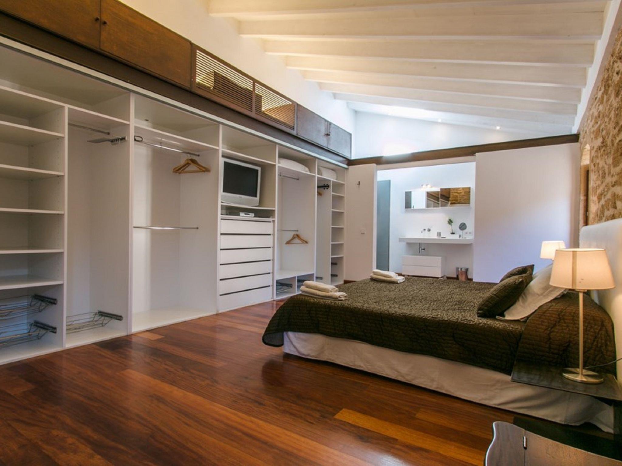 "Sa Muralla", 5-room house 200 m2 on 2 levels. Object suitable for 6 adults. Comfortable and beautiful furnishings: large entrance hall with panoramic window with air conditioning and forced-air heating. Exit to the patio, to the swimming pool. Large lounge with international TV channels, flat screen, radio, CD-player, hi-fi system, DVD, air conditioning and forced-air heating. Exit to the patio, to the swimming pool. Open large dining room with open-hearth fireplace, TV, international TV channels, air conditioning and forced-air heating. Exit to the patio, to the swimming pool. Large kitchen (4 hot plates, oven, dishwasher, microwave, freezer, electric coffee machine) with air conditioning and forced-air heating. Exit to the patio, to the swimming pool. Bath/WC. Upper floor: 1 large double bedroom with panoramic window with 1 double bed (200 cm, length 200 cm), shower/WC, air conditioning and forced-air heating. 1 large double bedroom with 1 double bed (180 cm, length 200 cm), 1 sleeping facility (150 cm, length 190 cm), bath/shower/WC, air conditioning and forced-air heating. 1 large double bedroom with 2 beds (90 cm, length 200 cm), air conditioning and forced-air heating. Natural stone floors. Patio. Terrace furniture, barbecue, deck chairs (4), sitting area. View of the swimming pool, the garden and the resort. Facilities: washing machine, dryer, iron, children's high chair, baby cot for up to 2 year olds, hair dryer. Internet (WiFi, free). Suitable for families. ET2494 // Reg. Nr.: ESFCTU00000704300008290700000000000000000000ETV/24947